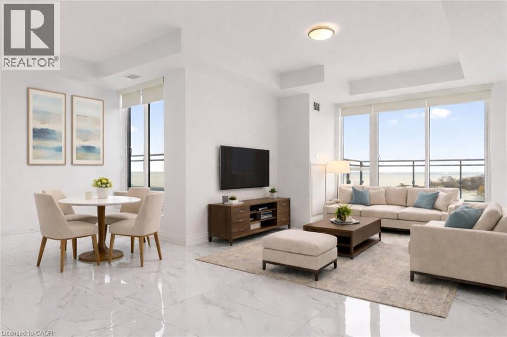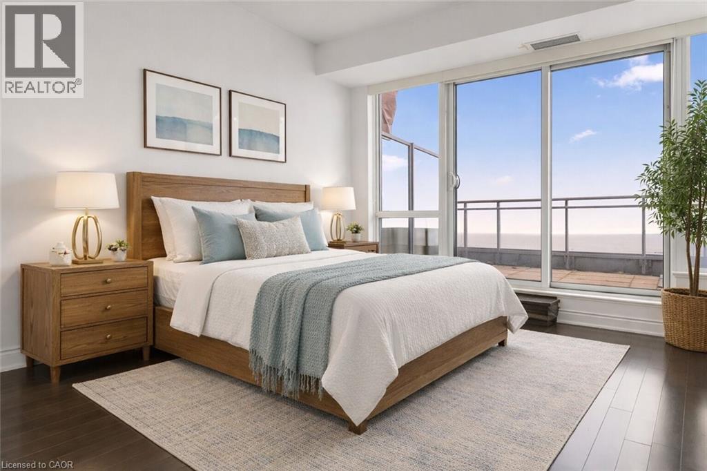 Elevate your lifestyle to unprecedented heights in this exquisite penthouse sanctuary, where sophisticated urban living meets breathtaking natural splendor. This remarkable three-bedroom, three-and-a-half-bathroom residence spans an impressive 2,708 square feet of meticulously crafted living space, designed for the most discerning homeowner. The southwest-facing orientation bathes the interior in golden light while showcasing panoramic vistas of the majestic escarpment and the endless expanse of Lake Ontario. The open-concept kitchen, adorned with lustrous new porcelain tile, features a striking island that serves as the culinary centerpiece, seamlessly connecting to the breakfast nook and intimate sitting area—a perfect orchestration of form and function. The thoughtfully designed split floor plan ensures privacy, with the primary bedroom suite positioned away from guest accommodations. Guest suites boast their own private ensuite and generous walk-in closets, creating a personal retreat. Throughout the residence, rich hardwood flooring adds warmth and timeless elegance. Step onto the spectacular wrap-around balcony accessible through multiple walkouts, complete with a BBQ gas line for personal grilling. The building exemplifies luxury living with resort-style amenities including a sparkling pool, tranquil sitting areas, fully equipped fitness center, rejuvenating whirlpool, sophisticated social lounge, and convenient guest suite. This penthouse represents the pinnacle of Oakville living, where every sunrise and sunset promises new possibilities. (id:64974)
