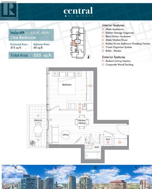 Central by Concord, located in the heart of the Entertainment District and Toronto's Tech Hub. This 1 Bed suite with an open-concept layout. Featuring built-in Miele appliances, Calacatta kitchen backsplash and bathroom, built-in closet organizers and a heated decked balcony for year-round enjoyment. Steps to TTC, Osgoode Station, Financial District, U of T, TMU, restaurants, theatres, and major attractions. (id:64974)