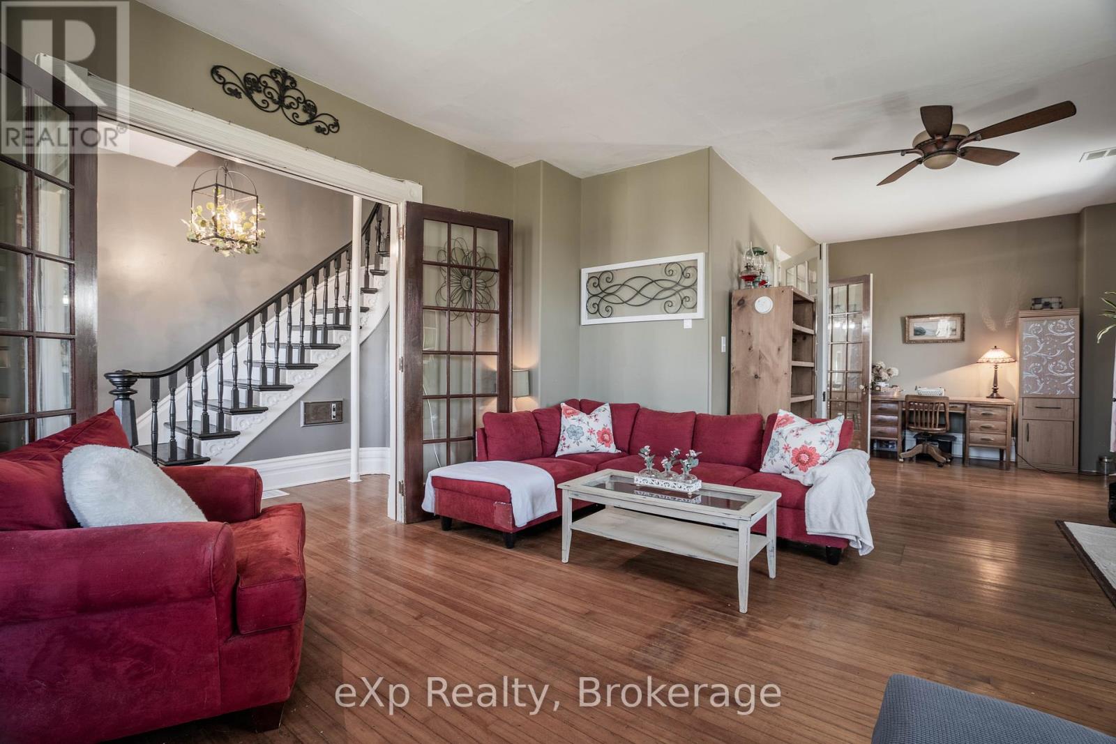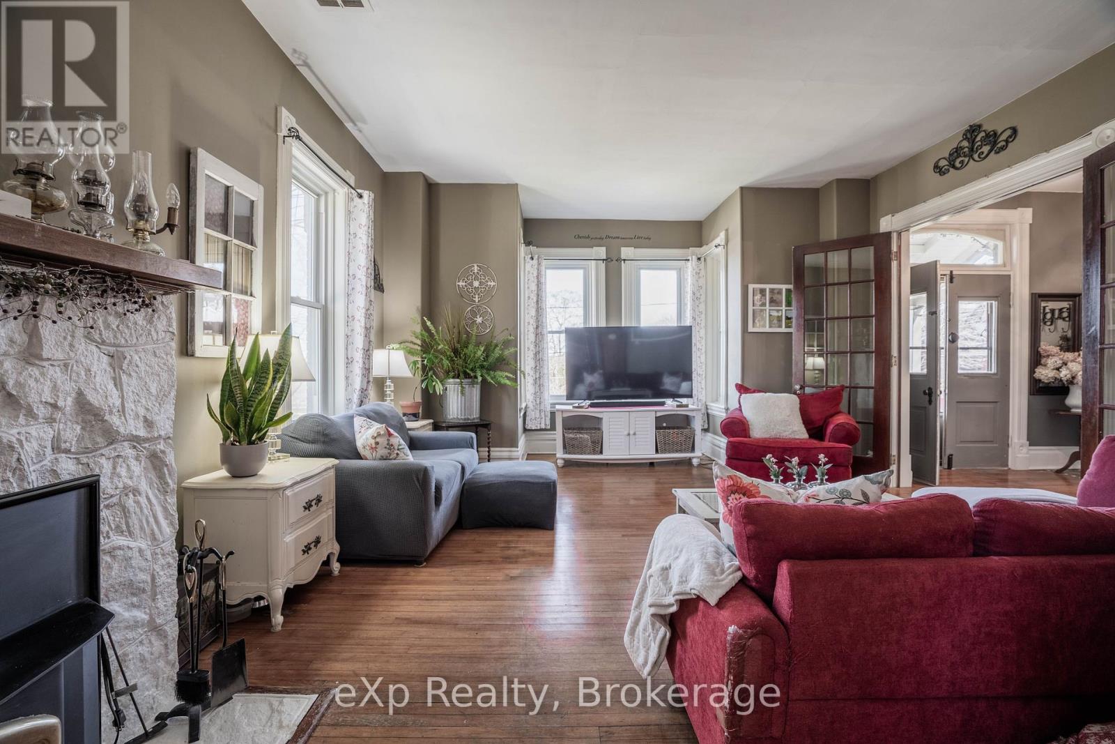 This beautiful solid brick century home offers timeless character and modern comfort, nestled in the vibrant core of Wiarton. Featuring 4 spacious bedrooms and 2 bathrooms, this home boasts high ceilings, large windows, and generously sized rooms filled with natural light.The inviting kitchen and dining area are perfect for family meals or entertaining guests. Step outside to enjoy meticulously landscaped grounds, a garden pond, and perennial flower beds; an ideal setting for unwinding and soaking in the refreshing Georgian Bay breeze. Conveniently located within walking distance to shops, restaurants, parks, and all the amenities Wiarton has to offer. (id:64974)