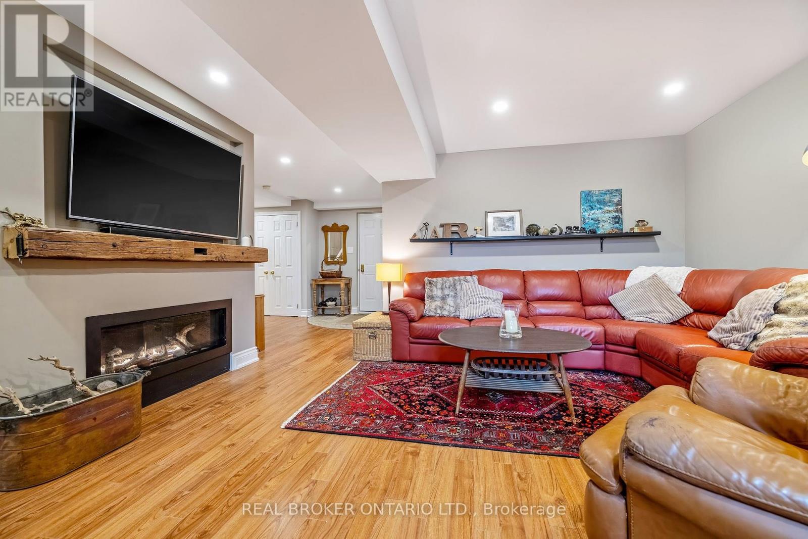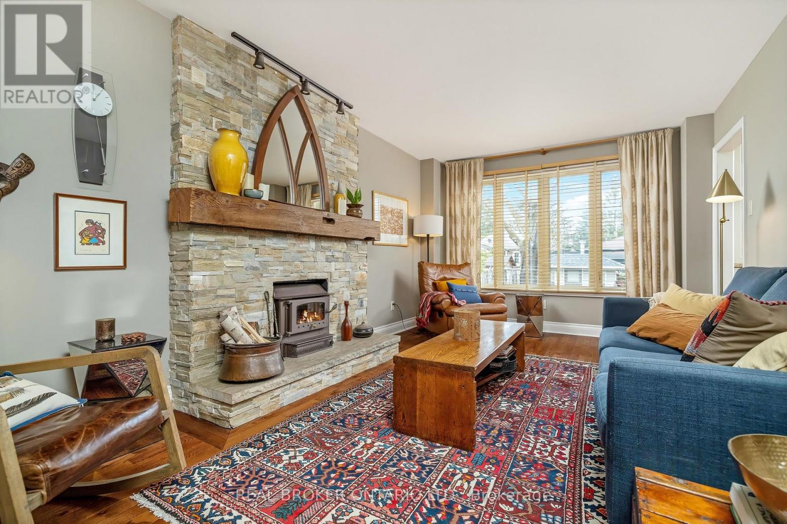 This gorgeous 3+2 bedroom, 3.5 bathroom home is in one of Milton's most sought-after neighbourhoods and offers over 3,400 sq. ft. of total finished living space! The main floor offers a grand foyer, large living/dining room, a cozy family room with a wood-burning fireplace and built-in cabinetry, direct garage access from the mud room plus a 2-pc bath. The custom kitchen is stunning! It has stainless steel appliances, granite countertops, under-cabinet lighting, a gas range, custom backsplash, pot lights and pot drawers. The breakfast area offers a coffee station and direct access to the backyard! Upstairs has a large primary suite with a custom 3-pc ensuite with glass shower and a custom walk-in closet. There are 2 more large bedrooms, an office nook plus a beautifully renovated main 4-pc bathroom. The fully finished basement offers a separate entrance directly to the garage, a large rec room with pot lights and a gas fireplace, 2 additional bedrooms with double closets and a large 4-pc bathroom. The backyard is a mature oasis with an inground pool, custom gazebo and large deck for entertaining! Steps from downtown and everything Old Milton has to offer. Walking distance to the GO, transit, shops, schools & parks! Furnace/AC 2021, Roof 2016, Water Softener/GDO 2025, Pool Pump ~2022 (id:64974)