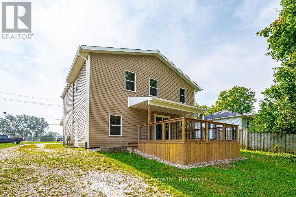 Beautifully updated 4 bedroom 2 bath two storey on one of the biggest properties in the entire town. The massive country style kitchen featuring deep toned cabinets and enough counter space for everyone to help out at the Thanksgiving Dinner. This space is only beat by the size of the open concept dining room that would easily seat 20 for every occasion. Cozy den with living room welcomes the whole family to movie night and yet not too big to miss cuddle time. The three big bedrooms all feature great space and plenty of closets but the primary bedroom not only fits all the furniture but still leaves room for a reading nook all to yourself not far from the walk-in closet and private entrance to the space like main bathroom. The party time covered deck extends your summer way into fall and still do your barbecuing all the way through winter with ease. Two plus car garage is big enough to fit the boat on the trailer and still have room for the winter project to take shape. We even have room for the kids to stretch their legs on the incredible 66X279 lots and another three acres across the street to the park complete with splash pads, walking track and ball diamonds. (id:64974)