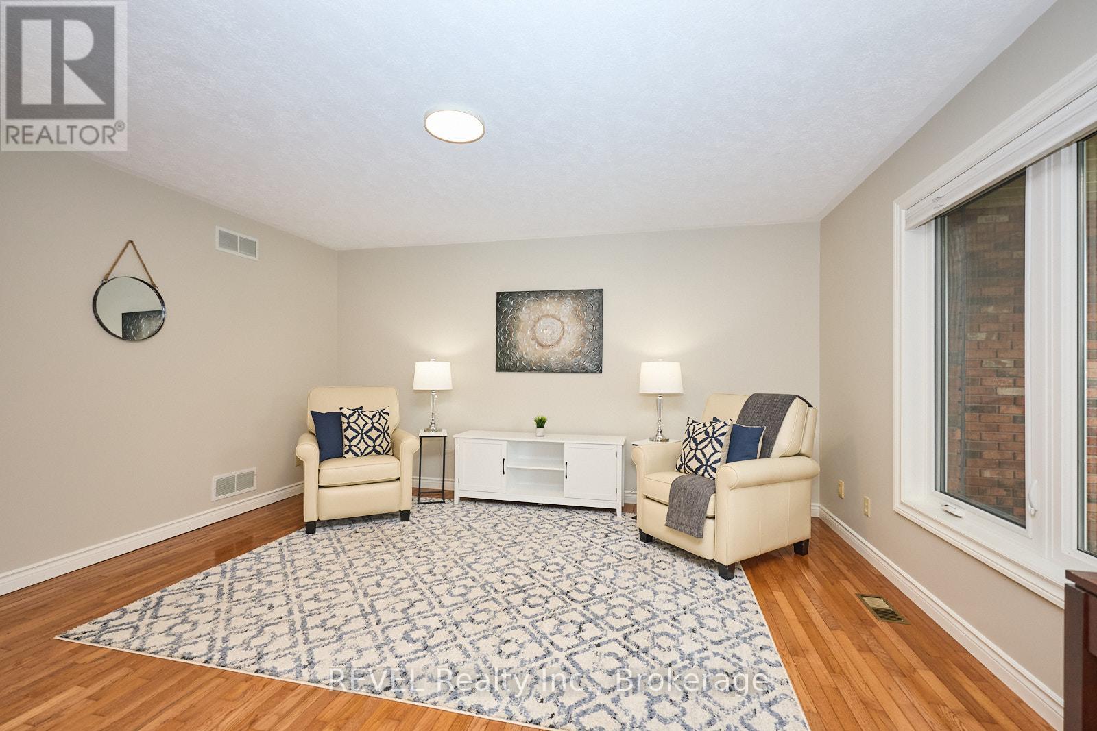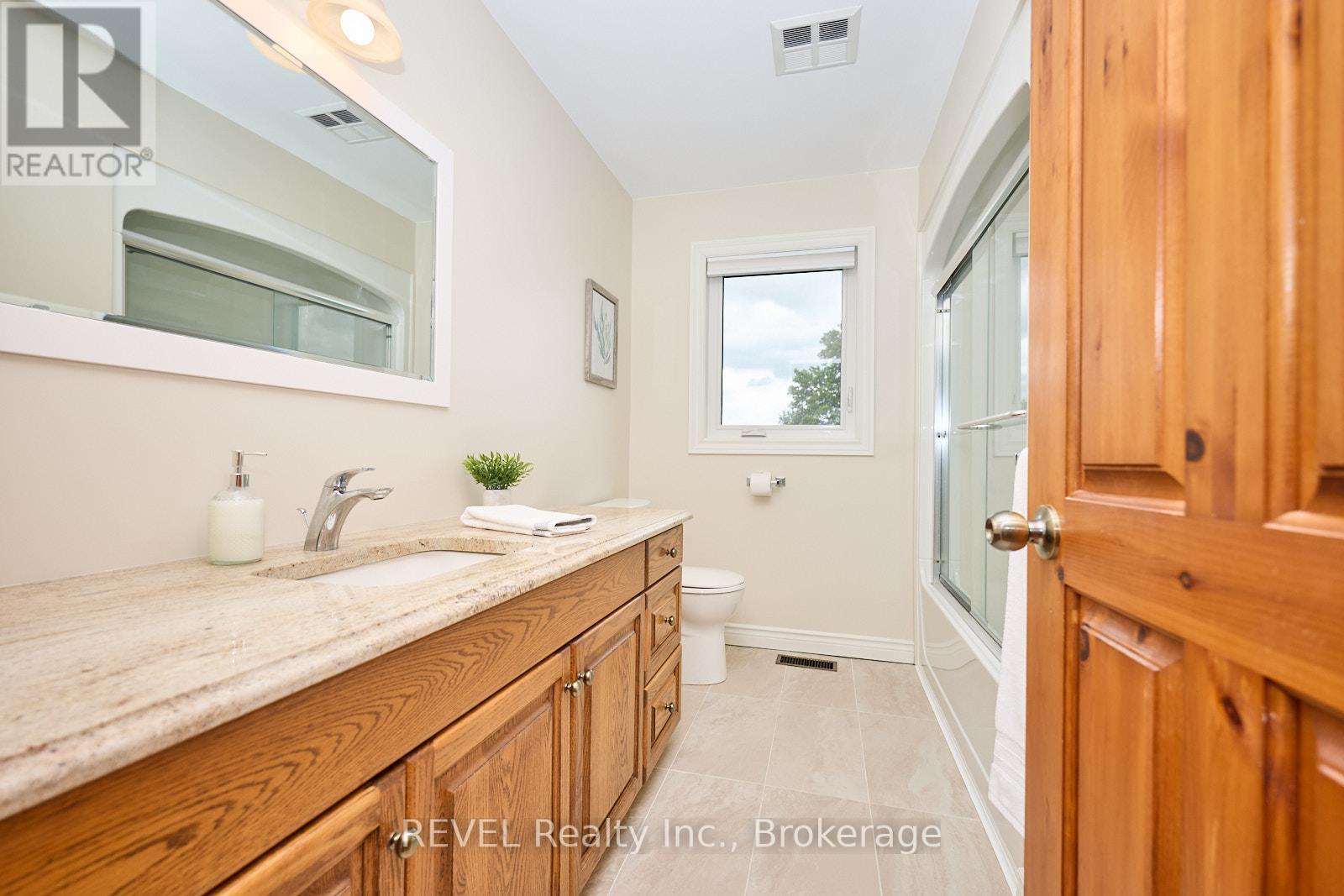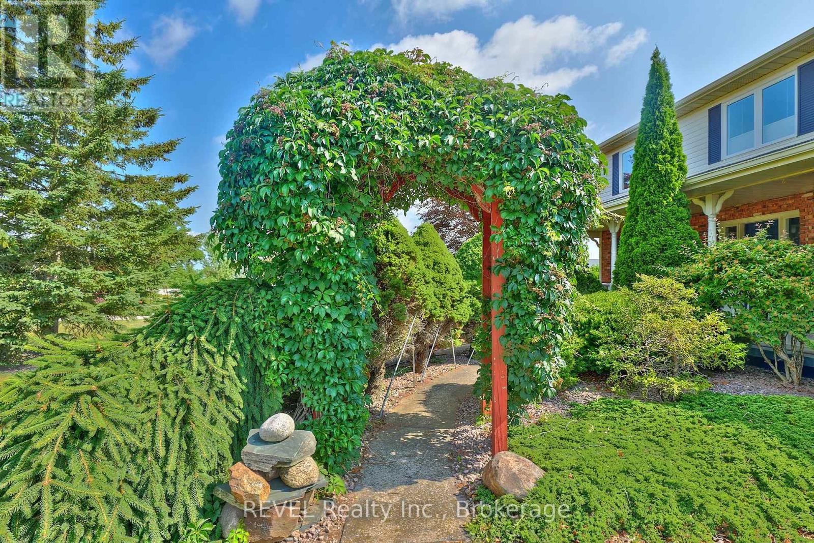 Set on over two and a half acres in gorgeous Cooks Mills, 354 Doan's Ridge Road offers a beautiful balance - the privacy of living on the countryside, with the convenience of being minutes to the city. Positioned in the centre of the Region, with municipal water, natural gas and high-speed internet, living here comes with nothing but incredible perks! Surrounded by mature trees, lush landscaping, a private pond and thoughtfully designed outdoor spaces, this property offers the private retreat you have been yearning for. From the moment you arrive, take note of the gorgeous facade and how the property has been carefully thought out, with the home set back from the road to ensure ample privacy. With natural beauty at every turn, the 184 by 634-foot lot is simply stunning and will undoubtably provide a splendid backdrop for many cherished family memories to be created. As you approach the home, the expansive front porch greets and welcomes you inside to explore further. With soaring ceilings that span to the second level, the front foyer is exceptional. To the right, you will find a sitting area that could serve as a main floor family room, while to the left is the formal dining room. Open yet cozy, with large windows throughout, the layout of this home is truly wonderful. Beyond the dining room, the eat-in kitchen is both spacious and functional, offering plenty of storage and direct access to the sunroom - an ideal spot to start your mornings or unwind in the evening. Down the hall is the powder room, laundry room and the living room that is incredibly breathtaking. Featuring a gas fireplace and vaulted ceiling, this area is very special. On the second level, you'll find three bedrooms, including a primary suite with an ensuite and walk-in closet, along with a 4-piece bath. Downstairs offers a recreation room, a walk-down from the garage, two large cold rooms and plenty of storage space. Recent, major updates include: central air (2022) and all windows (2020). (id:64974)