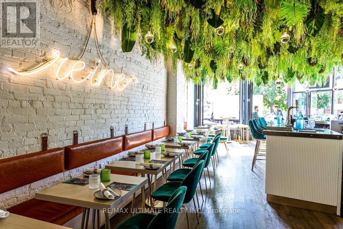 Come to the Koolest Korner on King St E and find your Destiny in The Distillery District!! This compelling space was designed as a lunch spot during the day, and atnight the lights go down, and the cocktails start flowing. The evening snack and cocktail bar attracts guests looking for fun snacks, eccentric cocktails, while listening to curated playlists in the coolest vibe on King East, just steps from the historic Toronto Distillery District. Ready for your new concept to define this neighbourhood! Interior LLBO for 30 + CafeTO (approx 25 seats) Full basement with catering kitchen. (id:64974)