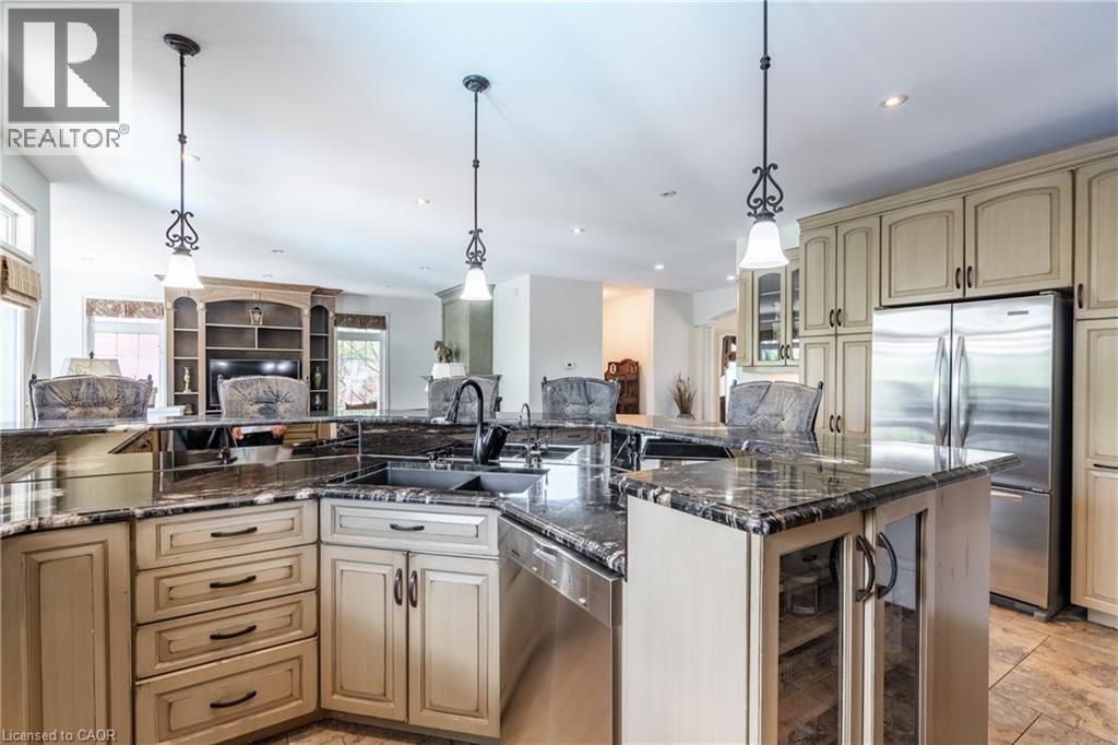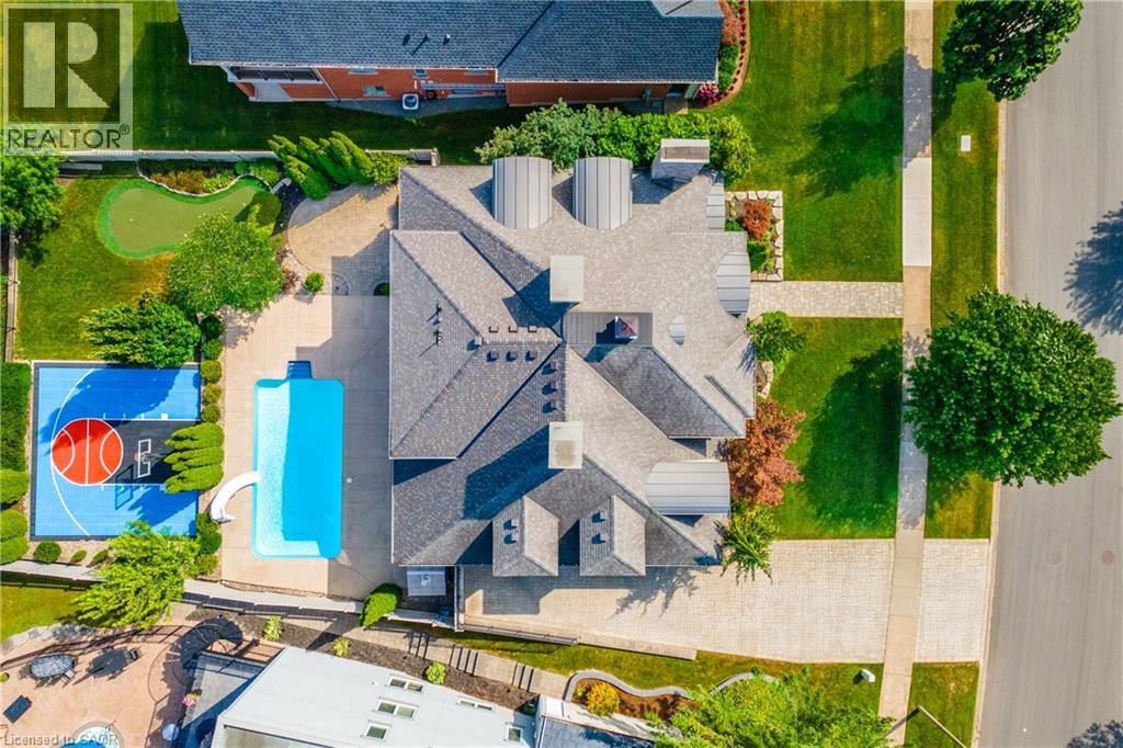 Welcome to 3542 Matthews Drive — a stunning custom-built estate in one of Niagara Falls’ most prestigious enclaves. This meticulously designed home offers the perfect balance of refined elegance, comfort, and unforgettable outdoor living, all backing onto a serene ravine setting. From the moment you arrive, you’ll be captivated by the grandeur and thoughtful layout of this residence. The main floor features a private home office with custom built-ins, ideal for professionals or those working from home. A sunken living room with a gas fireplace and expansive windows fills the space with warmth and natural light, while the open-concept kitchen is a chef’s dream — complete with built-in appliances, an abundance of counter space, stylish storage solutions, and a peninsula breakfast bar perfect for entertaining. Upstairs, you’ll find four generously sized bedrooms, each with massive closets, including a primary retreat with a spa-inspired ensuite that invites you to relax and unwind in luxury. The fully finished walk-out basement adds even more living space with a fifth bedroom, wet bar, dedicated guest area, ample storage, and direct access to the backyard. Step outside to your own private resort-style paradise, featuring a large in-ground pool with slide, hot tub, putting green, and a half-court basketball area — all set against a beautifully landscaped backdrop that backs onto a peaceful ravine. Additional highlights include a finished 4-car garage, classic finishes throughout, and a layout that blends sophistication with everyday functionality. This is more than a home — it’s a lifestyle. Don’t miss your chance to own one of Niagara Falls’ finest properties. (id:64974)