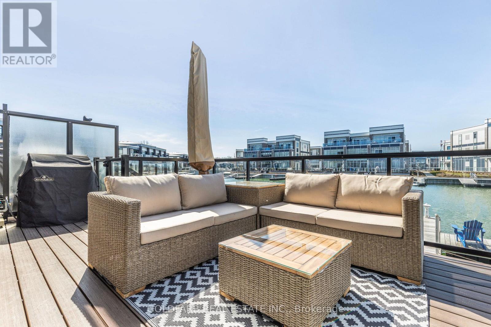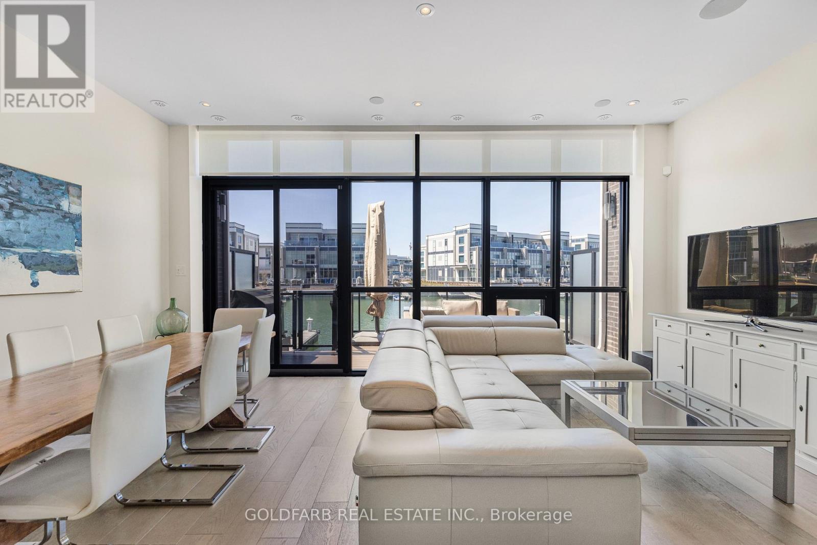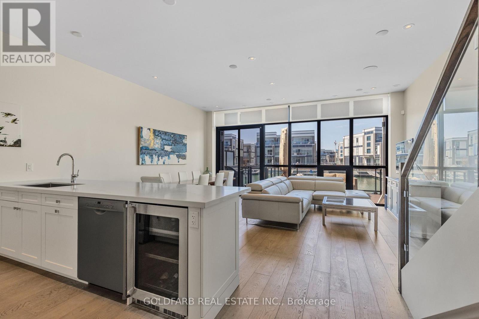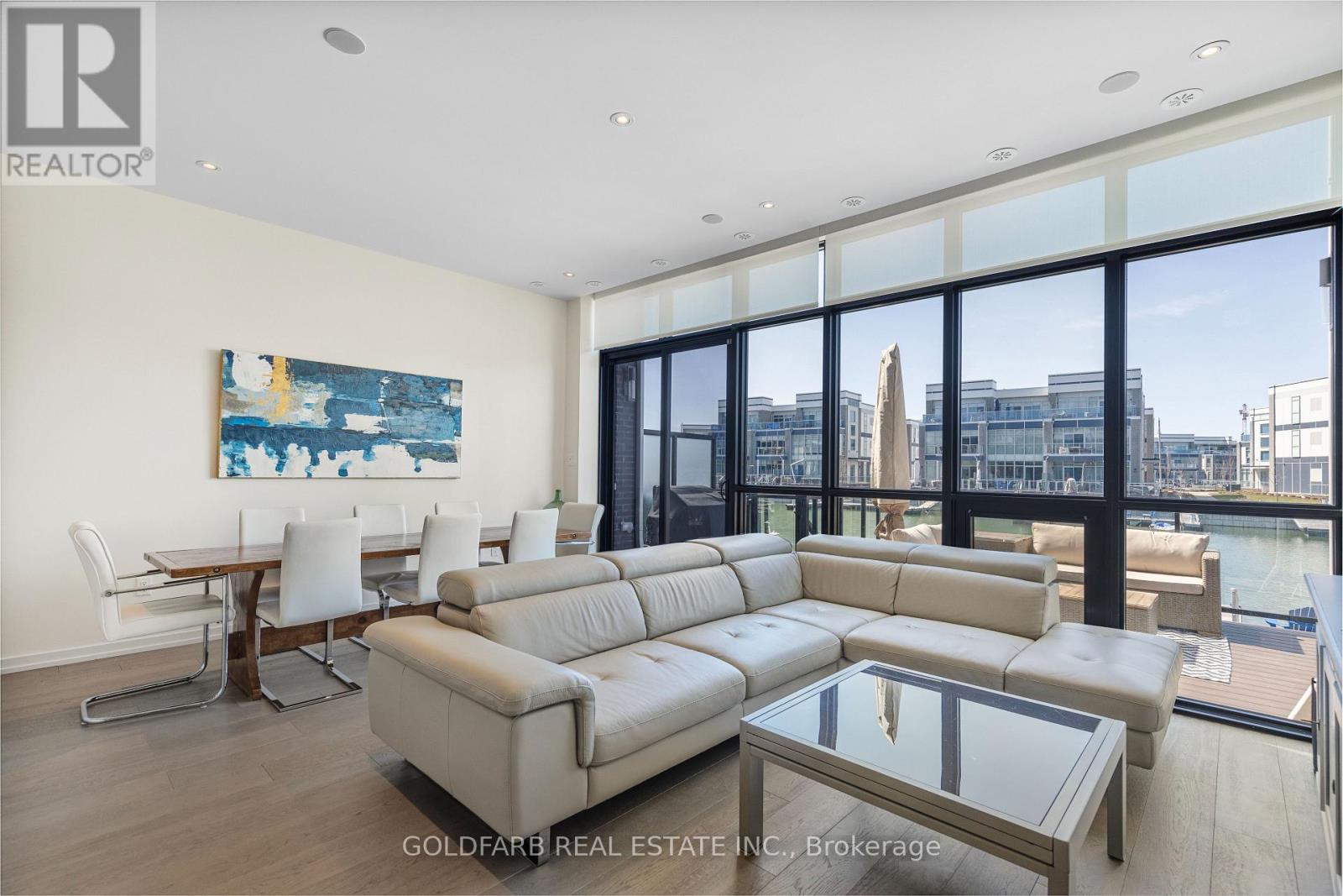 Experience one of the most peaceful locations in the marina community-offering a rare open water channel view toward the Harbour Master, with nearly immediate access to Lake Simcoe, all within a quiet, destination-only setting. This upgraded Marina Town offers nearly 1,600 sq ft of waterfront living, designed to capture natural light and uninterrupted views. The northwest exposure delivers long afternoons of sun and sunset views over Friday Harbour - a rare combination. The main living level is anchored by floor-to-ceiling windows, creating a direct connection to the marina. The open-concept kitchen, dining, and living areas are both functional and refined, featuring high-end appliances, an integrated bar fridge, double-stacked cabinetry, upgraded hardware, and clean, modern finishes. Rare interior upgrades set this home apart: engineered hardwood flooring throughout and extremely rare 8-foot door frames, adding scale well beyond typical Marina Towns. A staircase with upgraded treads leads to the upper level, where the bedrooms and bathrooms reflect the same level of finish. Step outside to a spacious, private waterfront deck-ready to be customized as your outdoor retreat. For boating enthusiasts, a private, individual dock (not shared) includes a dedicated boat slip with power, water, and lighting pedestal. Additional features include integrated digital blinds with wall mounted controls throughout, a central vacuum, and a fully finished garage with epoxy flooring, paneled walls, and built-in storage. A rare opportunity to own a waterfront property combining location, exposure, and meaningful upgrades - few properties within the marina deliver this combination of position, lifestyle, and quality finishes. Extra: Enjoy full access to all Resort amenities with as many as 8 member access cards. Lake Club Fee $269.03/month. Annual Basic Fee $3,389.36/yr. Entry Fee: 2% of purchase price + HST (one time only). (id:64974)
