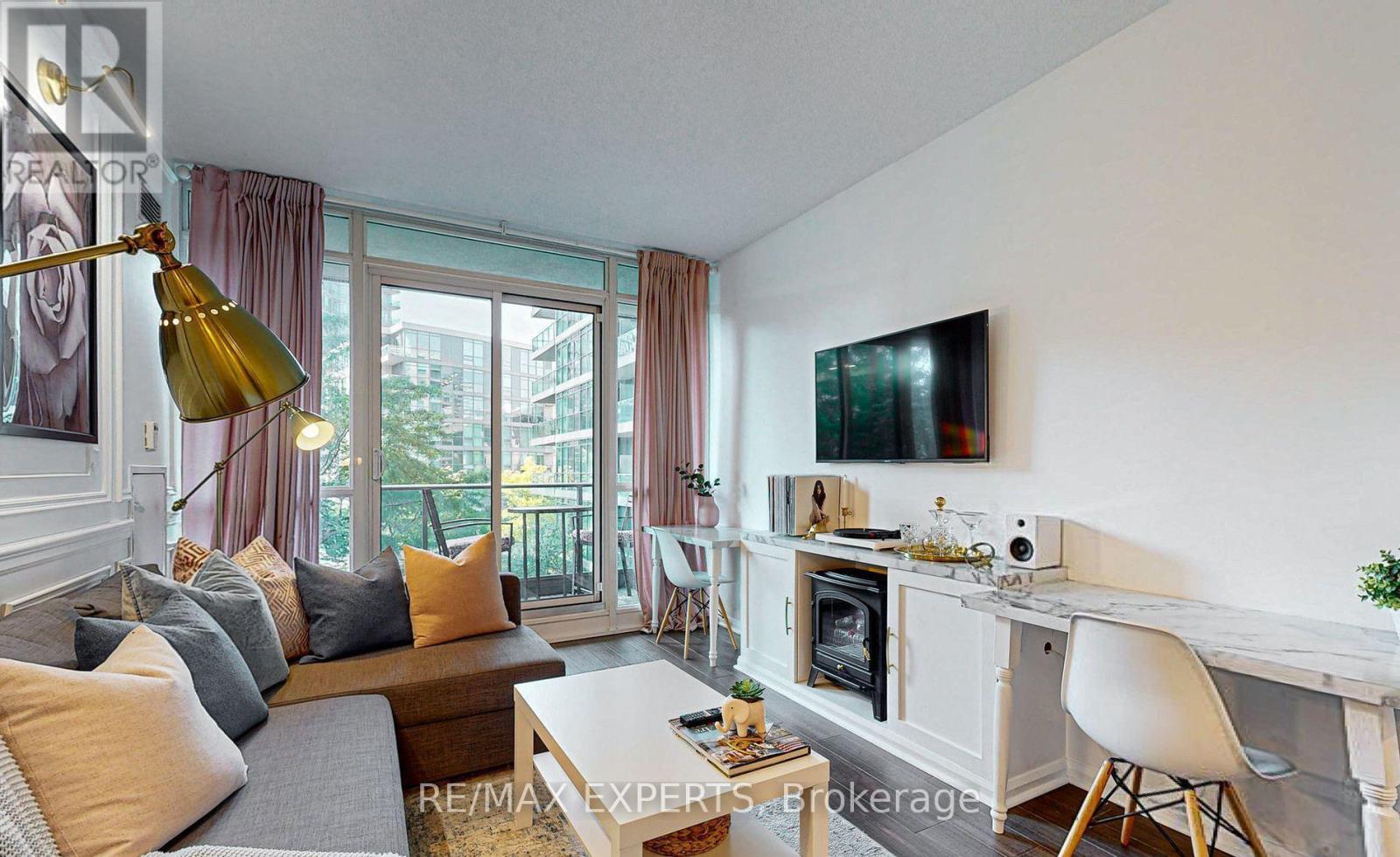 A rare offering in the Fort York waterfront neighbourhood - a beautifully curated residence designed to feel like home, not a typical condo. This open-concept suite features custom wainscoting, thoughtfully updated finishes, soaring ceilings, and a renovated bathroom with modern brass accents. The kitchen is both stylish and functional, ideal for everyday living and entertaining. Step onto the private balcony overlooking tranquil greenspace, creating a calm retreat in the city. Residents enjoy exceptional amenities including a pool, spa, fitness centre, and concierge. Ideally located along Lake Ontario with easy access to waterfront trails, transit, restaurants, coffee shops, fitness centers, shopping, and downtown - all while being surrounded by green space. Offered as a truly turnkey home, with furnishings negotiable, this residence is ideal for those seeking comfort, style and effortless city living. (id:64974)