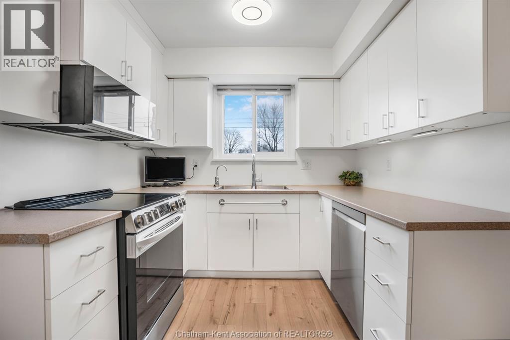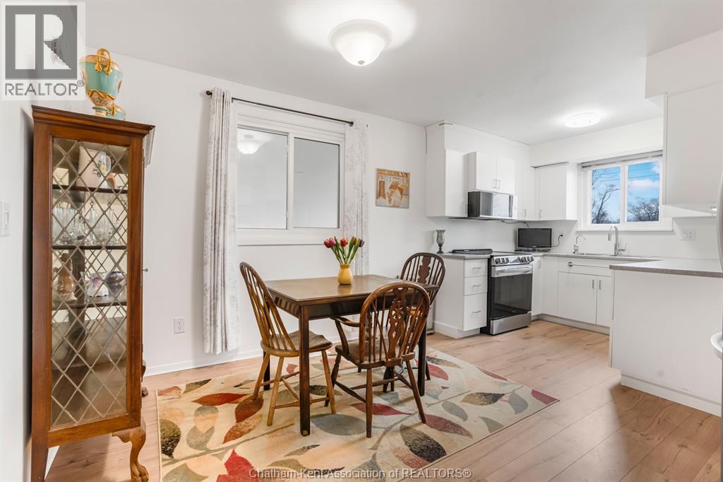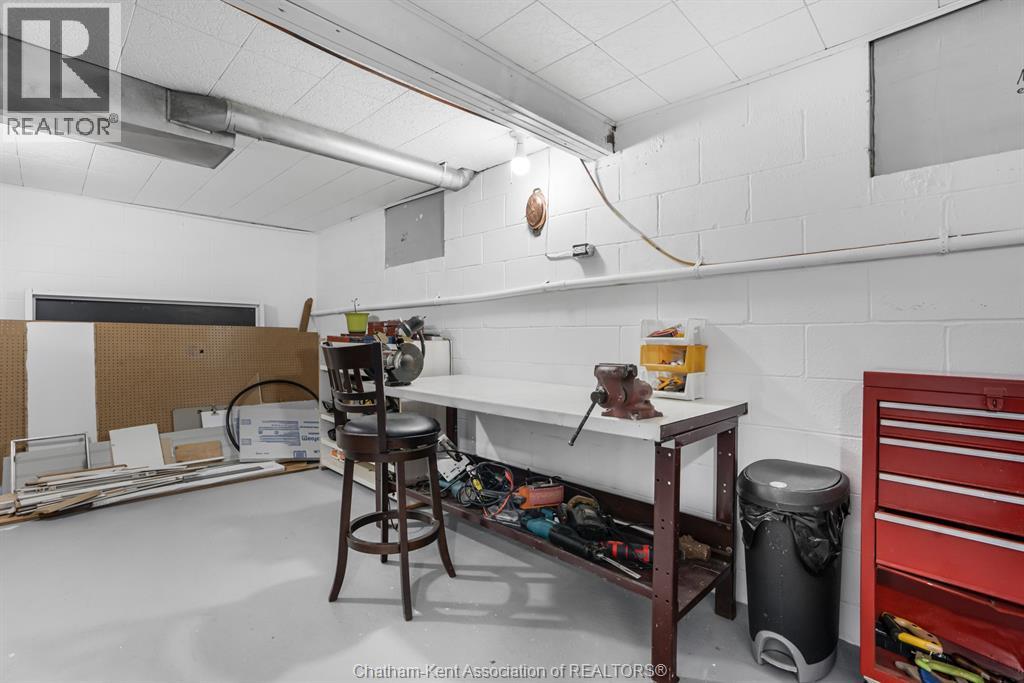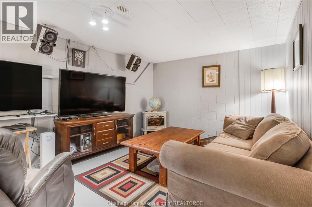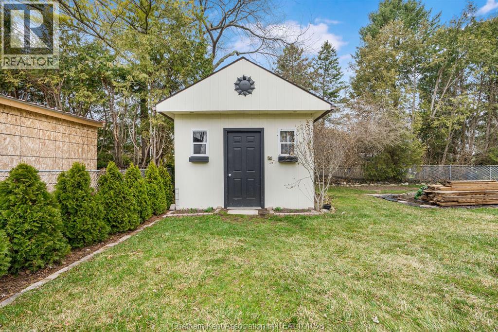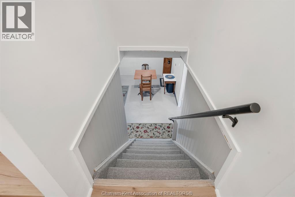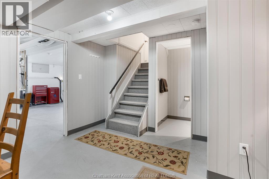 Welcome to this well-maintained bungalow located on the south side of Chatham, only steps from mud-creek path. Offering convenient access to schools, walking paths, golf course, and Highway 401. This home features 3 bedrooms on the main floor with potential for a 4th bedroom in the basement, along with 2 bathrooms. The main level offers a bright white kitchen, natural hardwood flooring, and a spacious living area. The partially finished basement includes a rec room, den, and ample storage space. Recent updates include electrical, central vacuum system, roof (2019), and furnace/AC (2018). Hot water heater is owned. Exterior features include a double-wide driveway with carport, fenced yard, and a 10x20 insulated, wired workshop with concrete floor. Ideal for first-time buyers, families, or those looking to downsize in a convenient location. Updates include: electrical and plumbing, new circuit breakers, and water heater, new bathroom add in basement, ceiling tiles, paneling, paint and trim. New kitchen, new appliances, new green flush luxury toilet, new paint throughout the entire home, replaced outside light fixtures and tap. New exterior doors, corrected the grade, planted 32 cedars for privacy, fenced the yard, added two Japanese maples. Poured new front steps and added a walkway for the gardens. (id:64974)
