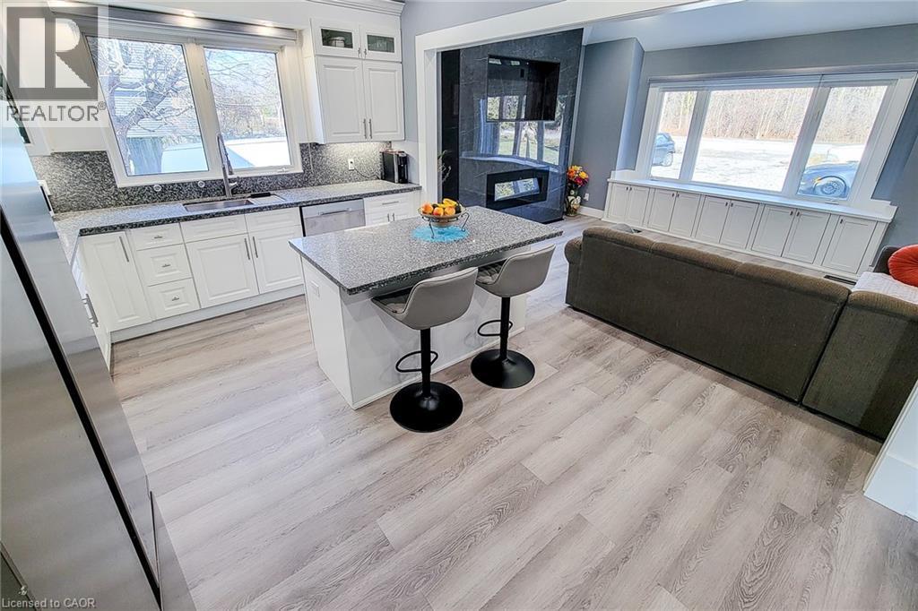 Welcome to 355 Ridge Rd W, Grimsby, a beautifully fully updated bungalow nestled on the scenic Niagara Escarpment, offering rare privacy with mature trees at both the front and back. The main floor features 3 spacious bedrooms, a bright living area, and a modern open-concept kitchen, perfectly designed for everyday living and entertaining. The luxurious bathroom includes convenient in-suite laundry, showcasing high-end finishes and thoughtful design throughout. The fully finished basement has been completed to top-quality standards and offers exceptional versatility with 2 additional bedrooms, a generous living room, dining area, full kitchen, full bathroom, and separate laundry room. With its private entrance, this level is ideal for extended family, guests, or income potential. Extensively upgraded, the home boasts new roof, electrical, plumbing, windows, and doors, providing peace of mind and modern efficiency. Set in a tranquil escarpment setting surrounded by nature, this property delivers the perfect balance of luxury, functionality, and complete privacy. A truly turn-key opportunity in one of Grimsby's most desirable locations. (id:64974)