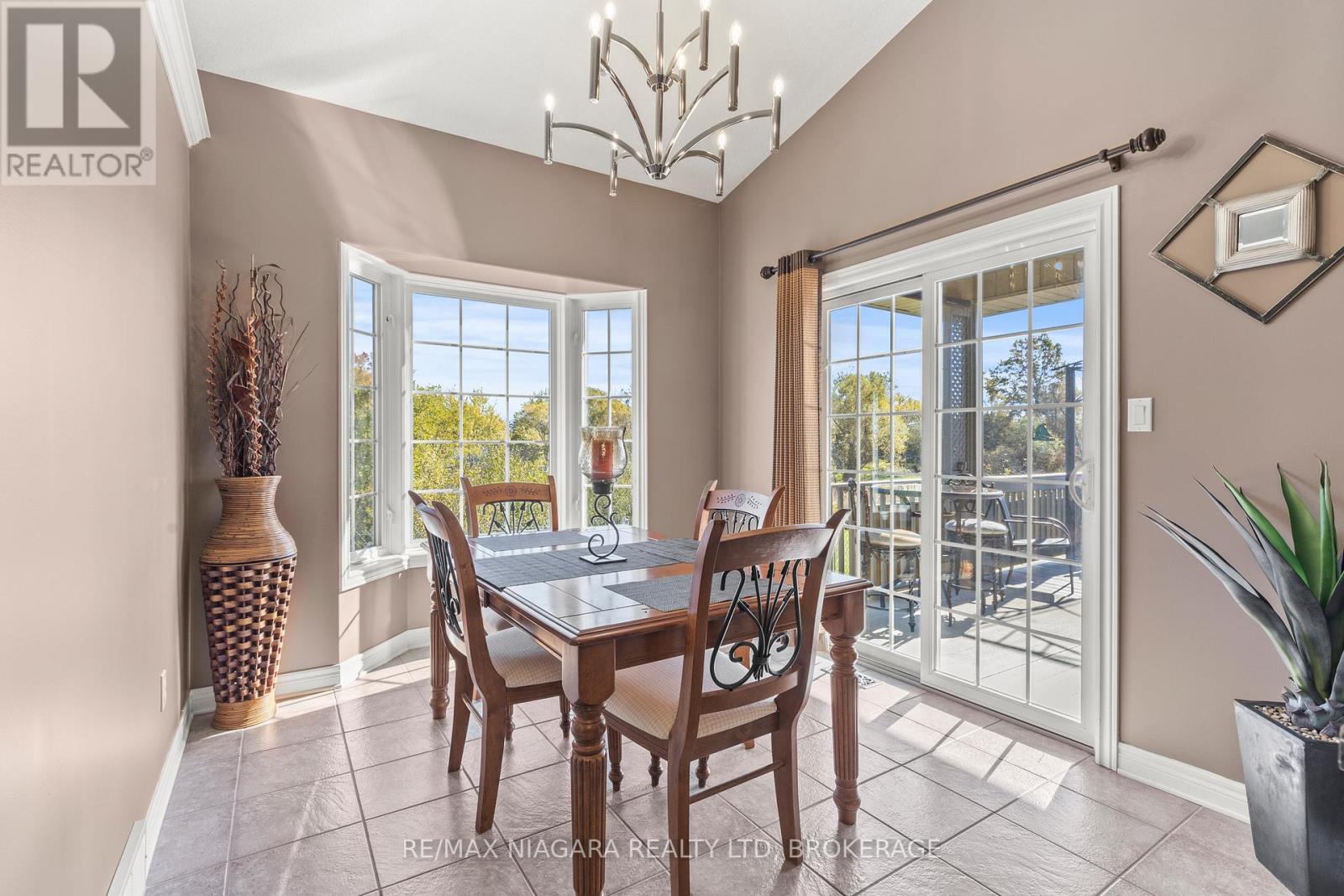 Nestled in a quiet, family-friendly neighbourhood, this beautifully maintained 2-bedroom, 2-bathroom bungalow offers the perfect blend of comfort, style, and convenience. Step inside to an inviting open-concept main floor featuring cathedral ceilings, hardwood flooring and large windows that fill the home with natural light. The spacious living and dining areas flow seamlessly into the modern kitchen, complete with new countertops, all-new light fixtures, and stainless steel appliances, featuring patio doors that lead to a covered deck - ideal for cooking and entertaining. The primary suite is a true retreat, with direct access to your large deck and the peaceful, relaxing covered hot tub. It also includes a walk-in closet, a 4-piece en-suite with a jacuzzi tub and a water closet. Enjoy unparalleled peace of mind with upgrades, including a newer roof (2024) and gas generator, complemented by a heated garage, roughed-in central vacuum, fenced yard, and a tranquil pond setting with no rear neighbours. Located just minutes from the QEW, this move-in-ready home combines the quiet charm of Stevensville with convenient access to shopping, schools, parks, and restaurants. This well-cared-for property is ready for its next chapter. (id:64974)