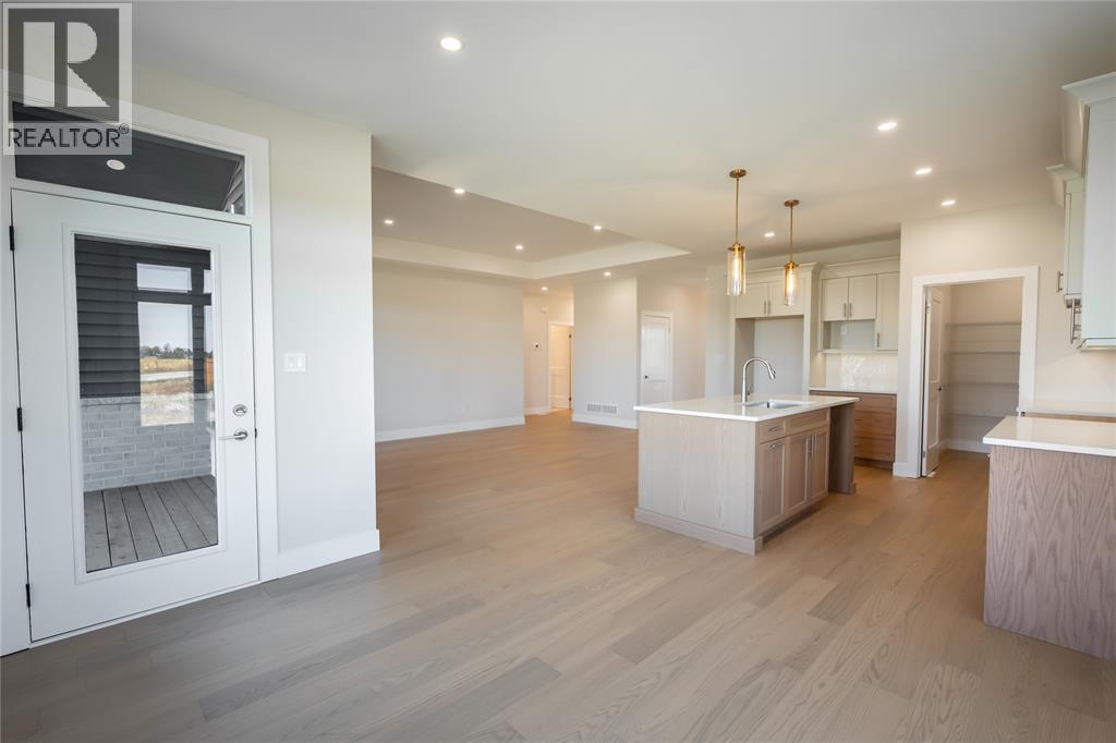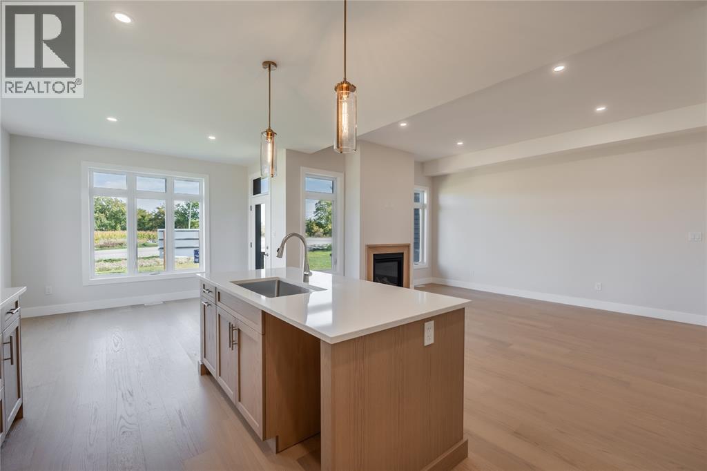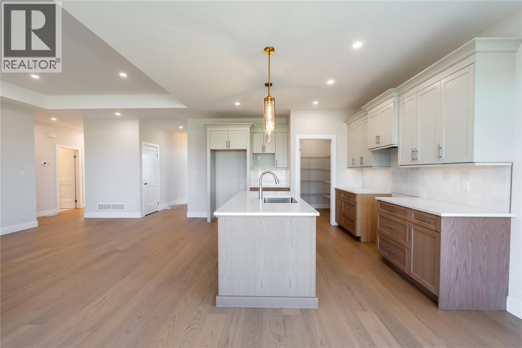 You will love this great new home design just completed and move-in ready from Bakker Design Build. Featuring 3 main floor bedrooms, with upgraded 9’ and 10’ ceilings, engineered hardwood flooring, large walk in kitchen pantry and a natural gas fireplace in the great room. The finished lower level features a huge finished family room, 2 additional bedrooms and a 3rd full bathroom. Price includes HST. (id:64974)
