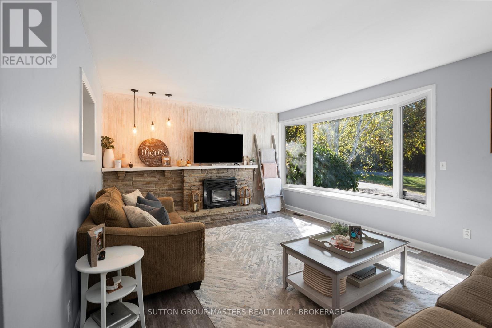 Welcome to 3580 Drake Road, a charming bungalow located on a quiet road just North of Kingston. This charming 3 bedroom home is situated on a 200 foot lot and boasts over 1,600 square feet of finished living space with no rear, front, or side neighbours being the only home on this road making it a perfect blend of country style living while being just a quick few minutes from Kingston's West End! Alongside the 3 bedrooms and 1.5 bathrooms, the home features a spacious living room with a wood burning fireplace and a huge bay window letting lots of natural light in while also showcasing the private outdoor scenery. As you continue through the home you'll find an updated kitchen with newer appliances and a walk-out to the newer deck and patio (2021) accompanied by the huge open yard which is great for the family dog to run around in, outdoor family activities, summer bonfires, or even a pool! Other features of the home include a dining area, another family/living room with an entertainment bar, pellet stove, and another entrance to the outdoors. Alongside all of the home's updates and cozy features, you'll find tons of storage throughout and a detached double car garage which can be used for parking the cars in the winter, more storage, or making it your own personal workshop! Sellers have done vinyl plank flooring throughout (2021), painting (2020), kitchen cabinets and countertops (2020), new appliances (2024), wainscoting in guest bedroom (2021), accent wall in primary bedroom (2024), trim (2020) and new light fixtures over the 5 years they have lived here! Ready to call this place home? Come and check this beautiful spot out today! (id:64974)