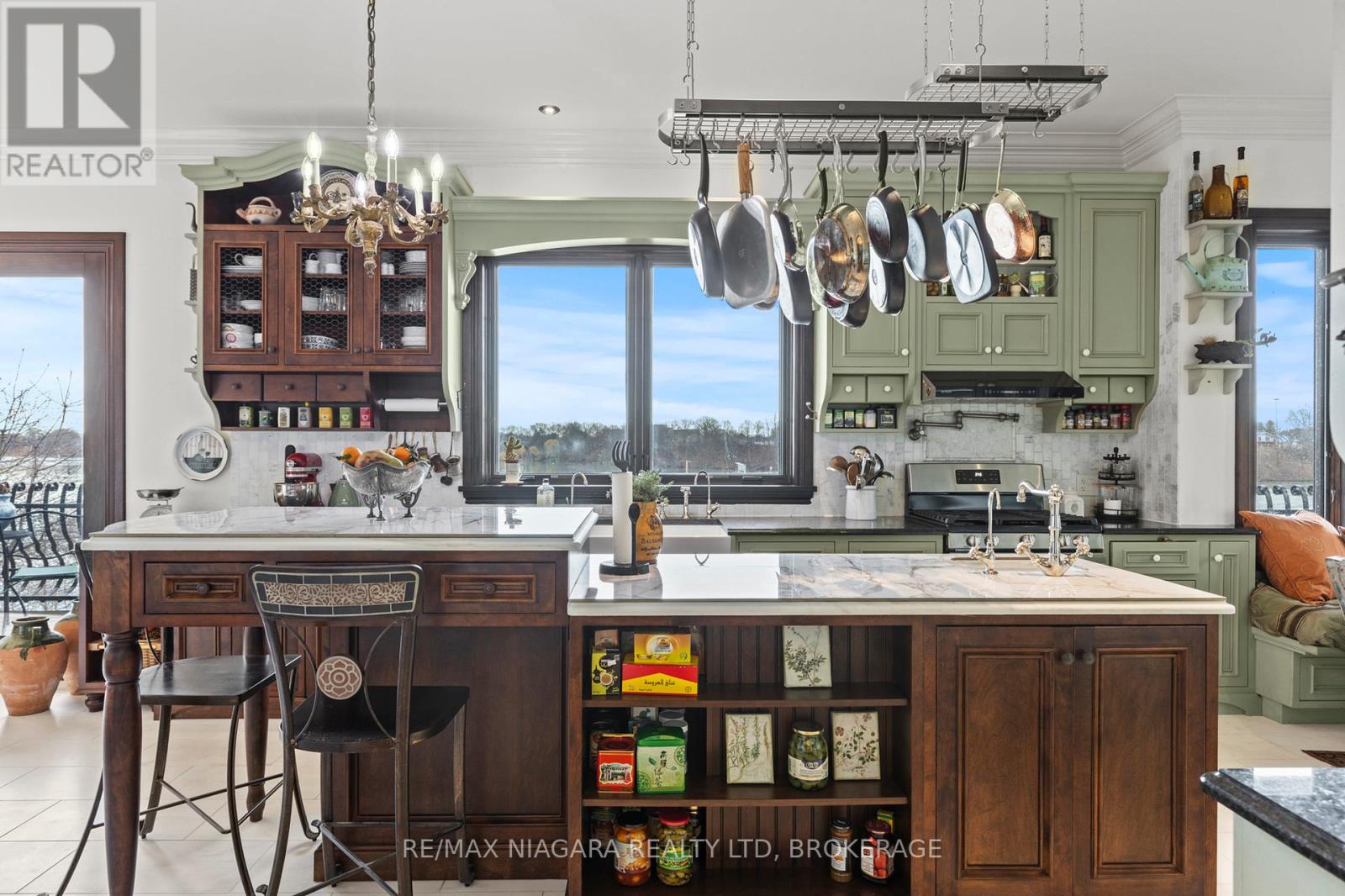Pristine waterfront living meets timeless European elegance. This extraordinary custom built two-story residence offers over 4500 sq ft of beautifully crafted living space, designed to capture panoramic views of Martindale Pond. Home to the prestigious Royal Canadian Henley Rowing Course. From its graceful archways and terracotta rooflines to its warm brick exterior and charming wrought-iron accents, this home exudes Mediterranean charm and architectural sophistication. Step inside and be greeted by sun-drenched interior, soaring ceilings, elegant tile, custom hardwood flooring and expansive windows that frame tranquil water views in nearly every room. The heart of the home features a grand spiral staircase spanning three floors and a gourmet chefs kitchen that flows into spacious open-concept living and dining areas. Multiple walkouts lead to peaceful terraces, private gardens, and an intimate outdoor living area where you can enjoy morning espresso or evening wine by the waters edge. The second floor has a 15ft x 18ft primary suite with 17ft x 8ft custom walk-in closet and 5-pc ensuite featuring floor to ceiling tiled glass shower and spa-like tub with double sinks. The large second bedroom also includes beautiful panoramic views of the pond. Make your way to the third bedroom with large windows overlooking the pond with access to a roof-top patio for relaxation. The lower level features an additional living space with second kitchen, two additional bedrooms, large laundry area and built-in sauna to keep the relaxation going. The backyard features a custom inground stone hot-tub with outdoor shower area for enjoying those Zen moments in life. With pond access, the water enjoyment is limitless. Whether you're savoring the peaceful ambiance, hosting unforgettable gatherings, or simply enjoying the beauty of nature from your own backyard oasis, this property offers a lifestyle of serenity and sophistication. Luxury Certified. (id:64974)