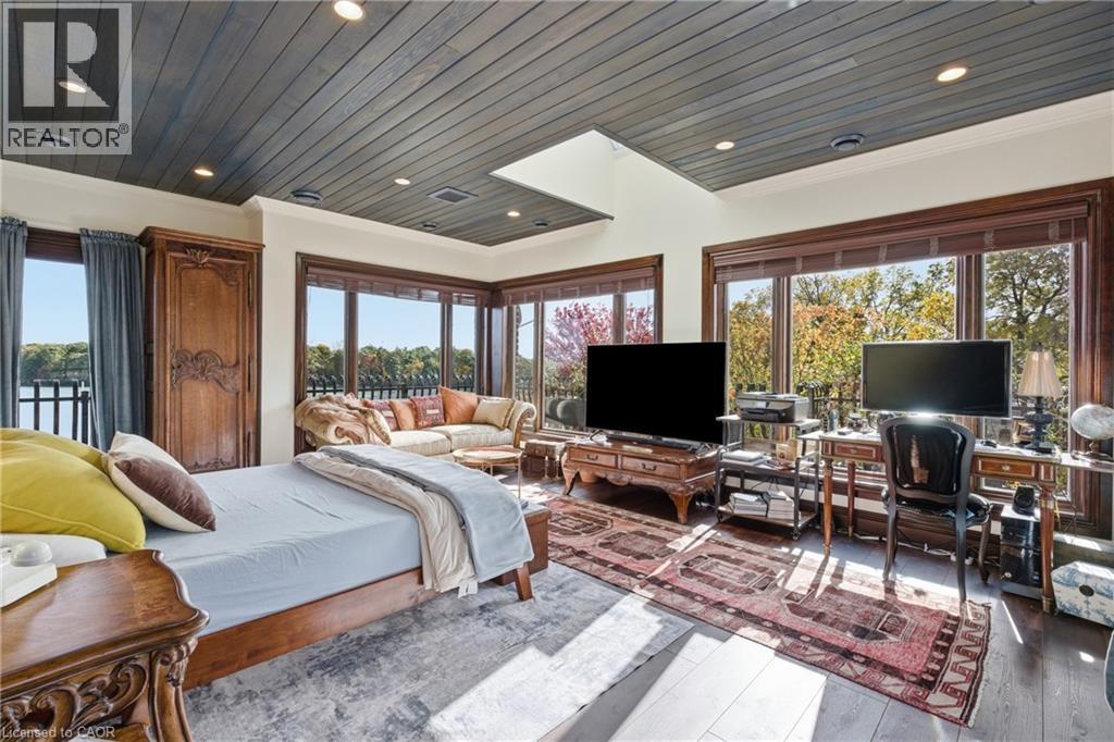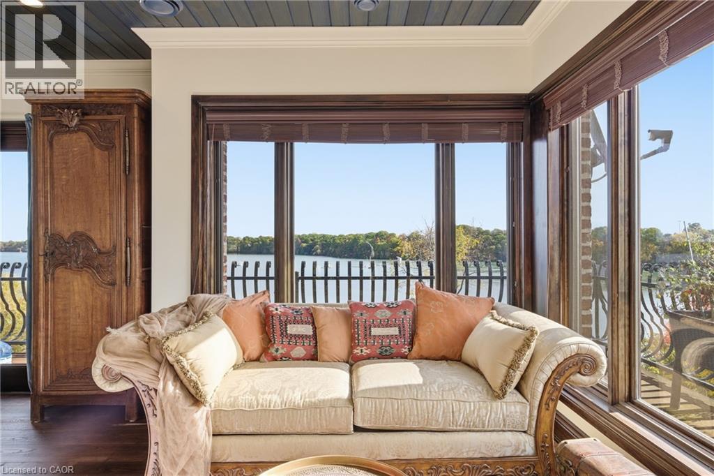 Pristine waterfront living meets timeless European elegance. This extraordinary custom built two-story residence offers over 4500 sq ft of beautifully crafted living space, designed to capture panoramic views of Martindale Pond. Home to the prestigious Royal Canadian Henley Rowing Course. From its graceful archways and terracotta rooflines to its warm brick exterior and charming wrought-iron accents, this home exudes Mediterranean charm and architectural sophistication. Step inside and be greeted by sun-drenched interior, soaring ceilings, elegant tile, custom hardwood flooring and expansive windows that frame tranquil water views in nearly every room. The heart of the home features a grand spiral staircase spanning three floors and a gourmet chefs kitchen that flows into spacious open-concept living and dining areas. Multiple walkouts lead to peaceful terraces, private gardens, and an intimate outdoor living area where you can enjoy morning espresso or evening wine by the waters edge. The second floor has a 15ft x 18ft primary suite with 17ft x 8ft custom walk-in closet and 5-pc ensuite featuring floor to ceiling tiled glass shower and spa-like tub with double sinks. The large second bedroom also includes beautiful panoramic views of the pond. Make your way to the third bedroom with large windows overlooking the pond with access to a roof-top patio for relaxation. The lower level features an additional living space with second kitchen, two additional bedrooms, large laundry area and built-in sauna to keep the relaxation going. The backyard features a custom inground stone hot-tub with outdoor shower area for enjoying those Zen moments in life. With pond access, the water enjoyment is limitless. Whether you're savoring the peaceful ambiance, hosting unforgettable gatherings, or simply enjoying the beauty of nature from your own backyard oasis, this property offers a lifestyle of serenity and sophistication. Luxury Certified. (id:64974)
