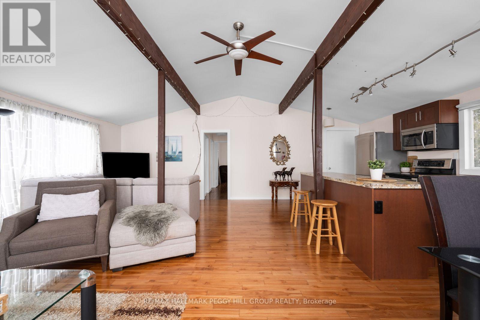 LAKE SIMCOE BUNGALOW WITH 52 FT OF SHORELINE, A BOATHOUSE, & SWEEPING WATER VIEWS ON A 196 FT DEEP LOT! By the time the cars start lining the driveway, the kids are jumping off the dock, the tubes are ready for another round on the water, and dinner has moved outdoors, this waterfront home is already doing what it does best, bringing everyone together. Set on 52 ft of shoreline with a 196 ft deep lot, mature trees, and a boathouse at the water's edge, this beautifully renovated property delivers a private waterfront setting with a clean shoreline, concrete breakwall, and marine railway system made for life on the lake. A 24 x 10 deck off the living room with a privacy wall overlooks the water, while the generous 14 x 22 patio above the boathouse offers another exceptional place to take in the view. Vaulted ceilings, exposed wood beams, hardwood floors, and expansive windows shape the open main living space, where the water remains front and centre and every sightline pulls your eye outdoors. The kitchen is finished with granite counters, flat-panel cabinetry in a rich wood tone, stainless steel appliances, and a large island. Three bedrooms complete the layout, while the beautifully finished 3-piece bath features a walk-in tiled shower, floating vanity, and vessel sink. Parking for three vehicles, and a shed complete the property. Approximately 5 minutes to Friday Harbour, where golf at The Nest, waterfront dining, shops along the Promenade, the marina, and seasonal events are all close at hand. As part of the Glenhaven Beach Association, this property enjoys deeded access to a waterfront park and beach, along with 40 acres of trails surrounded by wildlife and natural privacy. This #HomeToStay sets the scene for family weekends, lakeside dinners, and the kind of summer days that are talked about long after they end. (id:64974)