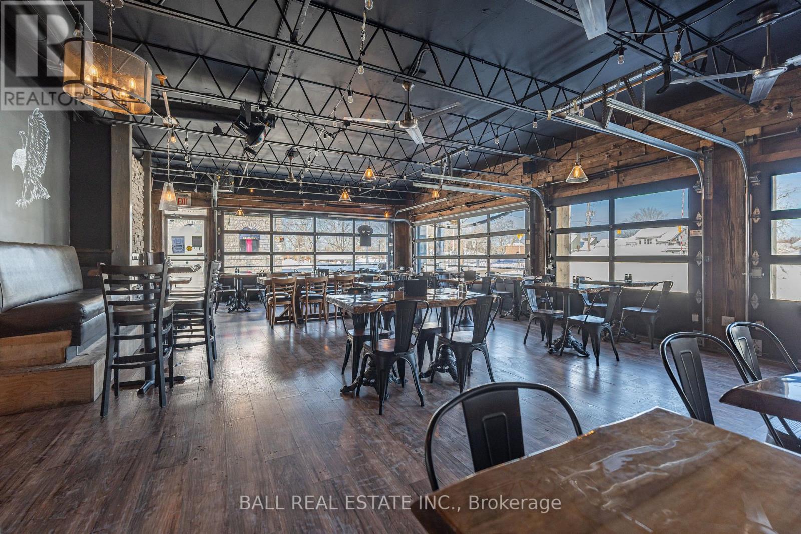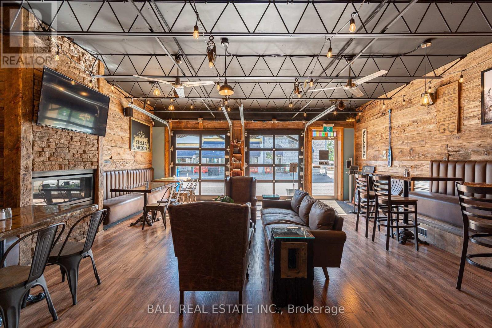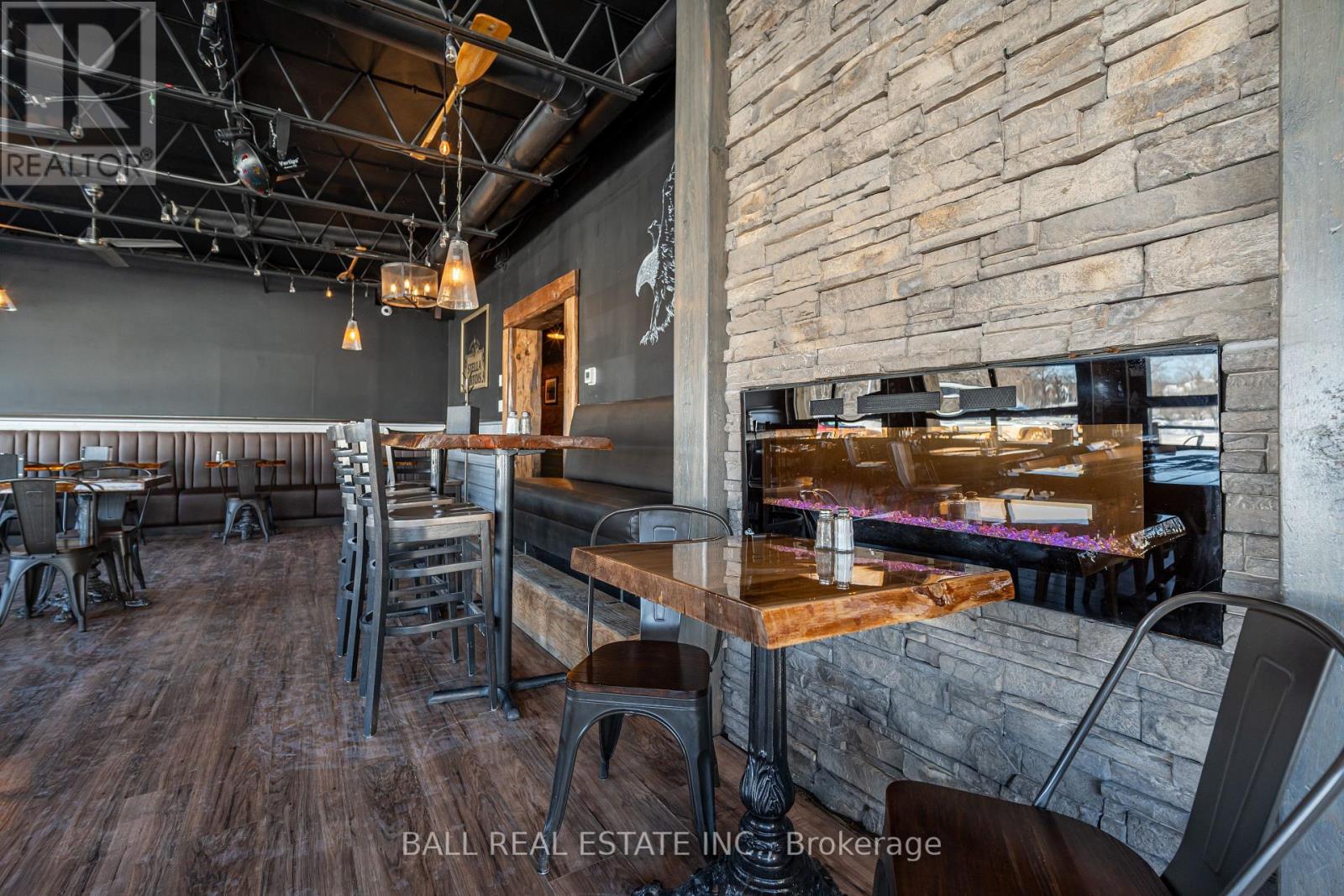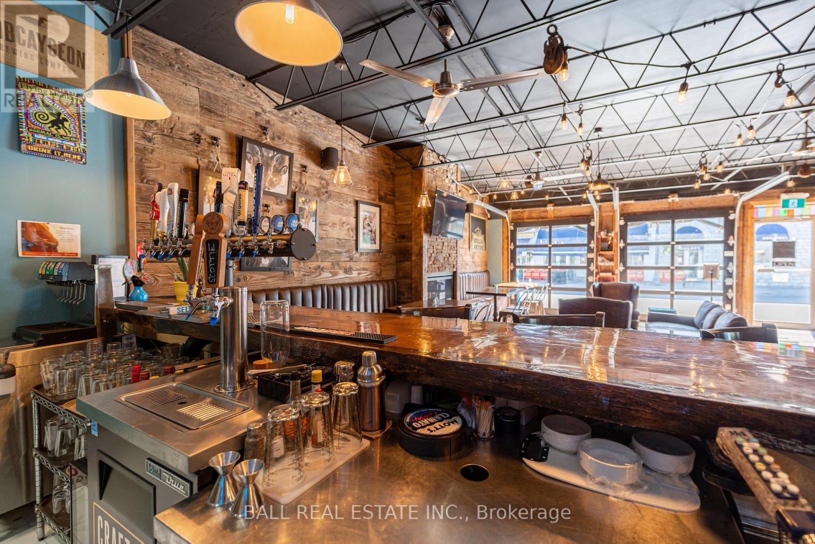 Prime Commercial Opportunity in the Heart of Bobcaygeon! Location is everything - and this property delivers. Ideally positioned on the prominent corner of Bolton & Canal Street directly across from Lock 32 of the iconic Trent-Severn Waterway, this standout building sits in the vibrant, high-traffic core of Bobcaygeon - the Heart of the Kawarthas and one of Ontario's most beloved tourist destinations. Surrounded by constant pedestrian, vehicle and boat traffic in a thriving waterfront community, this is a premier location to establish or expand your business. Just under two hours from the Greater Toronto Area, Bobcaygeon attracts steady seasonal tourism and strong local patronage year-round. This turnkey, double-wide commercial building comes complete with an extensive list of chattels, fixtures, and equipment - offering a seamless transition for new ownership. Currently configured with seating for 90 guests, the space can comfortably accommodate up to 140 patrons. The beautifully renovated interior showcases exceptional craftsmanship and thoughtful design throughout, including historic timber planks reclaimed from the Trent-Severn Waterway and a stunning live-edge bar that creates a warm, inviting atmosphere. Six oversized garage-style doors open fully to downtown and the Locks, providing an unmatched indoor-outdoor experience and an open-air patio feel. Two fireplaces add comfort and ambiance for cooler evenings. The flat rooftop presents an incredible opportunity to create a rooftop patio overlooking the Locks - a feature that could elevate this already impressive space even further. A rare opportunity to own a landmark commercial property in one of Ontario's most sought-after recreational communities. (id:64974)