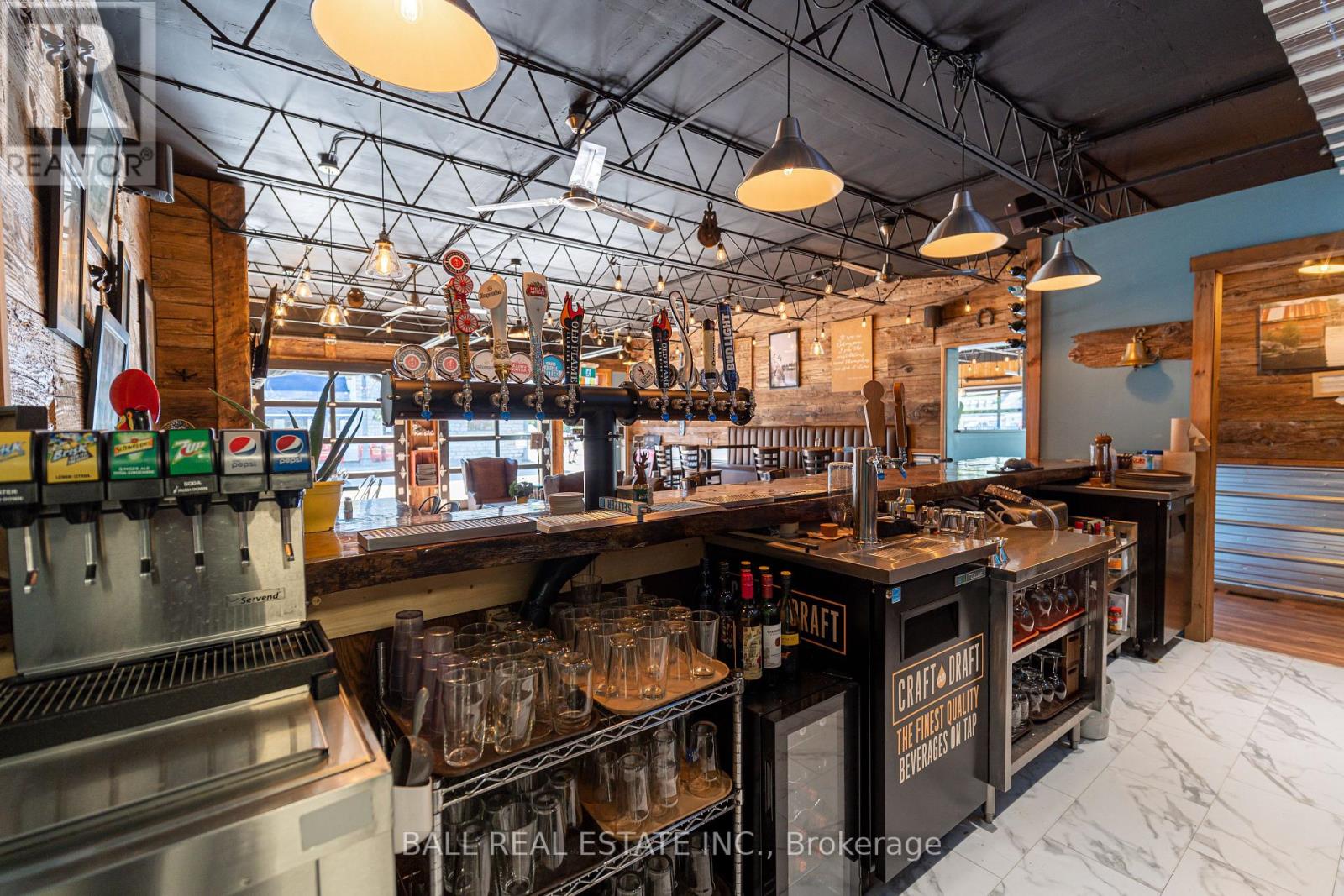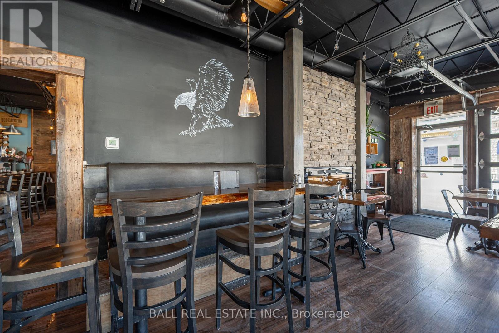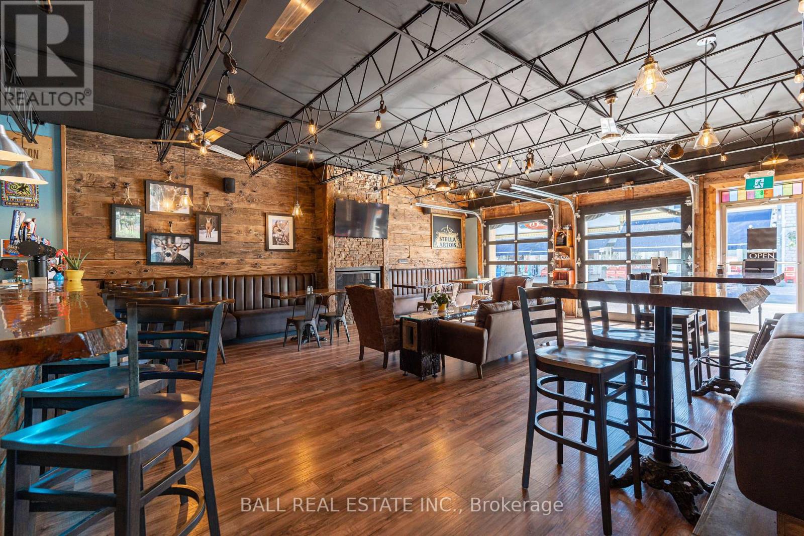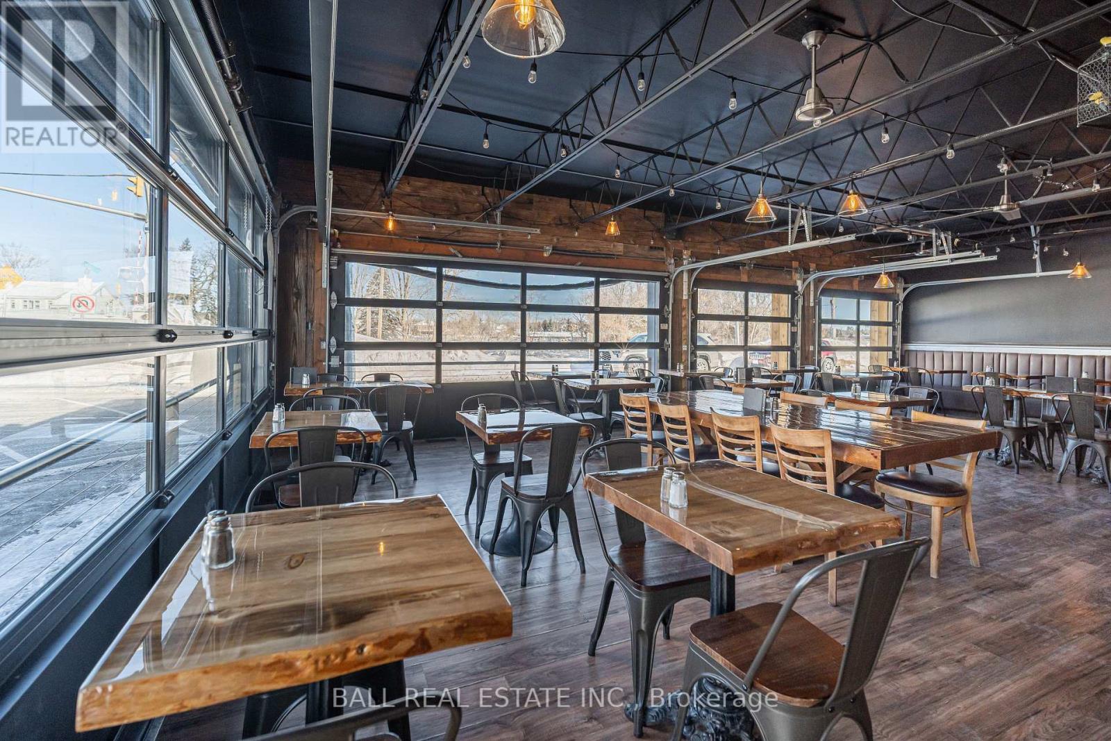Prime Commercial Opportunity in the Heart of Bobcaygeon! Location is everything - and this property delivers. Ideally positioned on the prominent corner of Bolton & Canal Street directly across from Lock 32 of the iconic Trent-Severn Waterway, this standout building sits in the vibrant, high-traffic core of Bobcaygeon - the Heart of the Kawarthas and one of Ontario's most beloved tourist destinations. Surrounded by constant pedestrian, vehicle and boat traffic in a thriving waterfront community, this is a premier location to establish or expand your business. Just under two hours from the Greater Toronto Area, Bobcaygeon attracts steady seasonal tourism and strong local patronage year-round. This turnkey, double-wide commercial building comes complete with an extensive list of chattels, fixtures, and equipment - offering a seamless transition for new ownership. Currently configured with seating for 90 guests, the space can comfortably accommodate up to 140 patrons. The beautifully renovated interior showcases exceptional craftsmanship and thoughtful design throughout, including historic timber planks reclaimed from the Trent-Severn Waterway and a stunning live-edge bar that creates a warm, inviting atmosphere. Six oversized garage-style doors open fully to downtown and the Locks, providing an unmatched indoor-outdoor experience and an open-air patio feel. Two fireplaces add comfort and ambiance for cooler evenings. The flat rooftop presents an incredible opportunity to create a rooftop patio overlooking the Locks - a feature that could elevate this already impressive space even further. A rare opportunity to own a landmark commercial property in one of Ontario's most sought-after recreational communities. (id:64974)