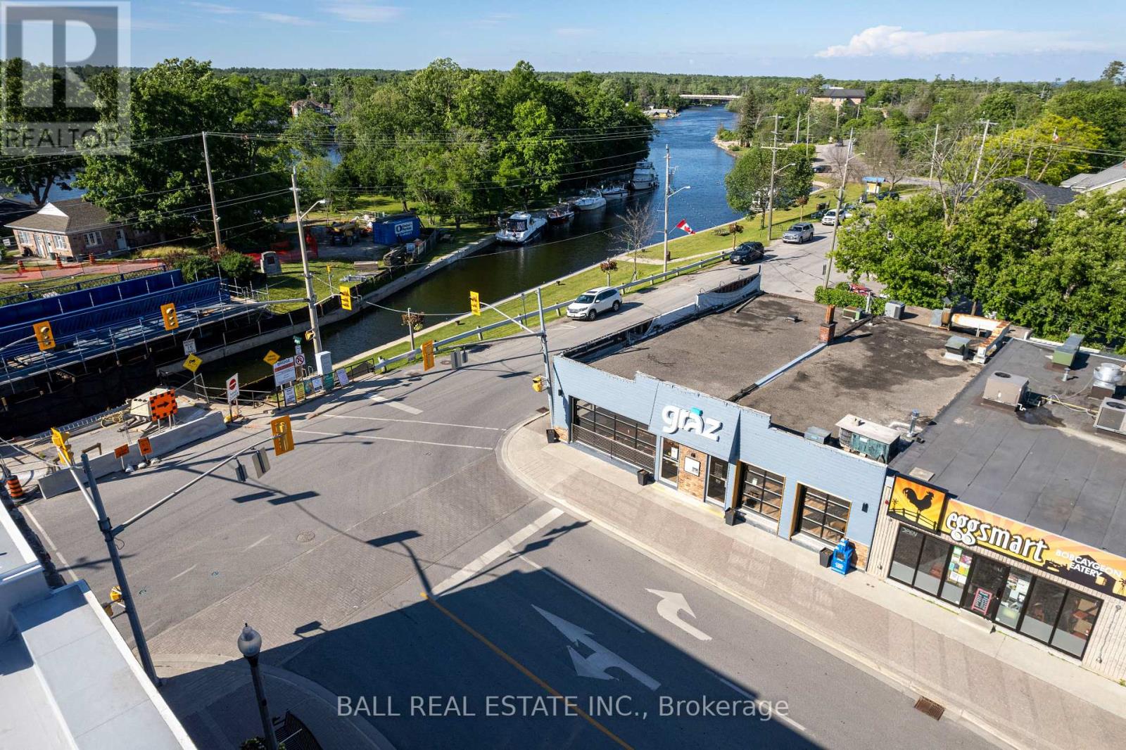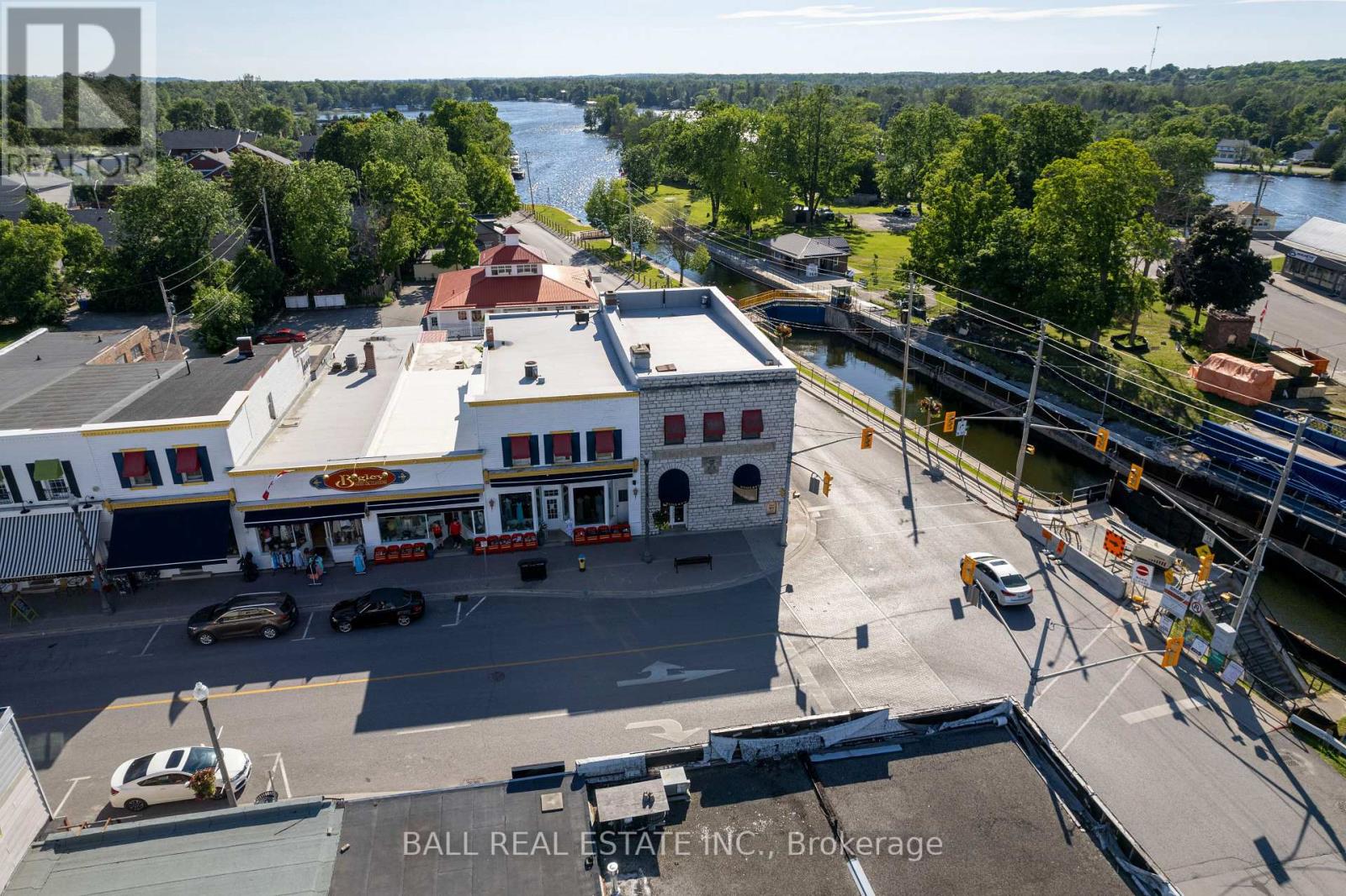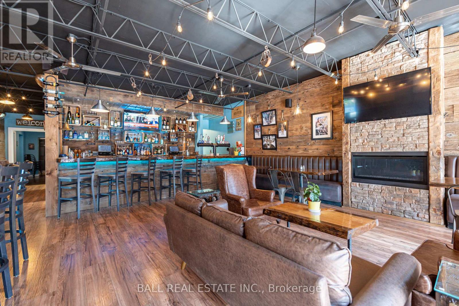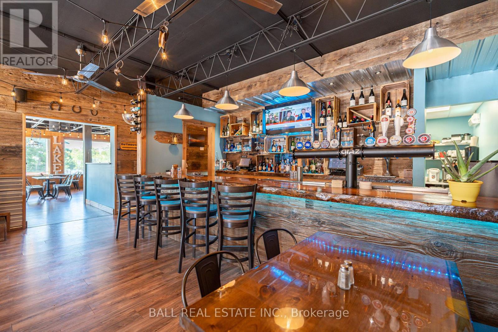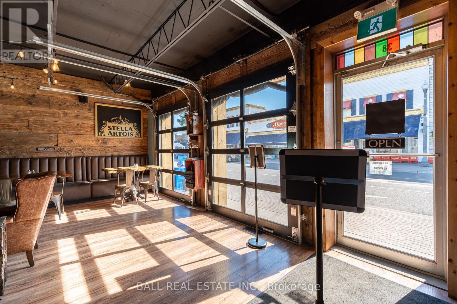 Prime Commercial Opportunity in the Heart of Bobcaygeon! Location is everything - and this property delivers. Ideally positioned on the prominent corner of Bolton & Canal Street directly across from Lock 32 of the iconic Trent-Severn Waterway, this standout building sits in the vibrant, high-traffic core of Bobcaygeon - the Heart of the Kawarthas and one of Ontario's most beloved tourist destinations. Surrounded by constant pedestrian, vehicle and boat traffic in a thriving waterfront community, this is a premier location to establish or expand your business. Just under two hours from the Greater Toronto Area, Bobcaygeon attracts steady seasonal tourism and strong local patronage year-round. This turnkey, double-wide commercial building comes complete with an extensive list of chattels, fixtures, and equipment - offering a seamless transition for new ownership. Currently configured with seating for 90 guests, the space can comfortably accommodate up to 140 patrons. The beautifully renovated interior showcases exceptional craftsmanship and thoughtful design throughout, including historic timber planks reclaimed from the Trent-Severn Waterway and a stunning live-edge bar that creates a warm, inviting atmosphere. Six oversized garage-style doors open fully to downtown and the Locks, providing an unmatched indoor-outdoor experience and an open-air patio feel. Two fireplaces add comfort and ambiance for cooler evenings. The flat rooftop presents an incredible opportunity to create a rooftop patio overlooking the Locks - a feature that could elevate this already impressive space even further. A rare opportunity to own a landmark commercial property in one of Ontario's most sought-after recreational communities. (id:64974)