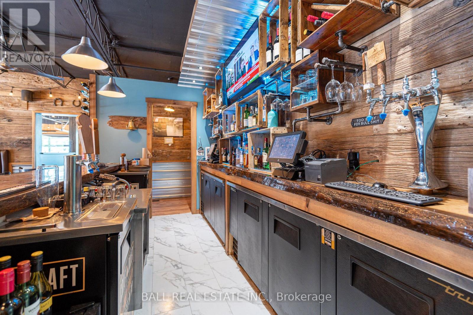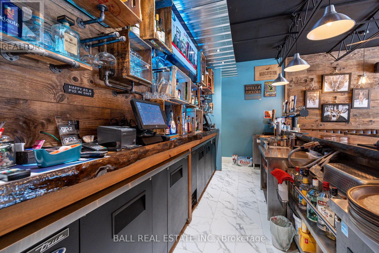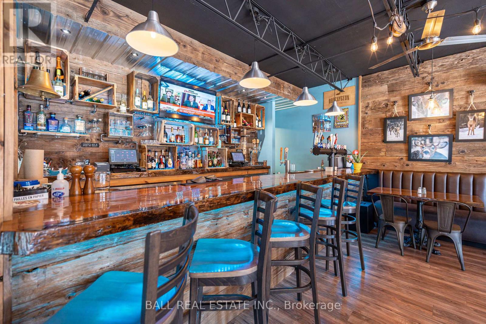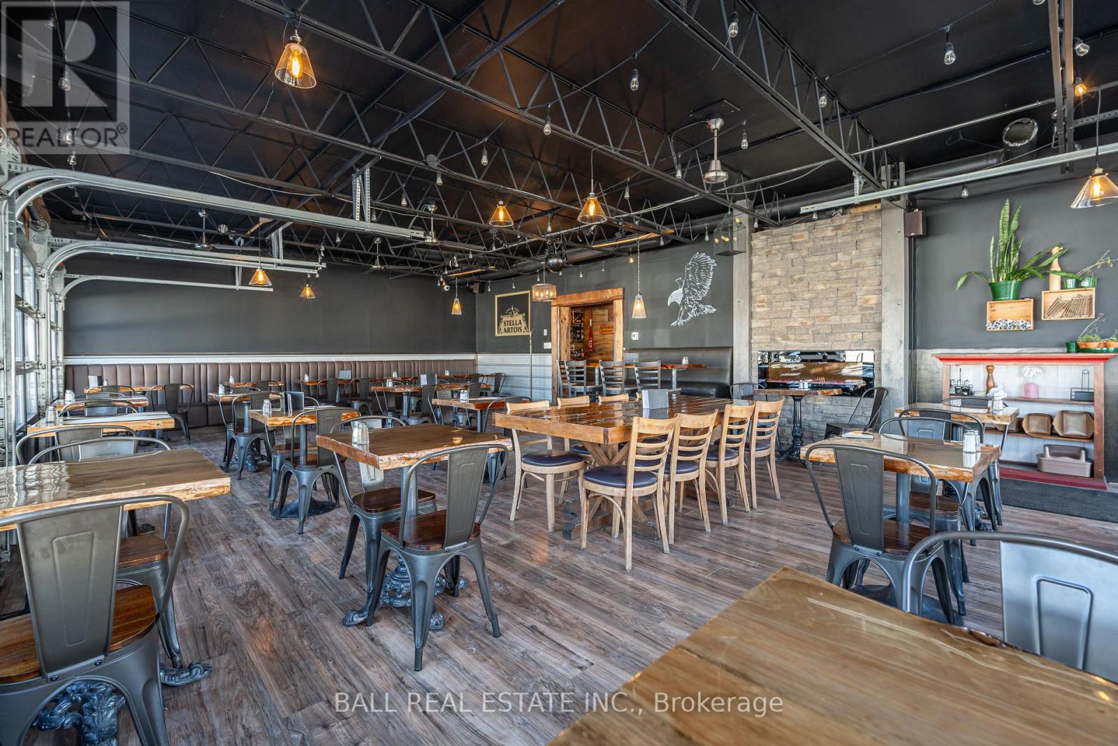 Prime Commercial Opportunity in the Heart of Bobcaygeon! Location is everything - and this property delivers. Ideally positioned on the prominent corner of Bolton & Canal Street directly across from Lock 32 of the iconic Trent-Severn Waterway, this standout building sits in the vibrant, high-traffic core of Bobcaygeon - the Heart of the Kawarthas and one of Ontario's most beloved tourist destinations. Surrounded by constant pedestrian, vehicle and boat traffic in a thriving waterfront community, this is a premier location to establish or expand your business. Just under two hours from the Greater Toronto Area, Bobcaygeon attracts steady seasonal tourism and strong local patronage year-round. This turnkey, double-wide commercial building comes complete with an extensive list of chattels, fixtures, and equipment - offering a seamless transition for new ownership. Currently configured with seating for 90 guests, the space can comfortably accommodate up to 140 patrons. The beautifully renovated interior showcases exceptional craftsmanship and thoughtful design throughout, including historic timber planks reclaimed from the Trent-Severn Waterway and a stunning live-edge bar that creates a warm, inviting atmosphere. Six oversized garage-style doors open fully to downtown and the Locks, providing an unmatched indoor-outdoor experience and an open-air patio feel. Two fireplaces add comfort and ambiance for cooler evenings. The flat rooftop presents an incredible opportunity to create a rooftop patio overlooking the Locks - a feature that could elevate this already impressive space even further. A rare opportunity to own a landmark commercial property in one of Ontario's most sought-after recreational communities. (id:64974)