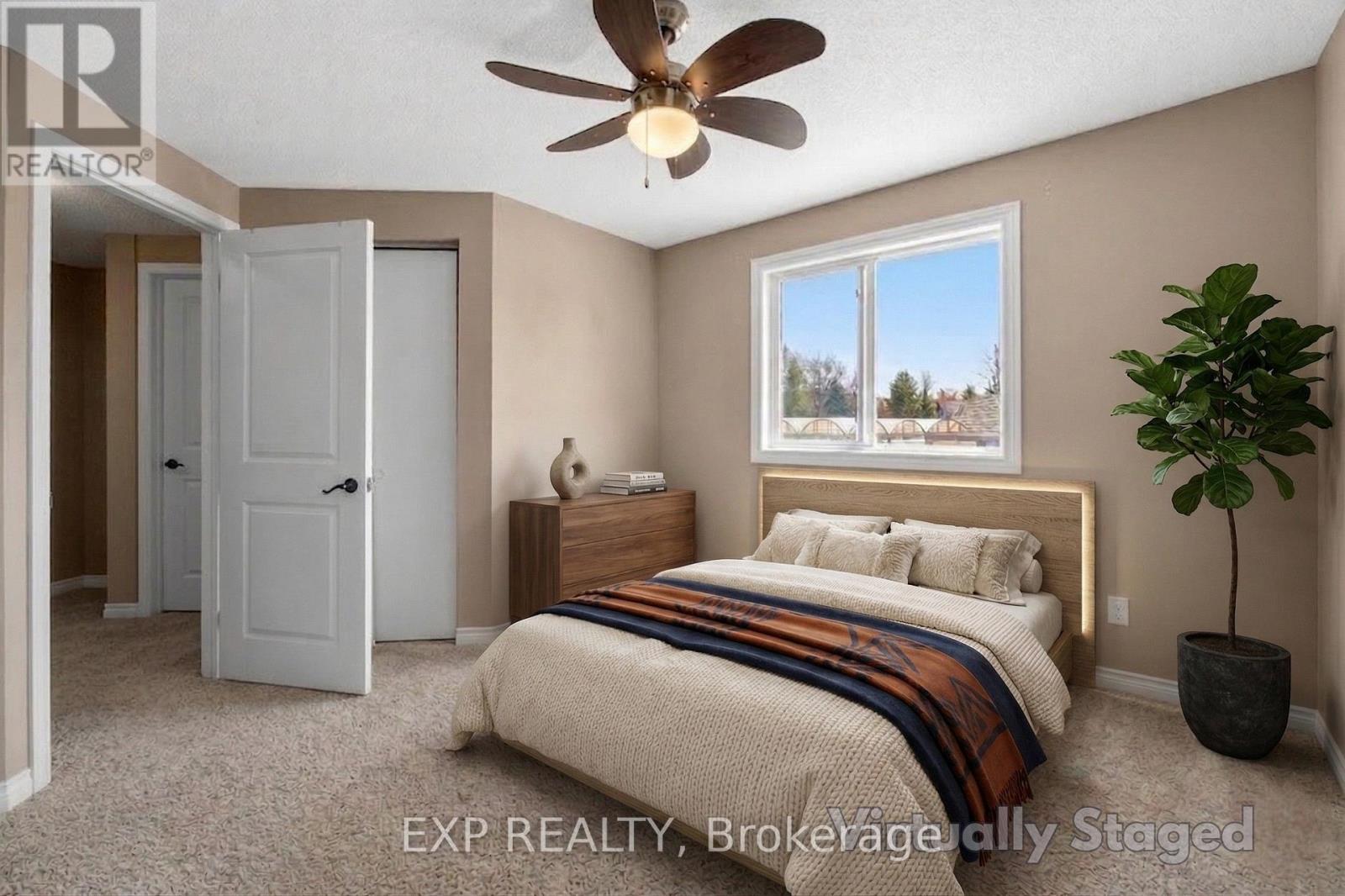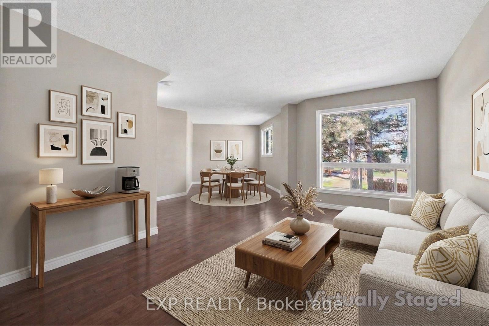Your new home or investment opportunity awaits in this beautiful Laurentian Hills community! This 3-storey townhouse offers an ideal opportunity for first-time buyers or investors. Currently tenanted and well-maintained, the home features a functional layout with over 1,600 square feet of finished above-grade living space and no basement. The main level includes a family room or flexible home office with a walk-out to the rear yard and amenities. The second level features a powder room, a cozy living room combined with dining, and an open-concept kitchen-all with large windows and ample natural light overlooking the backyard and the amenities, perfect for watching the kids play. The upper level features three spacious, bright bedrooms with ample natural light and ceiling fans, along with a 4-piece bathroom. The home also features a built-in garage and a private driveway. Residents enjoy access to community amenities including an outdoor pool, a children's playground, and a basketball court, with visitor parking available on-site. This home is perfectly situated for commuters with quick access to the Conestoga Parkway, Highway 8, and the 401. It is also within walking distance to the trails and recreation at McLennan Park, Elmsdale Park, Chandler Mowat Community Centre, and is just minutes away from major shopping at Sunrise Shopping Centre, Laurentian Power Centre & more. (id:64974)