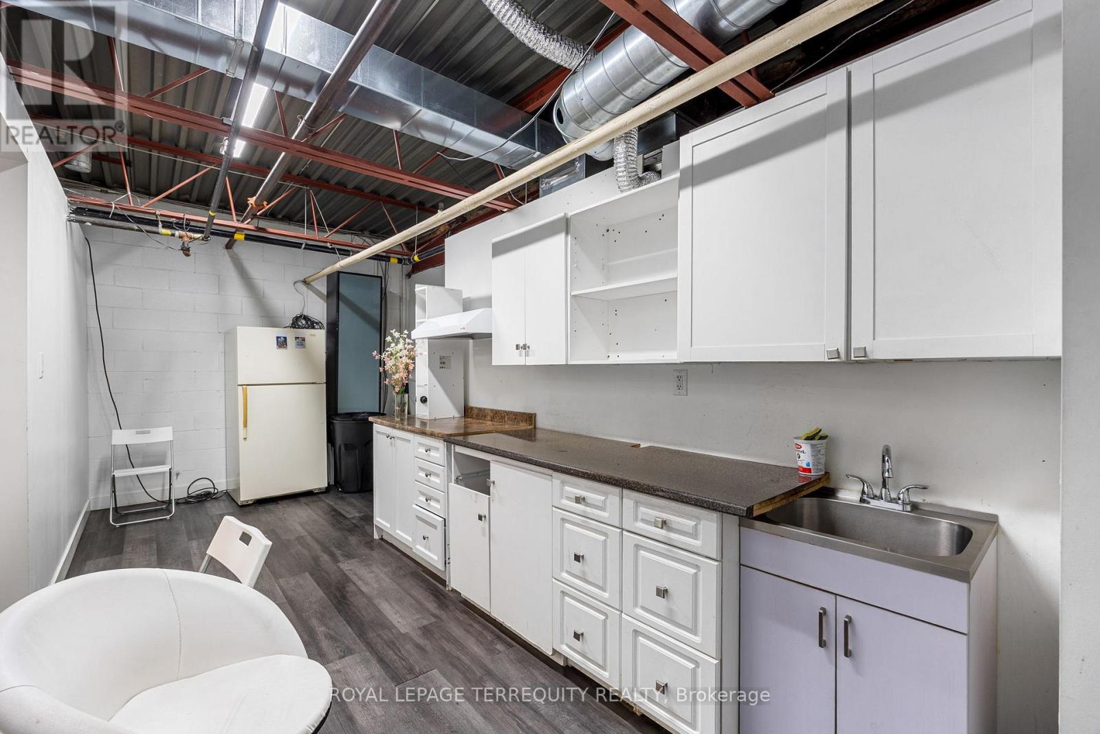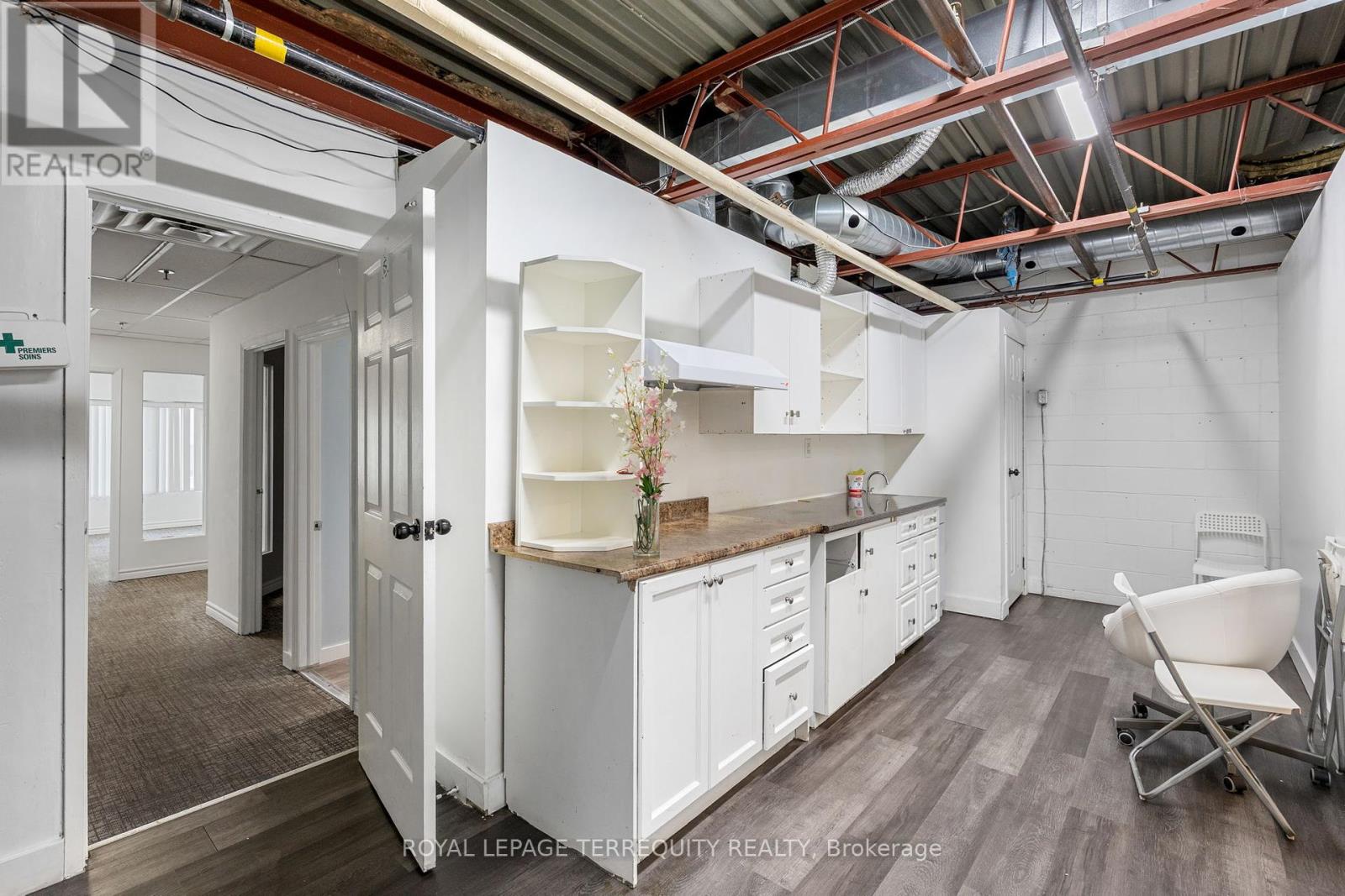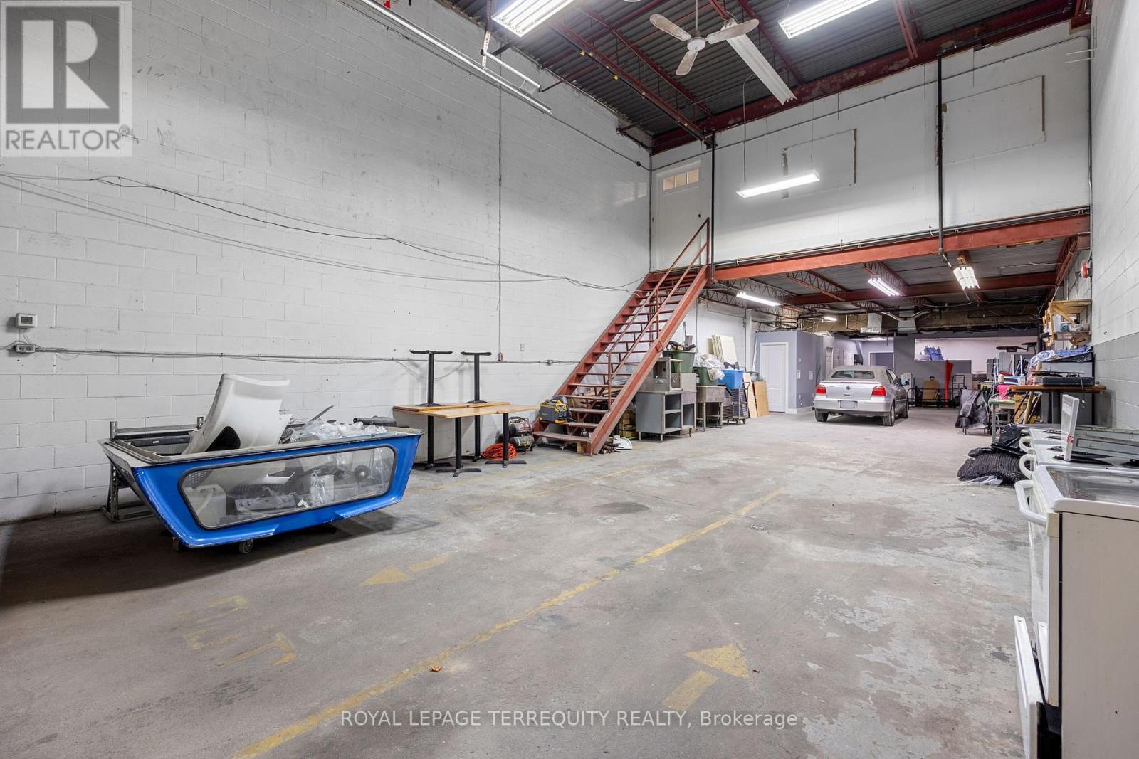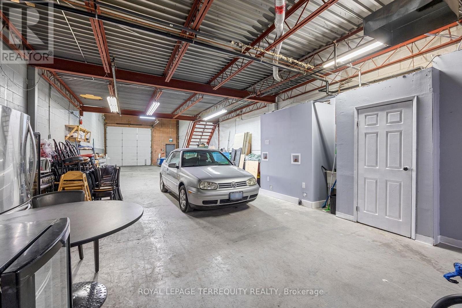Seize a remarkable and unique opportunity in a centrally located industrial complex in North York. This industrial condo, with favorable EH1 zoning, is suitable for many industrial uses. The property features a rare oversized drive-in garage door with a 20-foot clear height and robust 600-amp power. The space is thoughtfully designed, including a separate entrance to a 1,300 sq ft mezzanine on the second floor. This level offers a finished office space, storage, a kitchenette, and two full bathrooms. The lower level features a warehouse for storage and an additional bathroom. Located just minutes from Highways 400, 407, and 7, this site provides exceptional access to major transportation routes. The property also includes four parking spaces. With a total area of 3,700 square feet, the building is equipped with gas forced-air heating, air conditioning, and sprinklers. This is a fantastic opportunity for both end-users and investors looking for a prime industrial location. (id:64974)