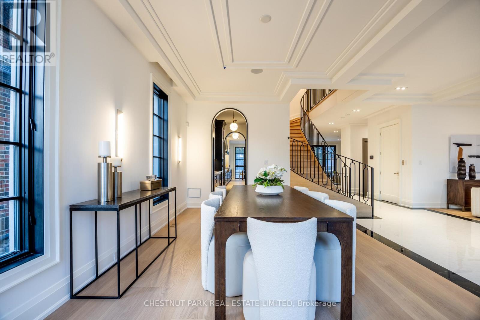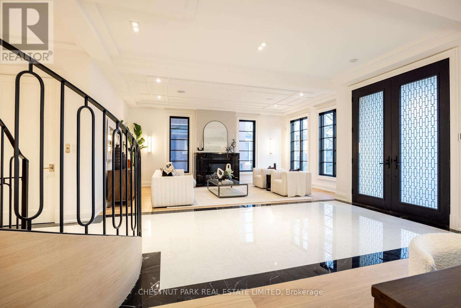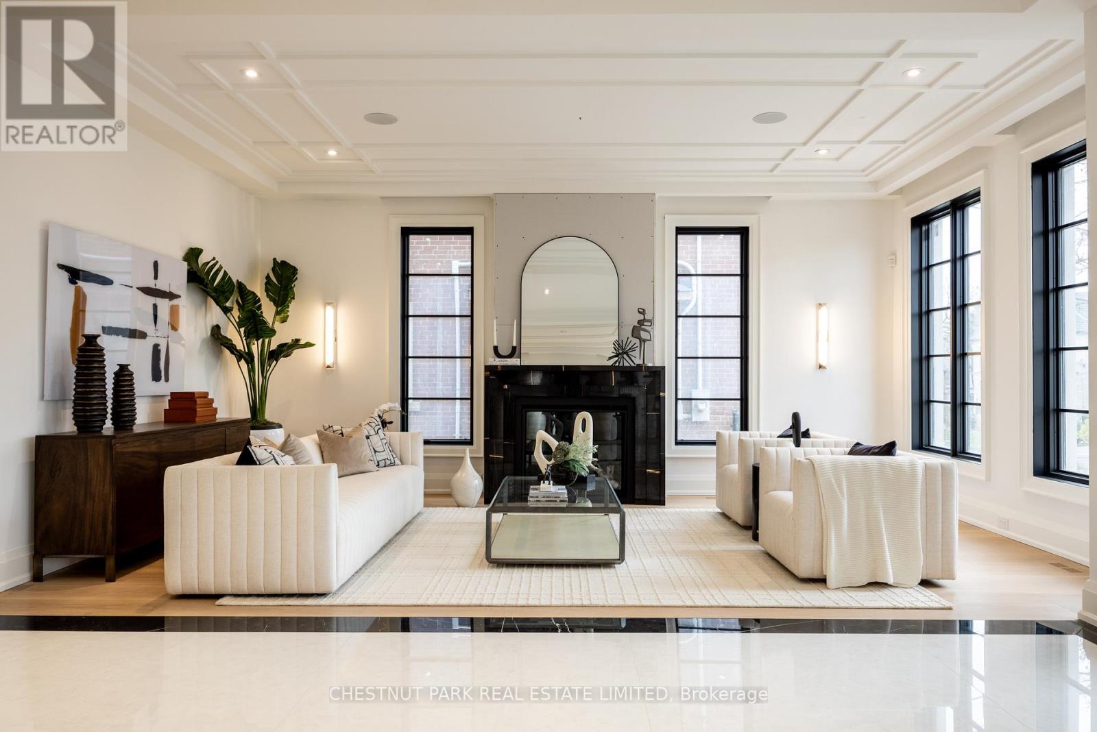 A newly built custom residence, designed by Spragge Architects, is perfectly positioned with southern exposure and captivating winter city views. Exemplifying exceptional craftsmanship in the heart of prestigious Forest Hill. This 6-bedroom, 8-bathroom home spans over 5,200 sq ft of refined living space, blending timeless artistry with the finest materials. From the moment you arrive, a heated walkway leads to an impressive entrance framed by a brick and Indiana limestone facade. Inside, soaring 10.5-foot ceilings, a sweeping curved staircase, and a grand stone hallway set a tone of understated elegance. The formal oversized living and dining rooms feature coffered ceilings, a statement fireplace, and a butler's pantry designed for seamless entertaining. Sunlight fills the principal rooms, overlooking manicured gardens and a saltwater pool, while a private elevator offers effortless access to every level. Enter through the private side entrance from the driveway into a well-appointed mudroom that combines function and style, adjacent to a striking powder room with marble floors and an integrated marble sink. The chef's kitchen, anchored by a generous eat-in island and breakfast area, connects to a welcoming family room with custom built-ins, a coffered ceiling, and a walk-out to the private yard. Upstairs, the Primary suite offers a tranquil retreat with a private balcony, custom walk-in closet with exquisite cabinetry, and spa-inspired ensuite. Two additional bedrooms, each with designer finishes and ensuite bathrooms, complete this level. The top floor adds versatility with two more bedrooms, a full bath, an office or play space, and a sunlit laundry room with abundant storage. The lower level impresses with a large recreation room, wet bar, gym, guest/nanny suite, powder room, and ample storage & radiant heating. Just steps from Forest Hill Village, Cedarvale Park, and only 15 minutes to Yorkville. Thirty-Six Ava Road defines modern luxury and effortless living. (id:64974)