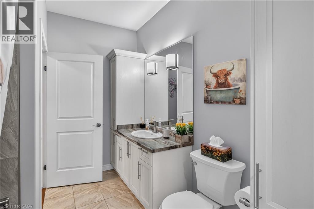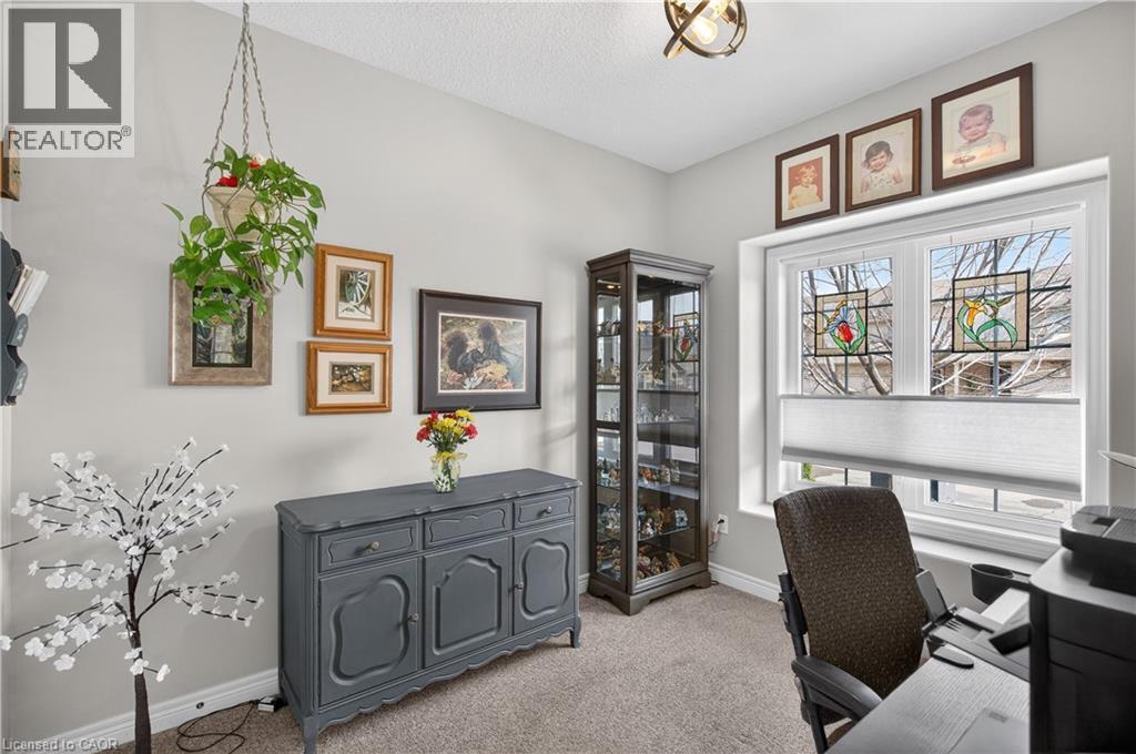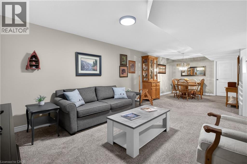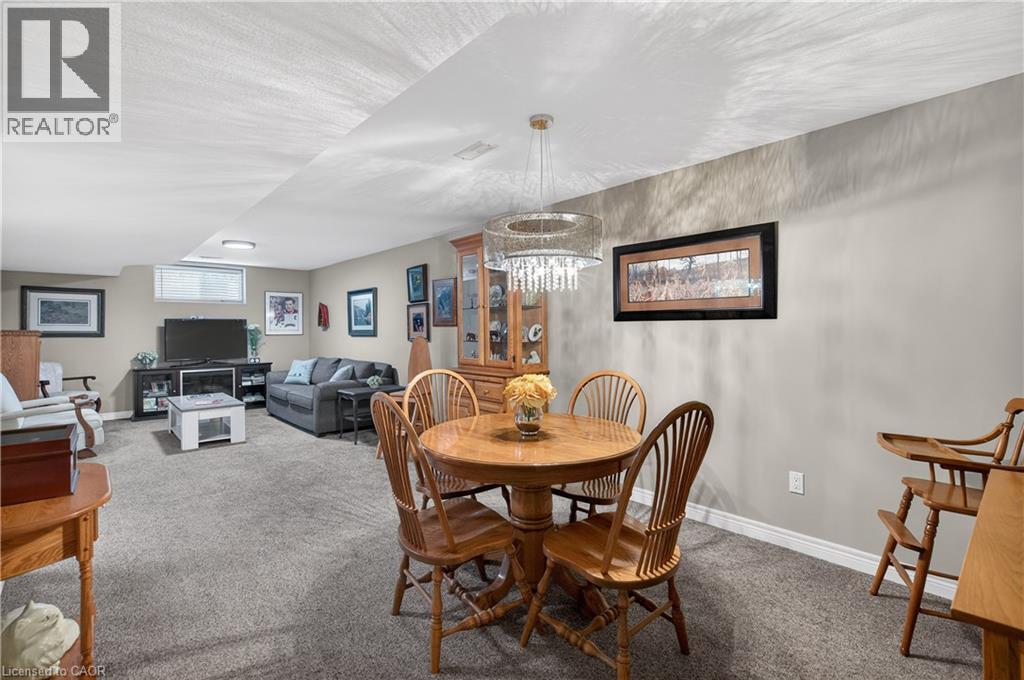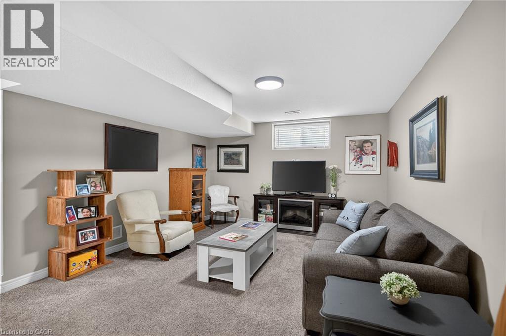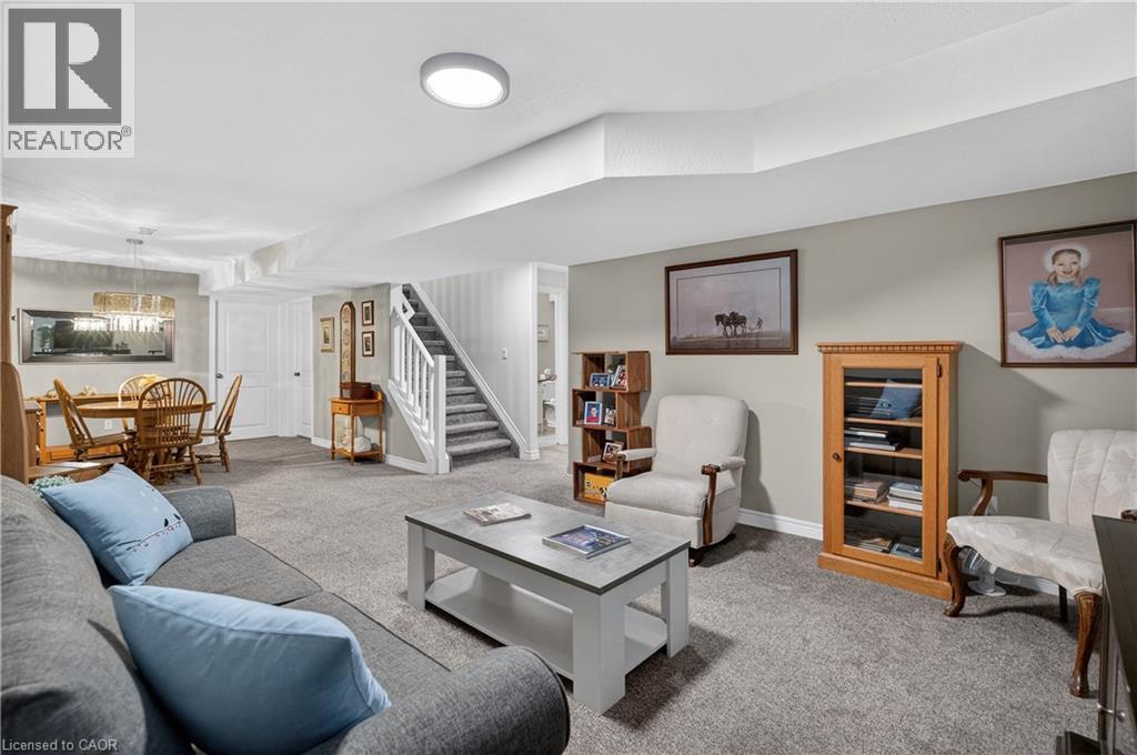 Premium end-unit freehold townhome in the vibrant City of Brantford. Beautifully appointed and meticulously maintained, this 2+1 bdrm, 2 bath residence offers an exceptional blend of style, comfort, & convenience. From the moment you arrive, the home’s striking facade featuring stone, stucco, and brick creates a lasting first impression, complemented by tasteful landscaping and a covered front porch. A spacious foyer welcomes you inside, complete with an oversized storage closet and a versatile front bdrm currently used as a home office. The heart of the home showcases an open-concept design, anchored by a spacious kitchen w/ upgraded white cabinetry, mirrored backsplash, S/S appliances including a new LG fridge & dishwasher ('24), undermount lighting, & a centre island w/ breakfast bar seating. A separate formal dining area flows seamlessly into the large liv rm, highlighted by a cozy gas FP & walkout to the private rear yard. The main lvl primary retreat offers ensuite privileges to a beautifully finished 4-pc bath, along w/ the convenience of main flr laundry. The f-fin lower lvl expands your living space w/ a generous rec rm feat an electric FP, a 3rd bdrm, & a 3-pc bath w/ an oversized glass walk-in shower. Step outside to enjoy a thoughtfully designed backyard complete with a pergola, privacy screens, sunshade, concrete patio, gas line for BBQ, storage shed, and grassy area. Noteworthy upgrades include updated lighting fixtures, LED pot lighting throughout the kitchen, dining, and living areas, garage door, laundry room cabinetry, and fresh paint on the main level. Crown moulding & hardwood flooring add a refined finish throughout. Located in a sought-after neighbourhood, this home offers easy access to parks, scenic trails, schools, shopping, and everyday amenities. Commuters will appreciate proximity to Hwy 403, while families benefit from a welcoming community atmosphere and nearby recreational facilities. A perfect balance of lifestyle and location. (id:64974)