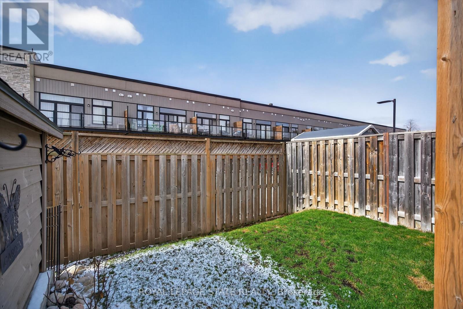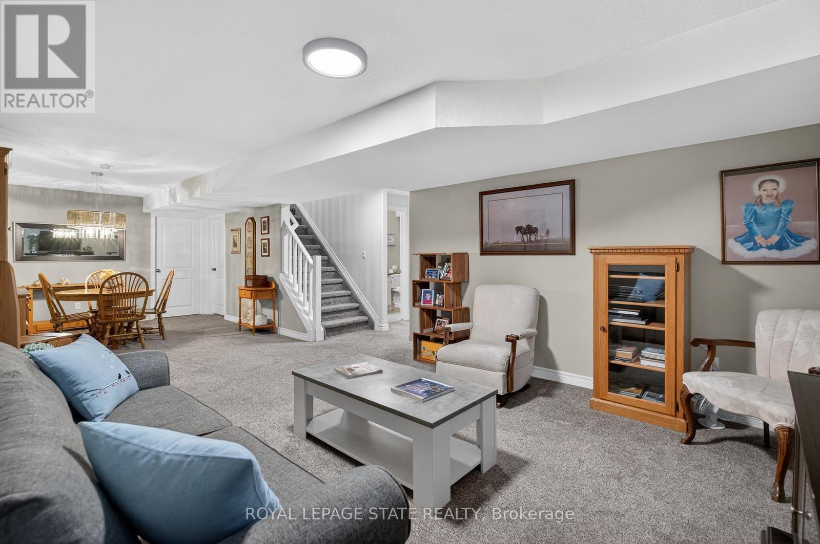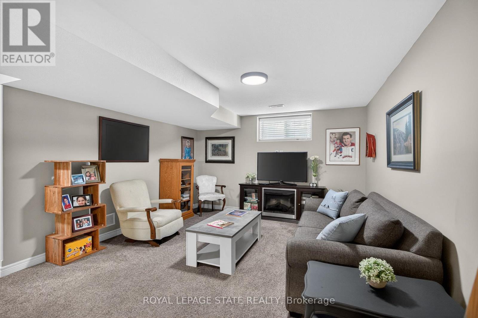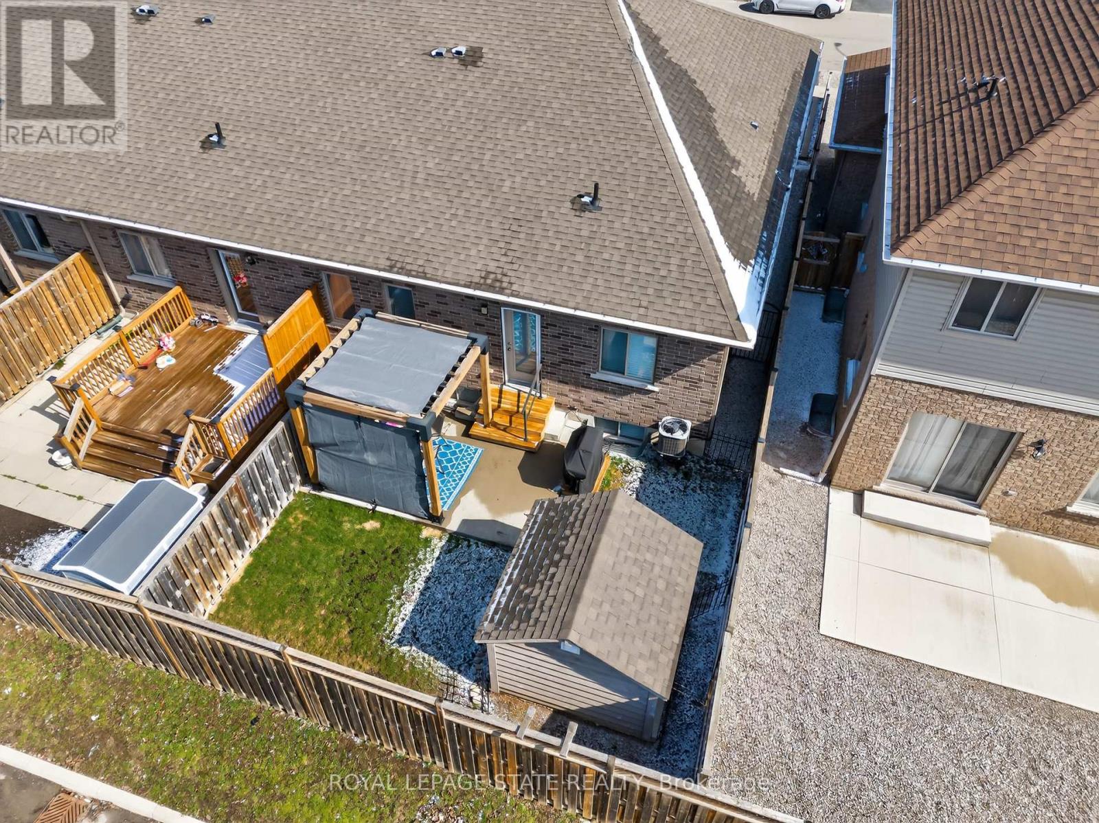 Premium end-unit freehold townhome in the vibrant City of Brantford. Beautifully appointed and meticulously maintained, this 2+1 bdrm, 2 bath residence offers an exceptional blend of style, comfort, & convenience. From the moment you arrive, the home's striking facade featuring stone, stucco, and brick creates a lasting first impression, complemented by tasteful landscaping and a covered front porch. A spacious foyer welcomes you inside, complete with an oversized storage closet and a versatile front bdrm currently used as a home office. The heart of the home showcases an open-concept design, anchored by a spacious kitchen w/ upgraded white cabinetry, mirrored backsplash, S/S appliances including a new LG fridge & dishwasher ('24), undermount lighting, & a centre island w/ breakfast bar seating. A separate formal dining area flows seamlessly into the large liv rm, highlighted by a cozy gas FP & walkout to the private rear yard. The main lvl primary retreat offers ensuite privileges to a beautifully finished 4-pc bath, along w/ the convenience of main flr laundry. The f-fin lower lvl expands your living space w/ a generous rec rm feat an electric FP, a 3rd bdrm, & a 3-pc bath w/ an oversized glass walk-in shower. Step outside to enjoy a thoughtfully designed backyard complete with a pergola, privacy screens, sunshade, concrete patio, gas line for BBQ, storage shed, and grassy area. Noteworthy upgrades include updated lighting fixtures, LED pot lighting throughout the kitchen, dining, and living areas, garage door, laundry room cabinetry, and fresh paint on the main level. Crown moulding & hardwood flooring add a refined finish throughout. Located in a sought-after neighbourhood, this home offers easy access to parks, scenic trails, schools, shopping, and everyday amenities. Commuters will appreciate proximity to Hwy 403, while families benefit from a welcoming community atmosphere and nearby recreational facilities. A perfect balance of lifestyle and location. (id:64974)