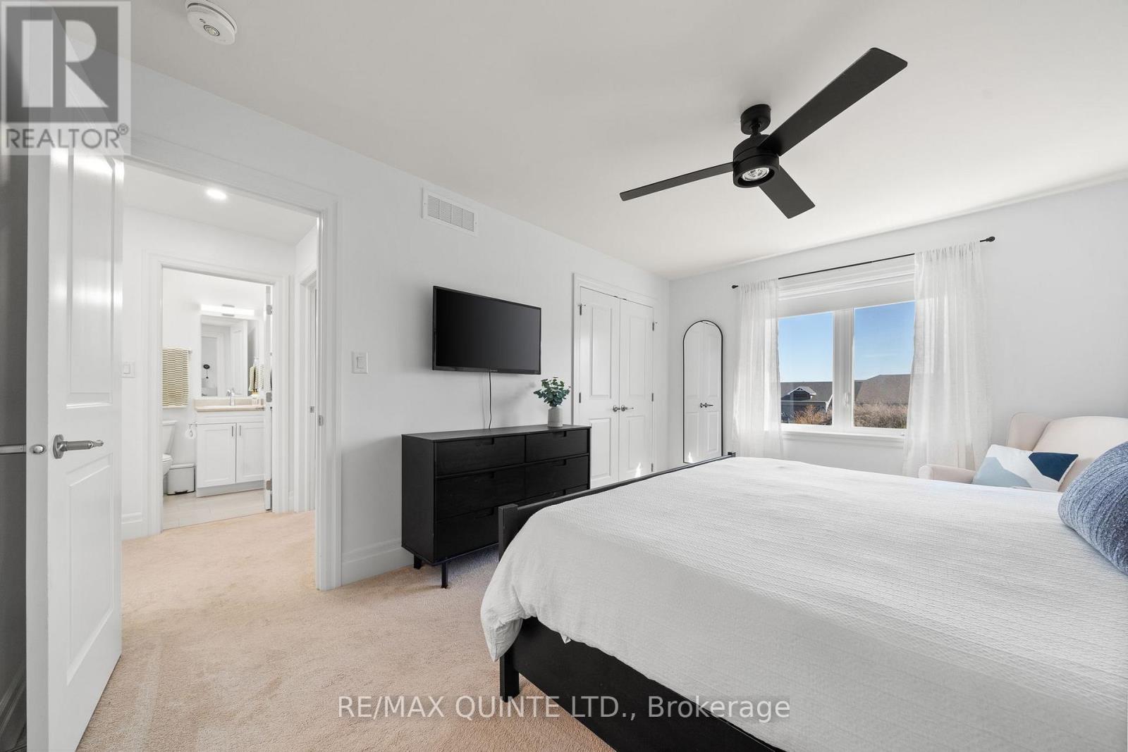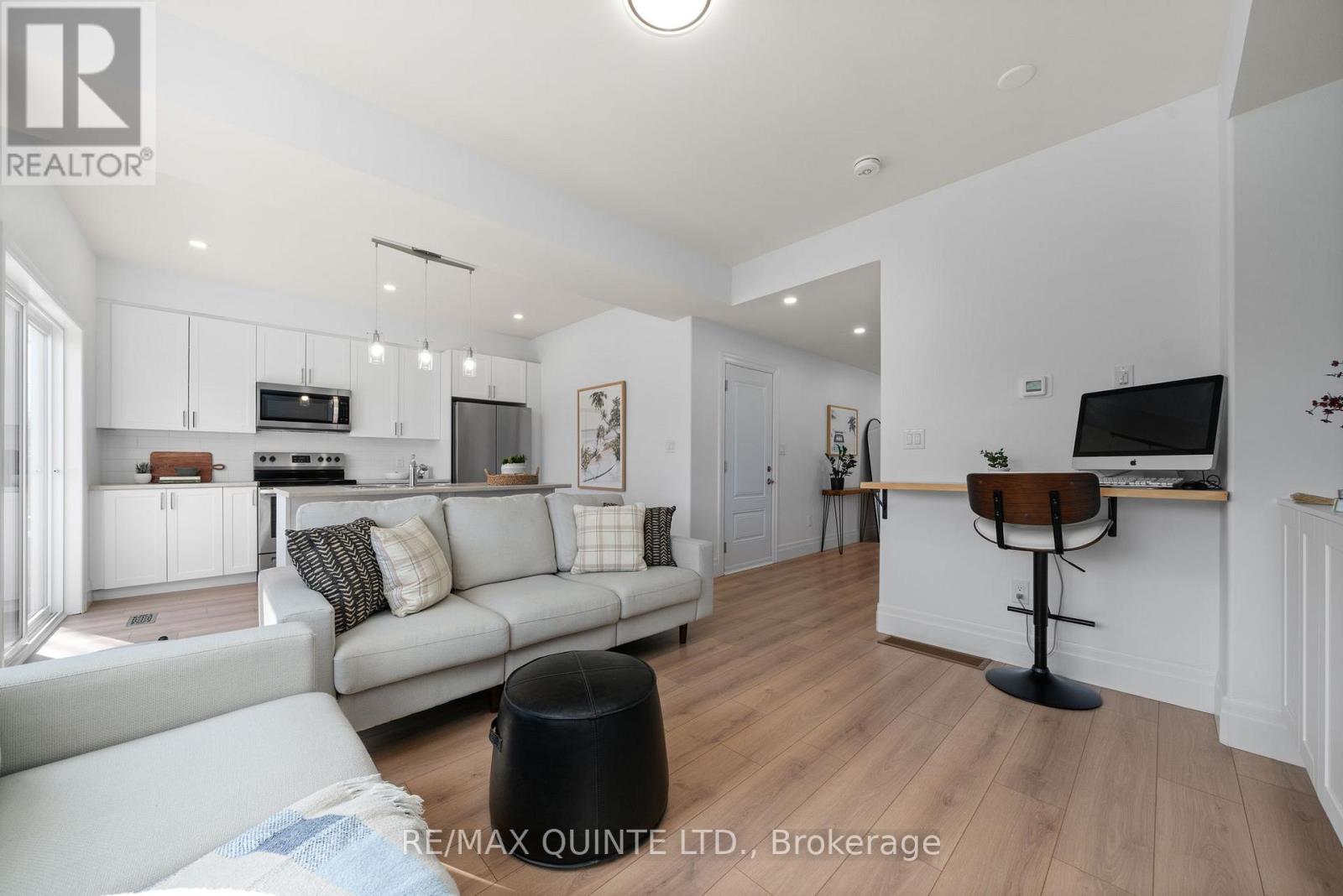 Prime 3-bedroom, 4-bathroom townhome in the heart of Picton, just steps from Main Street. This bright, modern home features 9-ft ceilings, large windows, a stylish kitchen with new stainless steel appliances, an attached garage, and plenty of storage. Updates include built-ins in the living room, an automatic garage door opener, an extended patio, and a gas line for the BBQ. The finished basement (2025) offers a spacious family/rec room, bathroom, and additional storage. Upstairs features three comfortable bedrooms, including a primary suite with ensuite bath, plus convenient second-floor laundry. Enjoy easy living close to downtown Picton, schools, the hospital, parks, and the Millennium Trail. (id:64974)