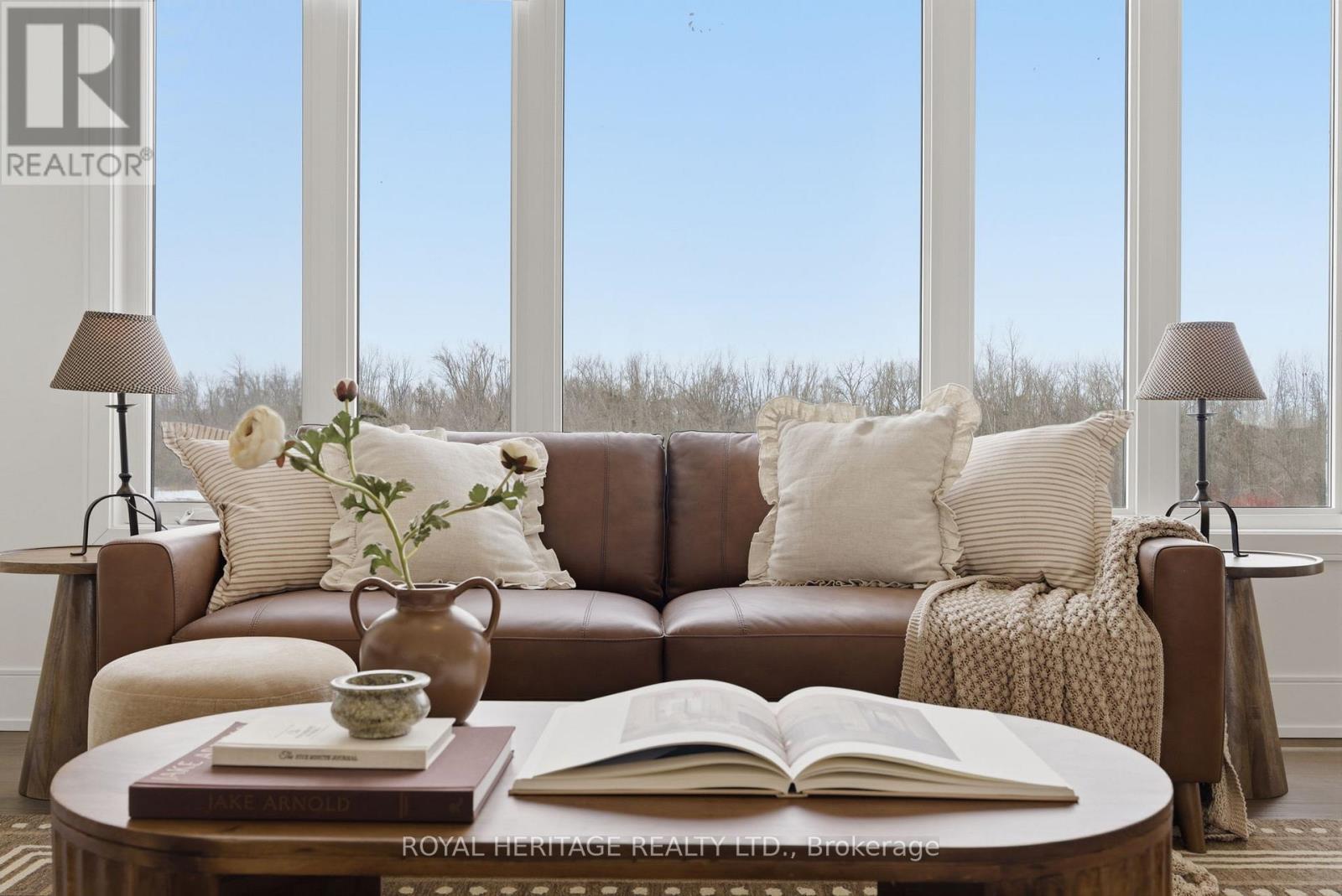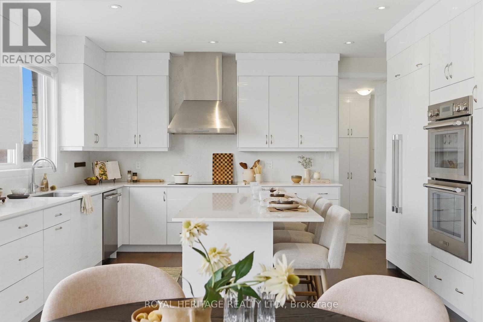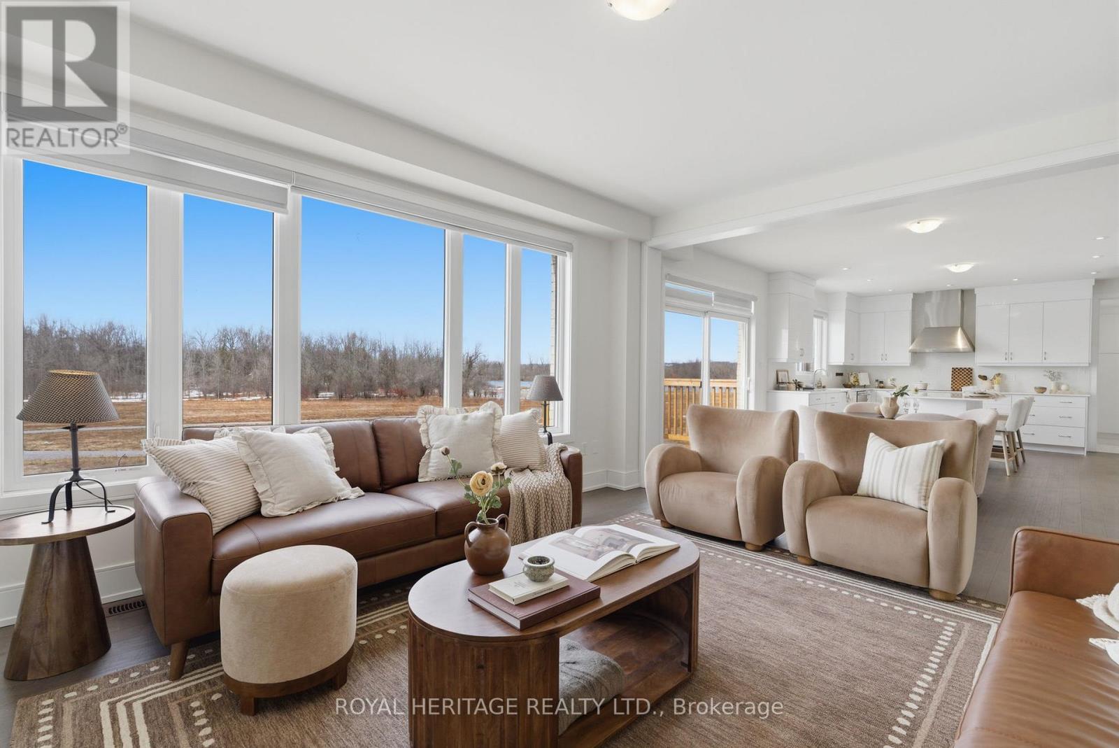 A rare riverfront lifestyle opportunity in Peterborough. Set along the scenic Otonabee River and surrounded by walking trails, 36 Golden Meadows Drive is an exceptional estate home offering refined design, thoughtful architecture, and over $200,000 in luxury upgrades. An impressive faade and triple-car garage set the tone, while inside 10-ft ceilings, engineered hardwood floors, and expansive windows create a bright and sophisticated atmosphere. The main level features a private office, formal living and dining spaces, and a spectacular open-concept layout designed for entertaining. The chef-inspired kitchen is appointed with top-of-the-line Thermador appliances, including an integrated refrigerator and professional-grade oven with convection and air fryer capabilities. A large centre island anchors the space, while the adjoining breakfast area walks out to a deck overlooking the river and trails. The family room offers a warm gathering space with a sleek wall-mounted electric fireplace and large picture windows with remote-controlled zebra blinds. The upper level is thoughtfully designed with two separate wings for privacy and flexibility. One wing features four spacious bedrooms, including the luxurious primary suite with double-door entry and a spa-inspired 5-piece ensuite with soaker tub, glass shower, and double vanity. The separate loft retreat above the garage, with its own entrance, hardwood floors, bright windows, and a 5-piece bathroom, offers incredible versatility. Ideal as a games room, family lounge, guest suite, or potential in-law space, this private wing adds a unique and highly desirable living option. Combining elegance, space, and breathtaking natural surroundings, 36 Golden Meadows Drive is a rare opportunity to own a luxury riverfront home in Peterborough. (id:64974)