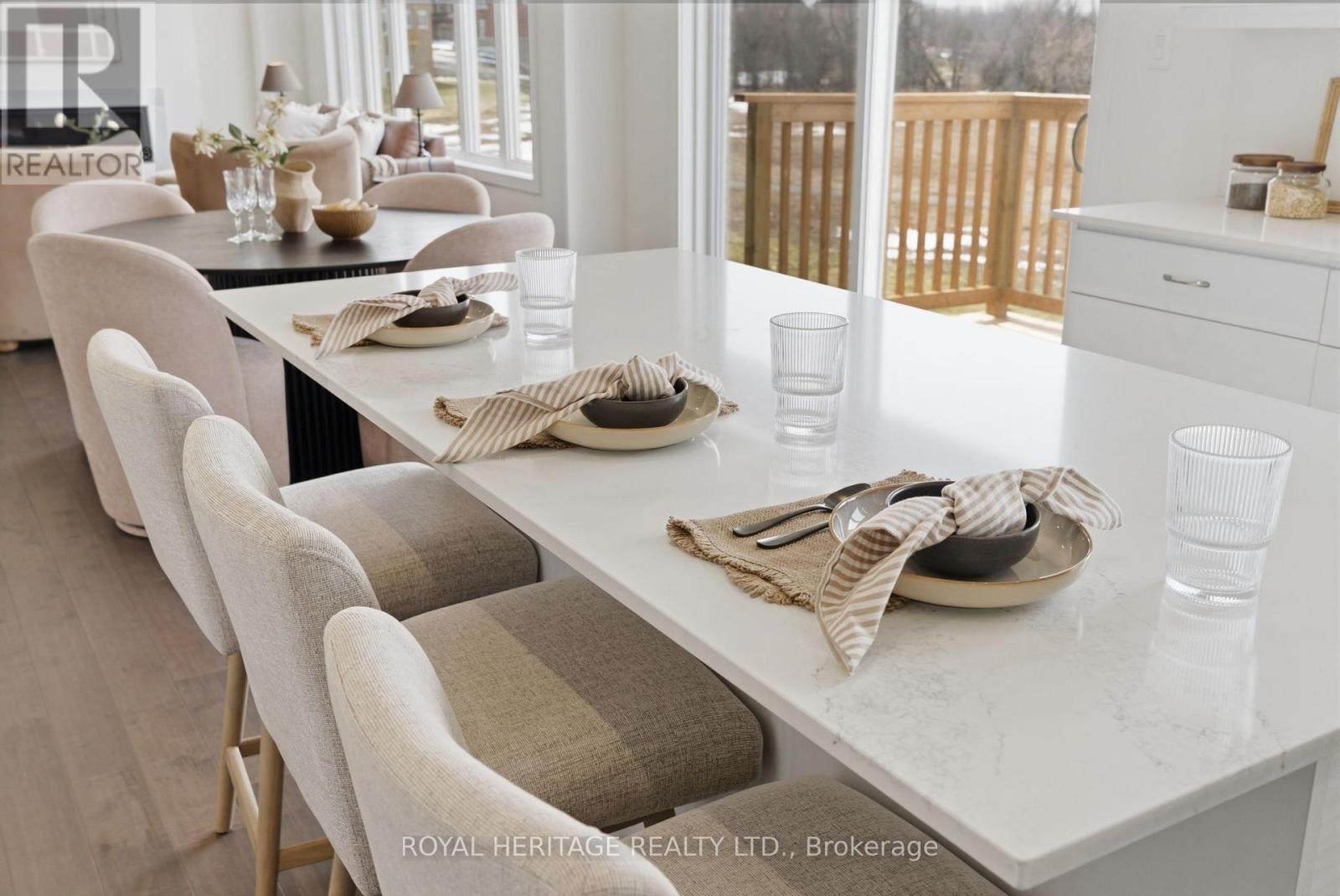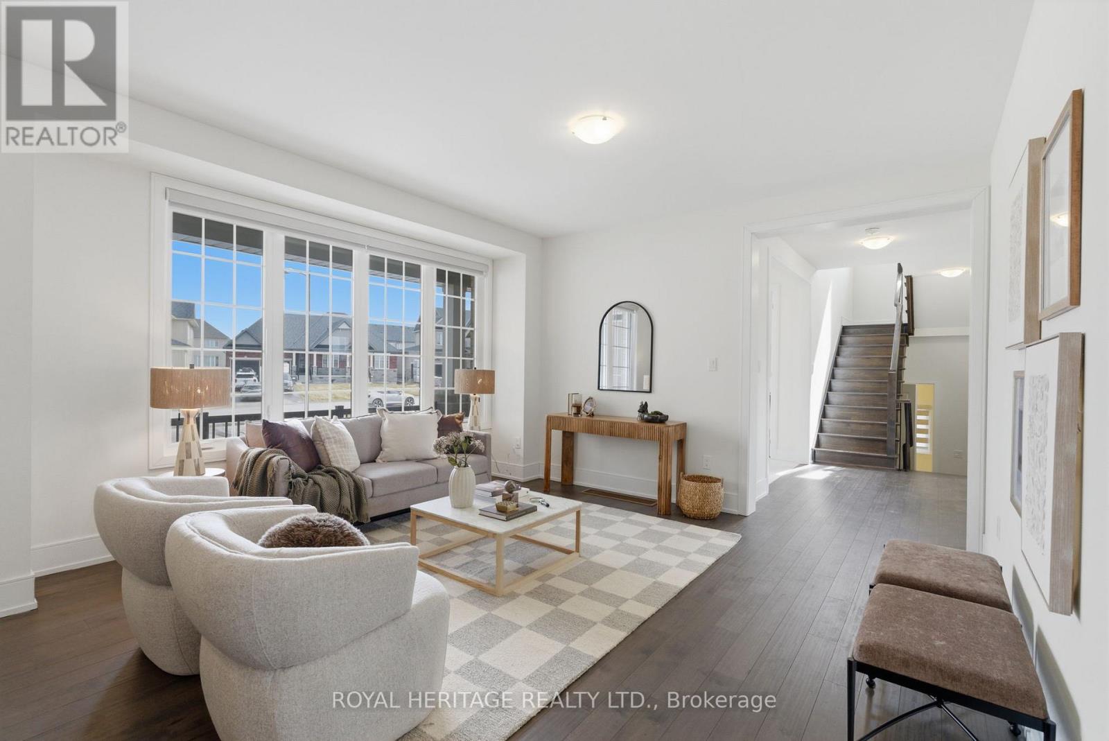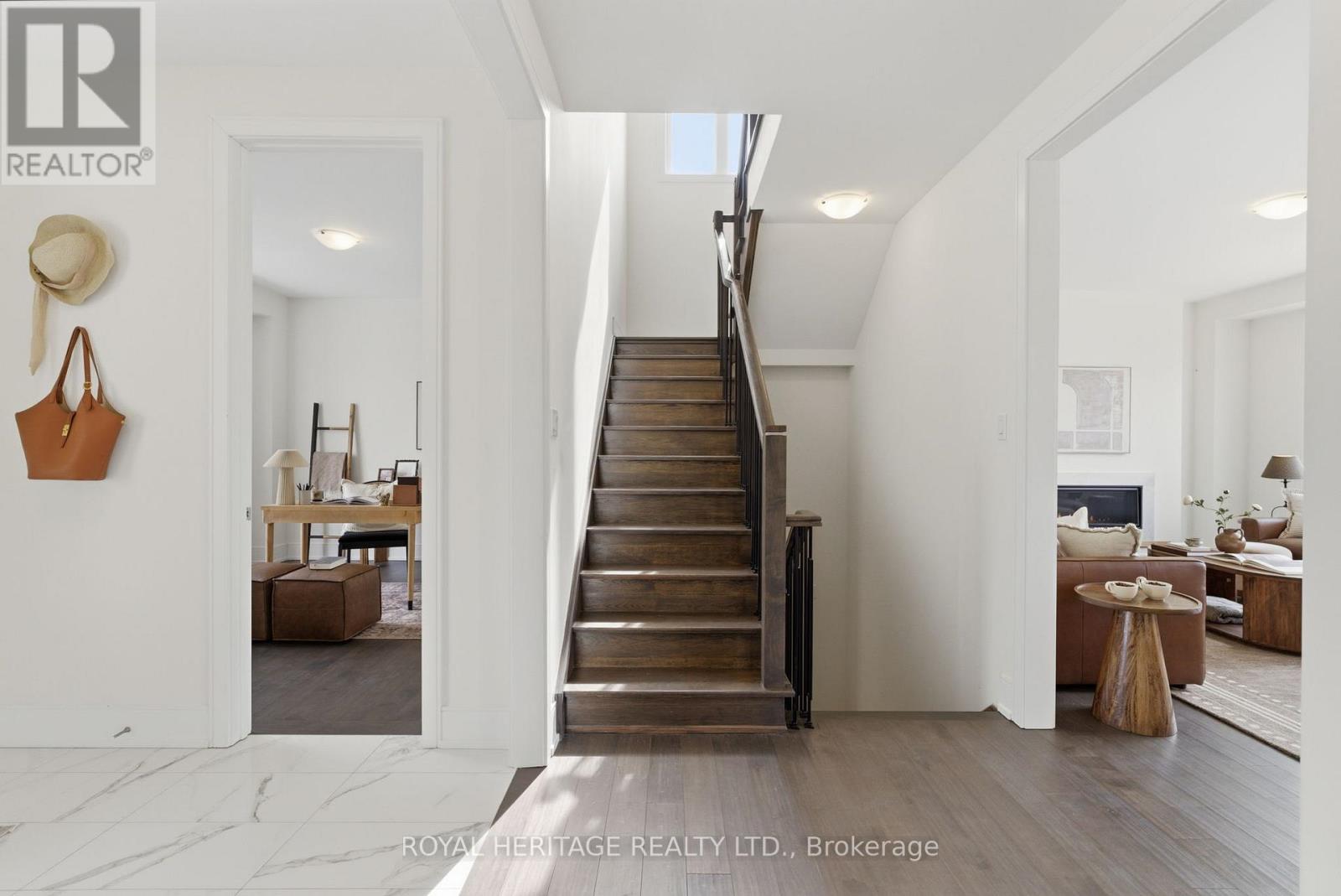 A rare riverfront lifestyle opportunity in Peterborough. Set along the scenic Otonabee River and surrounded by walking trails, 36 Golden Meadows Drive is an exceptional estate home offering refined design, thoughtful architecture, and over $200,000 in luxury upgrades. An impressive faade and triple-car garage set the tone, while inside 10-ft ceilings, engineered hardwood floors, and expansive windows create a bright and sophisticated atmosphere. The main level features a private office, formal living and dining spaces, and a spectacular open-concept layout designed for entertaining. The chef-inspired kitchen is appointed with top-of-the-line Thermador appliances, including an integrated refrigerator and professional-grade oven with convection and air fryer capabilities. A large centre island anchors the space, while the adjoining breakfast area walks out to a deck overlooking the river and trails. The family room offers a warm gathering space with a sleek wall-mounted electric fireplace and large picture windows with remote-controlled zebra blinds. The upper level is thoughtfully designed with two separate wings for privacy and flexibility. One wing features four spacious bedrooms, including the luxurious primary suite with double-door entry and a spa-inspired 5-piece ensuite with soaker tub, glass shower, and double vanity. The separate loft retreat above the garage, with its own entrance, hardwood floors, bright windows, and a 5-piece bathroom, offers incredible versatility. Ideal as a games room, family lounge, guest suite, or potential in-law space, this private wing adds a unique and highly desirable living option. Combining elegance, space, and breathtaking natural surroundings, 36 Golden Meadows Drive is a rare opportunity to own a luxury riverfront home in Peterborough. (id:64974)