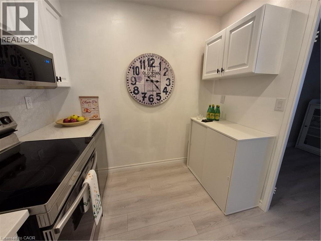 Welcome to a well-maintained renovated two level condo with 3-bedrooms, 1.5 bath in the north end of Brantford. This condo offers approximately 1199 sq.ft. of living space. Renovated in 2024/2025 including new electrian panel/wiring, high quality 12mm laminate flooring throughout, numerous pot lights, high baseboards, quality appliances, new toilets & vanities. The main level features a sun filled living room with pot lights & walk-out to balcony, inviting dining room, an updated white kitchen with stainless steel appliances, pot lights, upgraded sink & faucet & a main floor bedroom that can be used as den/office & reno'd 2pc bath & closet. The reno'd upper level comes complete with two spacious bedrooms, the four piece bath, 2nd balcony & the in-suite laundry for added convenience. The large master bedroom has wall to wall windows, walk in closet & walk-in storage room. Condo fees include heat, hydro, water, building insurance, exterior maintenance, landscaping, recycling & 2 parking spaces - 1 underground & 1 above ground. Building amenities include an exercise room, party room, library/extra laundry area. Just minutes to Highway 403 & numerous shopping centres, restaurants, schools, public transit & walk to Gretzky Community Sports Centre. (id:64974)