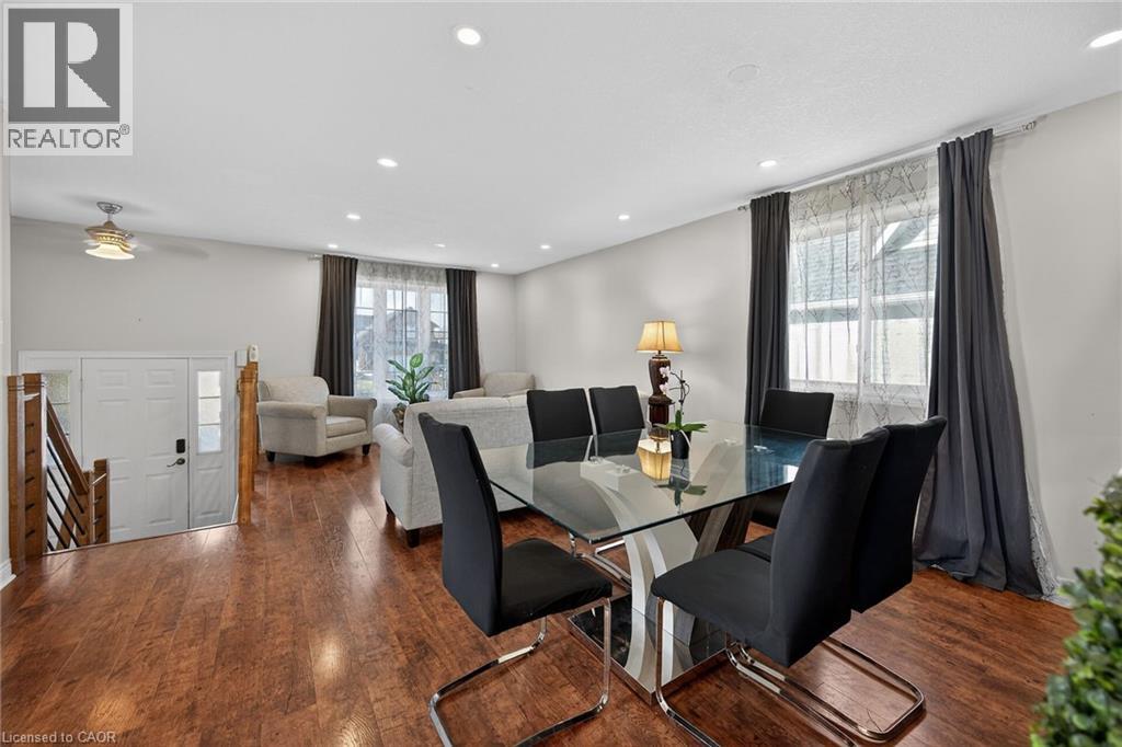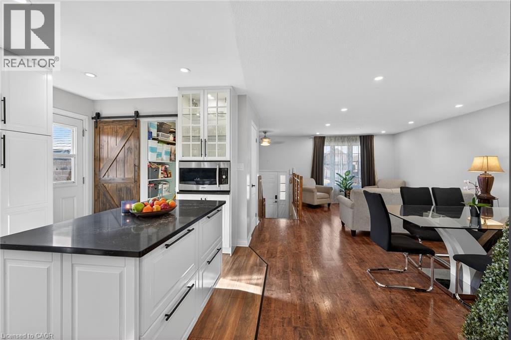 Welcome to 36 Longview — a beautifully updated raised ranch tucked away on a quiet cul-de-sac, ideal for families and multi-generational living. Thoughtfully upgraded throughout, this home showcases a fully renovated main kitchen (2021) with modern appliances, cabinetry, countertops, and flooring, opening into a bright, open-concept living space. The main level offers three generously sized bedrooms, a full bathroom with ensuite privilege, a newly added powder room, and a well-designed layout that balances comfort and functionality. The fully finished lower level adds exceptional versatility, complete with a second kitchen, two additional bedrooms, a spacious family room, full bathroom, and a laundry room with walk-up access to the garage. With potential for a separate entrance, this space is ideal for an in-law suite or extended family living. Recent updates include new basement flooring, a custom closet in the downstairs bedroom, and the addition of a powder room. Additional upgrades (2021) include pot lights throughout the interior and exterior, a stylish accent wall with fireplace and lighting, new railing, foyer, and a gazebo — perfect for enhancing both comfort and entertaining. The home is also equipped with seven exterior security cameras for added peace of mind. Roof replaced in 2019. Step outside to a multi-level deck and patio with a gas line for your BBQ — an ideal setting for hosting family and friends. With parking for up to seven vehicles and located in the growing community of Mount Hope, close to schools, parks, trails, and with easy access to major routes and highways, this home offers the perfect balance of suburban living and city convenience. A move-in ready home with extensive upgrades — don’t miss this opportunity. (id:64974)