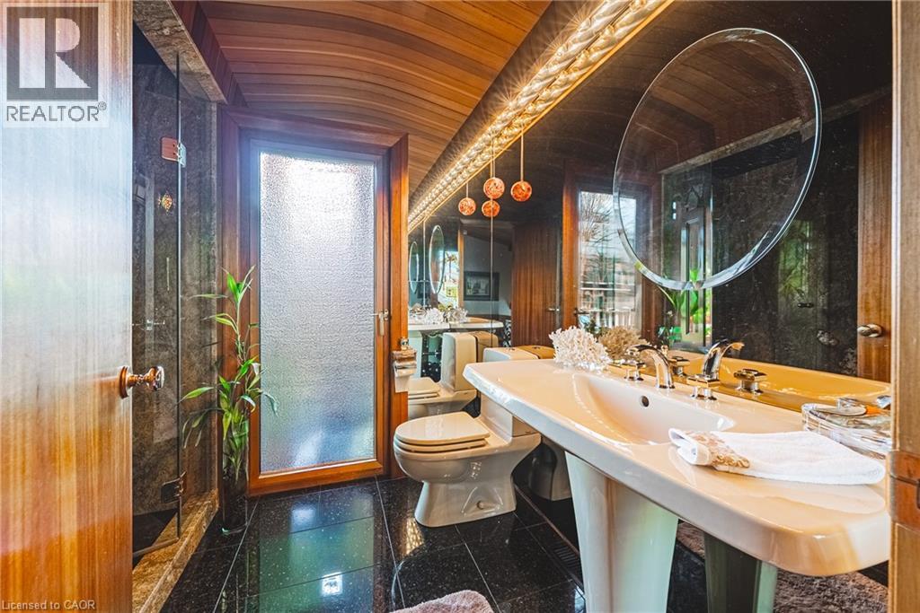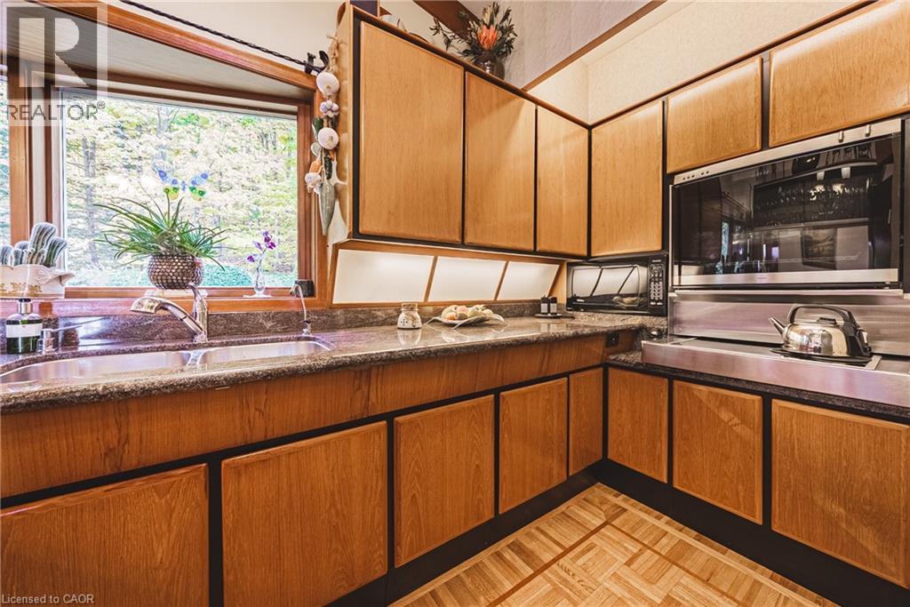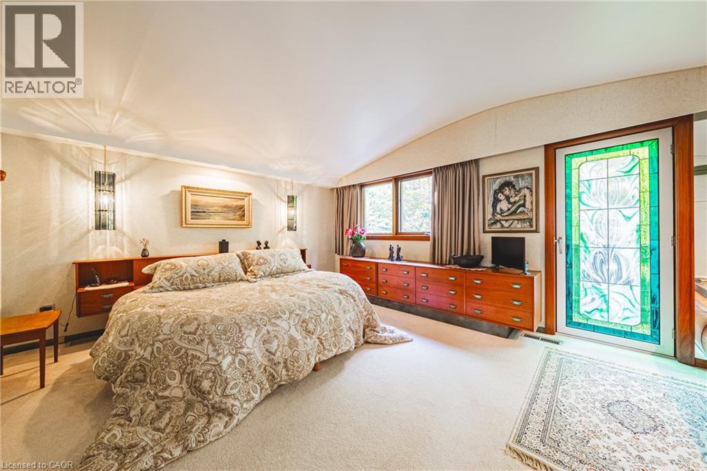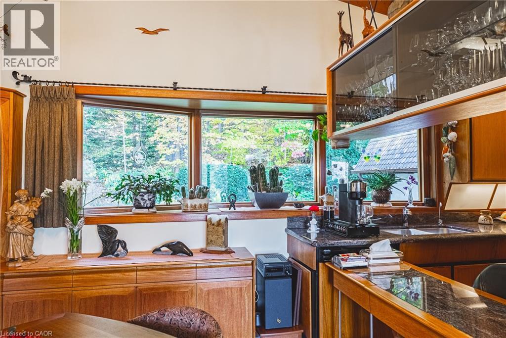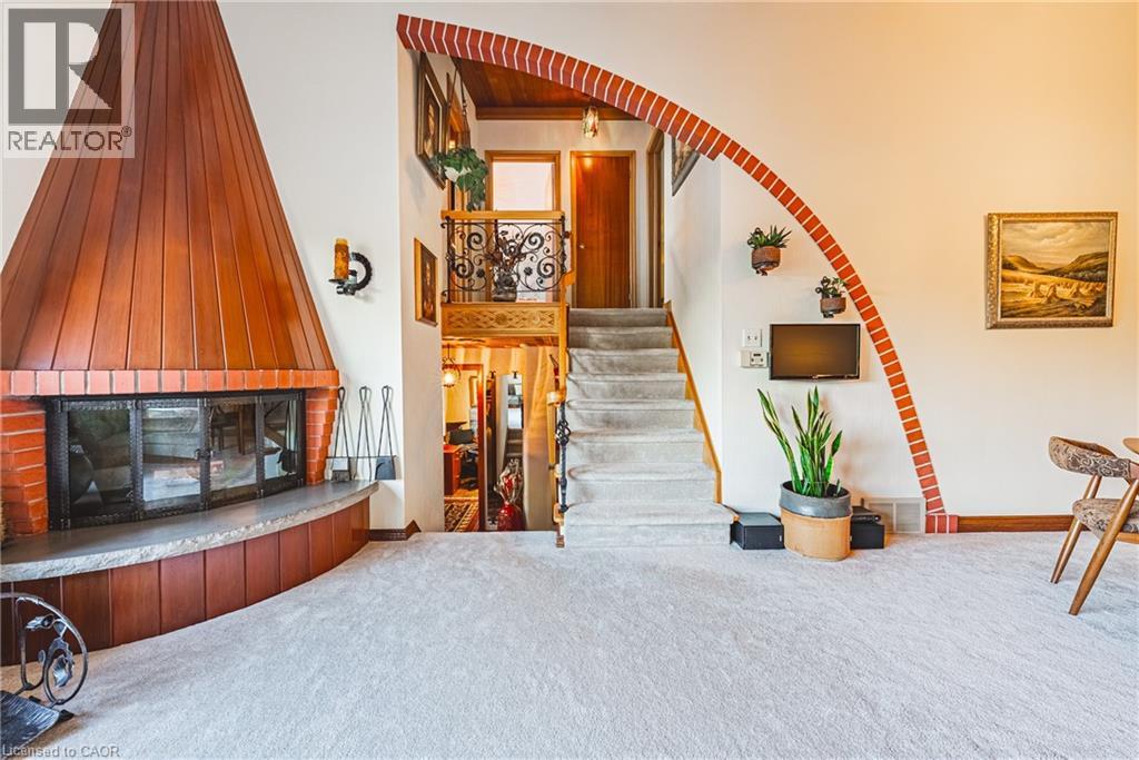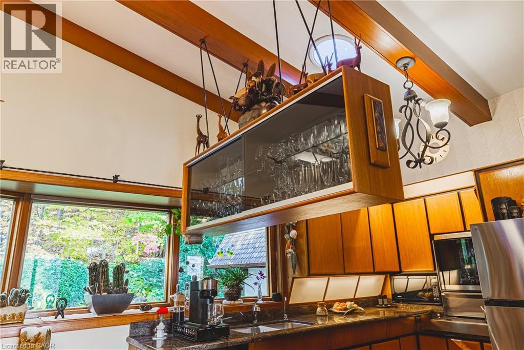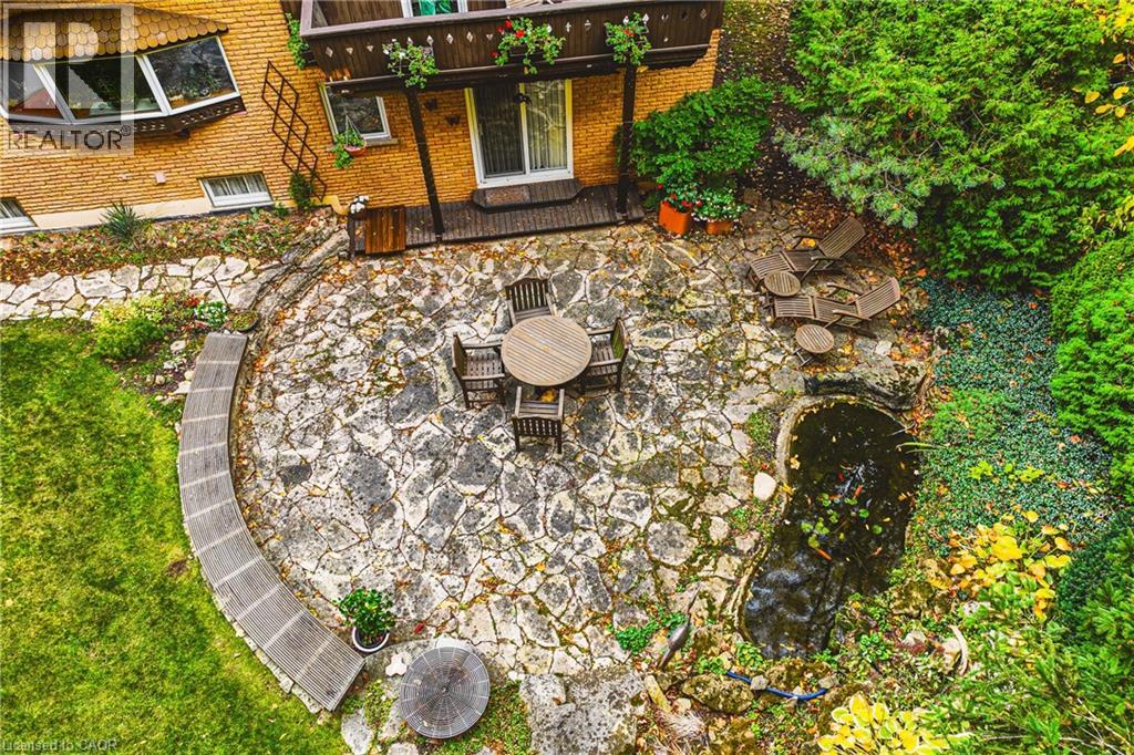 A true artists home rich in craftsmanship, history and heart. Perfectly positioned along the Niagara Escarpment with direct access to the Bruce Trail, this custom built home, one owner sprawling side split is a rare find. Set on a 70 ft x 244 lot, it has been celebrated with 24 Trillium Awards & 6 Prestigious Pink Awards for its exceptional landscaping & design, a testament to the pride of ownership found throughout. Enjoy unobstructed views of Lake Ontario & the Toronto skyline framed by mature trees & vibrant perennials, featuring a pond filled with golden orfes, goldfish, and blooming water lilies. Across the street a community park with playground & basketball court adds to the settings appeal, while GO Transit & QEW access are just minutes away, offering easy connectivity to surrounding communities. Inside, artistry meets function with thoughtful touches & custom details. The gourmet teak kitchen boasts granite counters & built in Miele & Gaggenau appliances, perfect for those who value fine craftsmanship. Warm living spaces with a fireplace, intricate carved woodwork & timeless architectural detail, creating a home as comfortable as it is inspiring. Recent updates include a tarmac roof (2017), air conditioning (2023), furnace (2011), washer and dryer (2023). With parking for nine & a full workshop with hot & cold running water, this extraordinary home blends artistry, nature & convenience in perfect harmony. (id:64974)