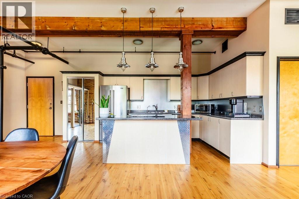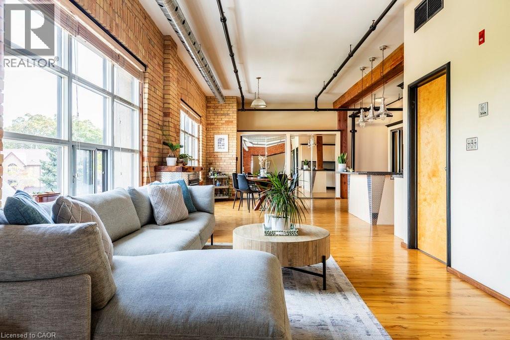 Welcome to the coveted Margaret Street Lofts where you will find the perfect blend of heritage, style, and convenience-this is loft living at its finest. The building itself is apiece of Hamilton history-the city's very first loft conversion by the renowned Valvasori Brothers, once home to a bustling shirt factory. Inside, this rare New York-style loft boasts soaring ceilings, exposed brick walls, oversized windows that flood the space with natural light (north-west exposure), and original hardwood floors. The wide-open floorplan gives you freedom to design your space your way-chic gallery-like setup, cozy modern living, or an entertainer's dream. This top-floor unit includes in-suite laundry, a glass fireplace, beautiful views, plus one owned parking space, storage locker, & access to a serene, shared courtyard. Tucked in the heart of Strathcona, you are a block from Victoria Park, with its lush green space, basketball and tennis courts, outdoor pool, & vibrant neighbourhood vibe. Head south & stroll to Locke Street's eclectic shops and trendy restaurants. Find your everyday conveniences along Dundurn or take advantage of the loft's unbeatable proximity to major highways. This boutique building blend surburban sophistication with community charm. RSA. (id:64974)