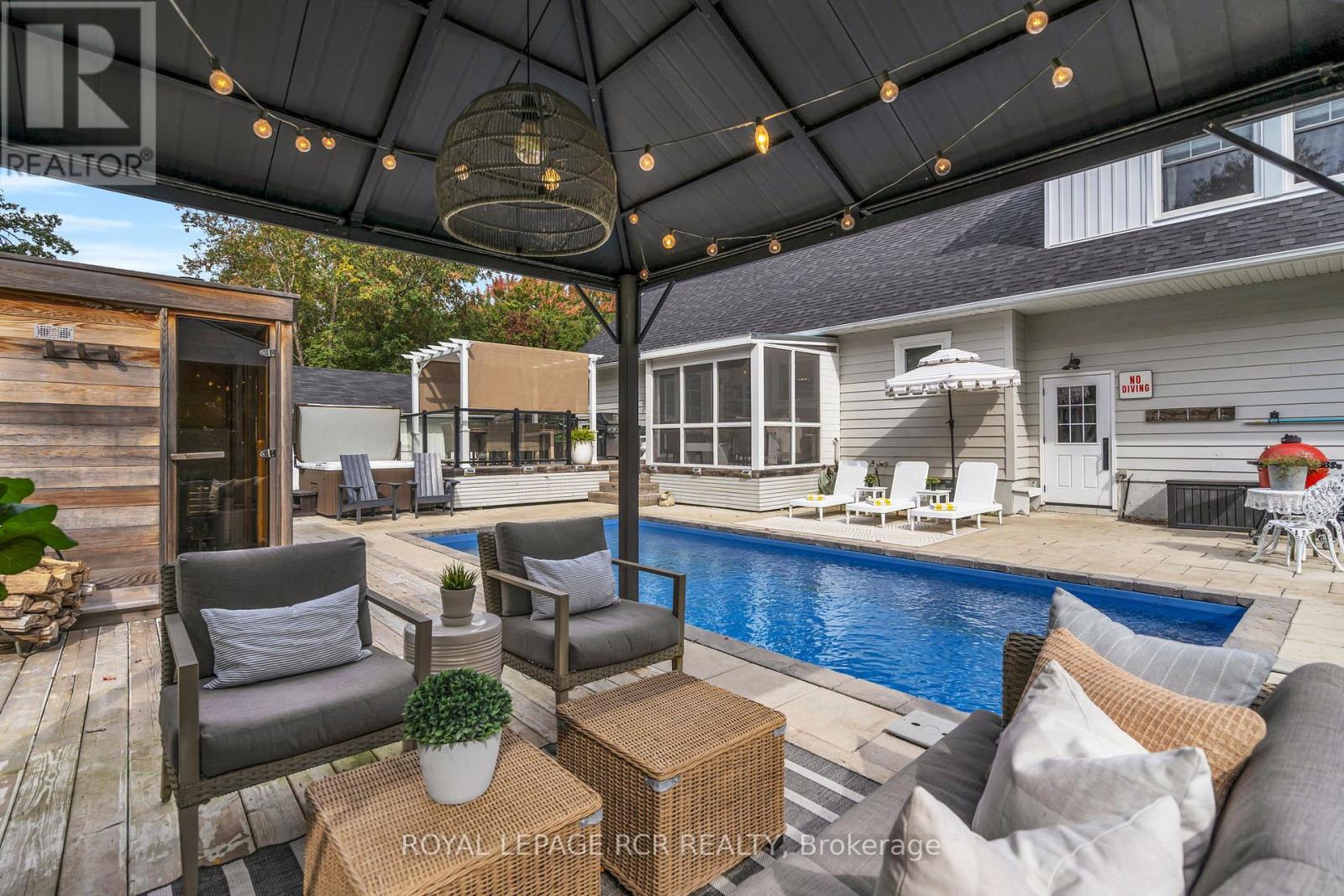 Welcome to a private resort-inspired retreat offering over 3,700 sqft of finished living space, where you can enjoy life inside and out. The gourmet chef's kitchen features quartz counters, gas range, SS appliances, Kohler Artifacts faucet & pot filler, premium Richelieu hardware, & thoughtful upgrades throughout incl. custom millwork, designer lighting, Smart Home features, & energy-efficient enhancements. 2 primary suites, includes one on the main level for effortless bungalow-style living. The stunning upper-level retreat showcases a floor-to-ceiling Napolean fireplace, blackout blinds and drapery, and a Carrie Bradshaw-inspired dressing room with extensive custom built-ins. All 4 washrooms are all designed for luxurious and simplistic comfort. Main-floor laundry with powder room & direct access to the fully insulated attached heated garage with year-round hot & cold water, separate 100 amp panel, & EV charger add everyday convenience. The lower level includes gorgeous living/working areas, a safe room with steel door, air exchanger, and sump pump with backup battery (good to have, but never needed). Step outside to a true resort-style backyard with over $250K in upgrades. Features are an in-ground saltwater pool, hot tub, Scandinavian-style sauna, Muskoka room, outdoor fireplace lounge, & dedicated dining area. All surrounded by mature trees that back on to a peaceful & quiet golf course, & is just steps from Lake Simcoe. Additional highlights include a 15x17ft heated flex/bonus space, full & complete Smart irrigation system that uses well water, raised garden beds, luxury heated chicken coop, 2 new 8x10 sheds, privacy fencing, & newer roof. Covered front porch with smart fans face your quiet street that is a peaceful place to start or end your day. From spa-inspired outdoor living to thoughtfully designed interiors, this is a home where every detail has been curated for comfort, connection, & unforgettable everyday living. Perfect for your next chapter. (id:64974)