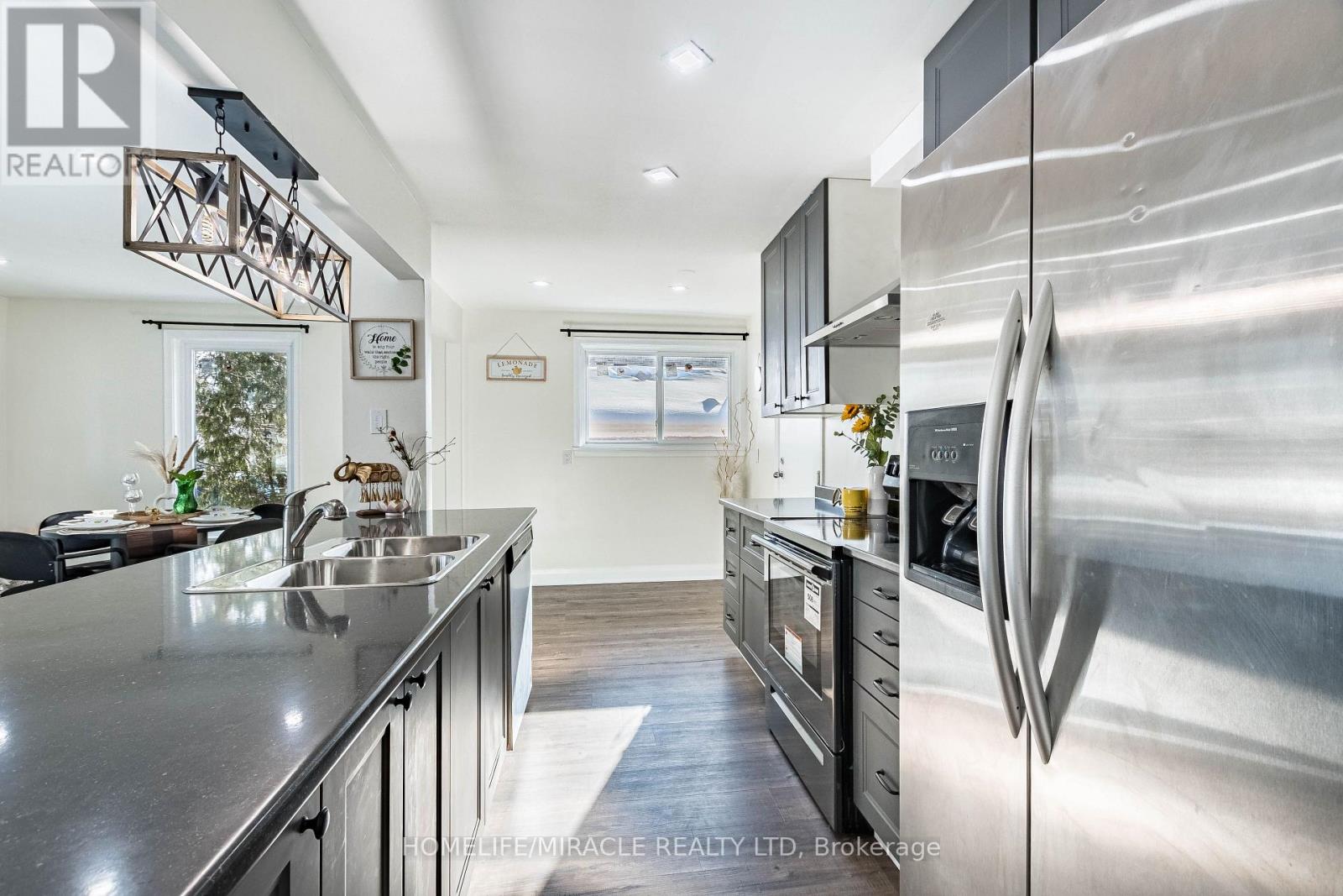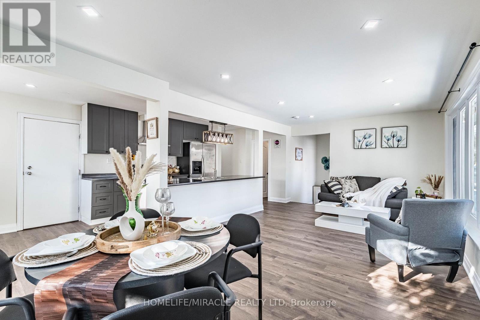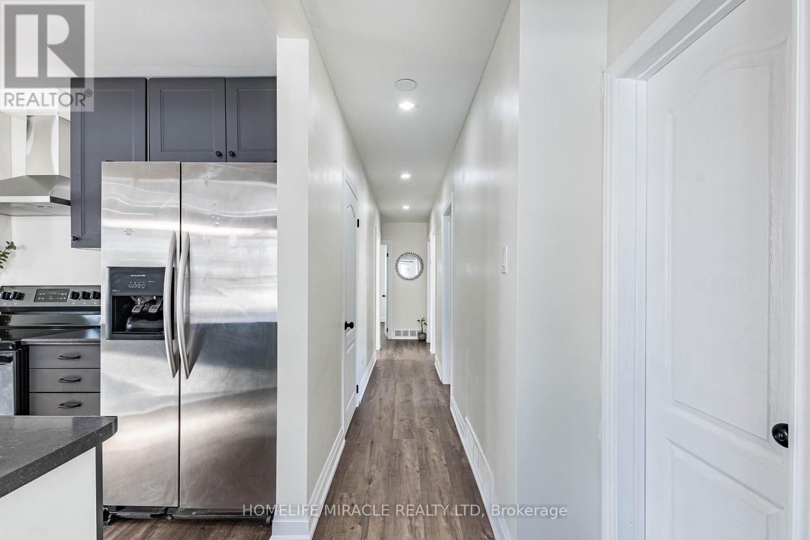 Welcome to 36 McLaughlin Road N, a well-maintained one-storey detached raised bungalow on a huge pie-shaped lot, offering exceptional potential for homeowners, investors, and developers alike. This solid 4+3 bedroom, 2+2 bathroom home features a bright, functional layout with a separate entrance to the lower level, making it ideal for rental income or an in-law suite. The basement boasts extra-high ceilings, adding flexibility and long-term value. The property also presents an excellent opportunity for infill redevelopment or long-term investment (buyer to verify). Numerous major upgrades provide peace of mind, including roof (2015), kitchen cabinets (2022), one upper bathroom and two basement bathrooms (2022), kitchen countertops (2026), windows (2026), fresh paint (2026), garage door (2026), and vinyl flooring throughout (2026).Additional highlights include a tenanted basement generating potential income, ample parking, and approximately 14 feet of side yard space, offering the possibility for additional parking or a workshop. Ideally located just minutes from Brampton GO Station, downtown Brampton, shopping plazas, transit, schools, parks, and major commuter routes, and situated directly on a major bus route, this home delivers outstanding convenience and long-term value. Whether you're looking for a solid family home, strong income potential, or a future development opportunity, this is a rare find with massive upside. Investor's dream-don't miss it! (id:64974)