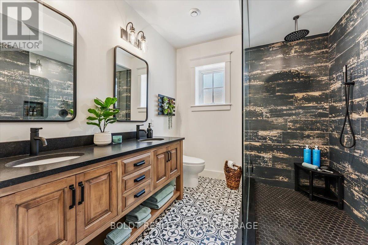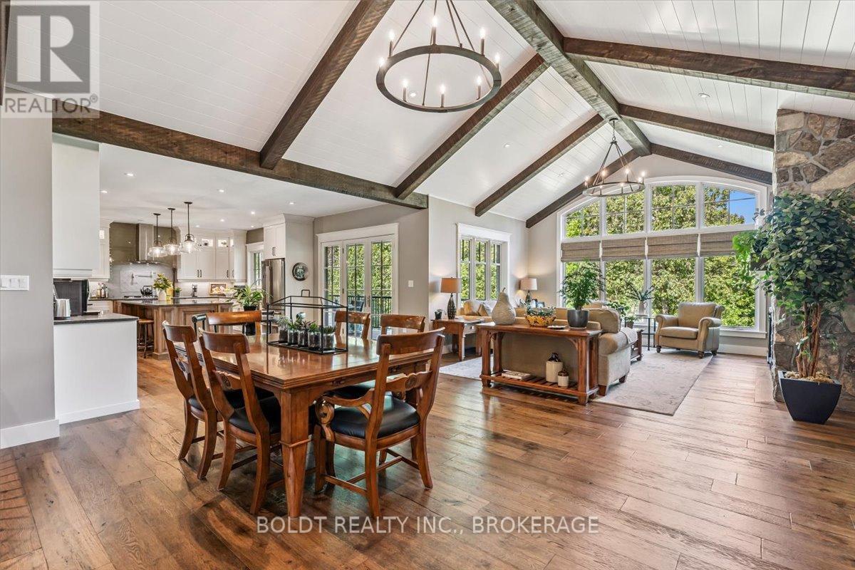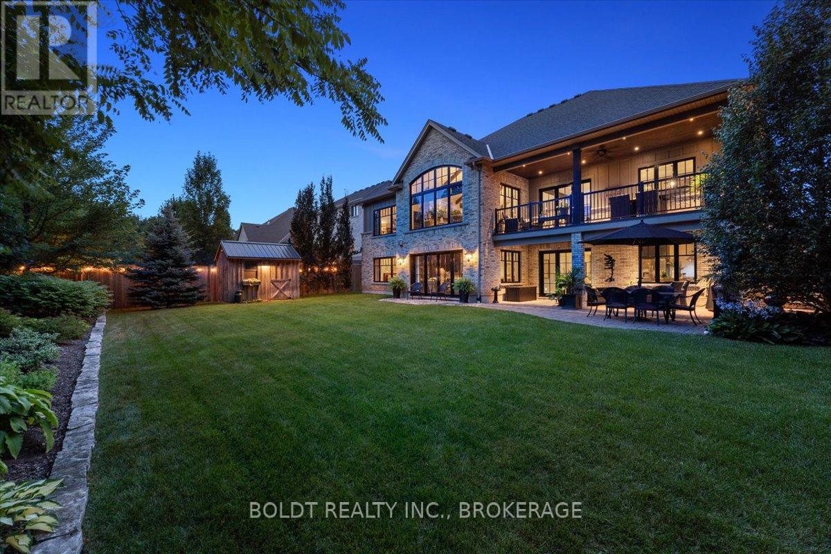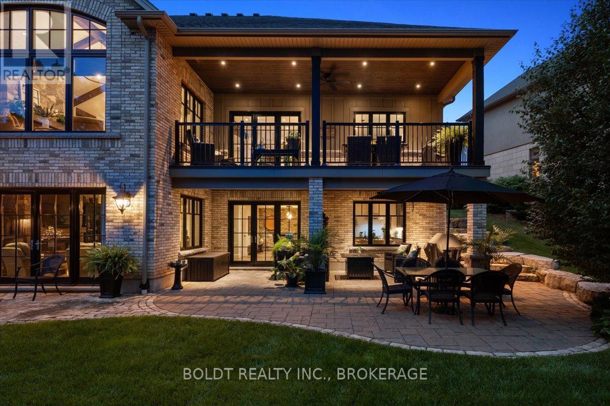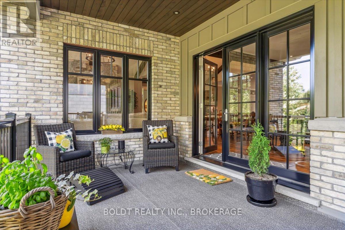 Custom Bungalow in Prestigious Lookout Point.This exceptional home is nestled in one of Fonthill's most desirable neighbourhoods, is truly a masterpiece of thoughtful design and timeless elegance featured in Our Homes Magazine. Lovingly created by the owners and brought to life by Nauta Home Designs, every detail has been carefully curated for luxury, comfort, and functionality. Step into the great room and be immediately captivated by the vaulted shiplap and beamed ceiling, stunning stone gas fireplace, and a wall of windows framing breathtaking views of mature coniferous and deciduous trees changing beautifully with every season.The gourmet kitchen is the heart of the home, featuring a grand island, spacious dining area, and seamless access to a covered porch perfect for entertaining. A walk-in pantry and generous cabinetry provide ample storage while maintaining a clean, upscale look. The primary suite is a peaceful sanctuary with a fireplace, walk-in and double closets, and a spa- like ensuite complete with a large glass shower and luxurious soaker tub, overlooking serene backyard views. The front room, currently used as a parlour, easily converts to a main-floor bedroom with its double closet, and full bathroom just steps away. The spacious main-floor laundry adds everyday ease. As you descend to the fully finished lower level, you're greeted by soaring 9' ceilings and another beautifully appointed great room with stone fireplace and ceiling beams that mirror the upper levels elegance. This level also boasts a full second custom kitchen crafted by the same cabinetmaker, along with a charming dining area framed by a custom brick and stone accent wall evoking the feel of a rustic Italian villa. Garden doors open to a covered porch and large patio area, complete with a gas BBQ line an entertainers dream. Two generous bedrooms and a stylish full bathroom with a double vanity and spacious glass shower complete this level, making it ideal for extended family, guests. (id:64974)