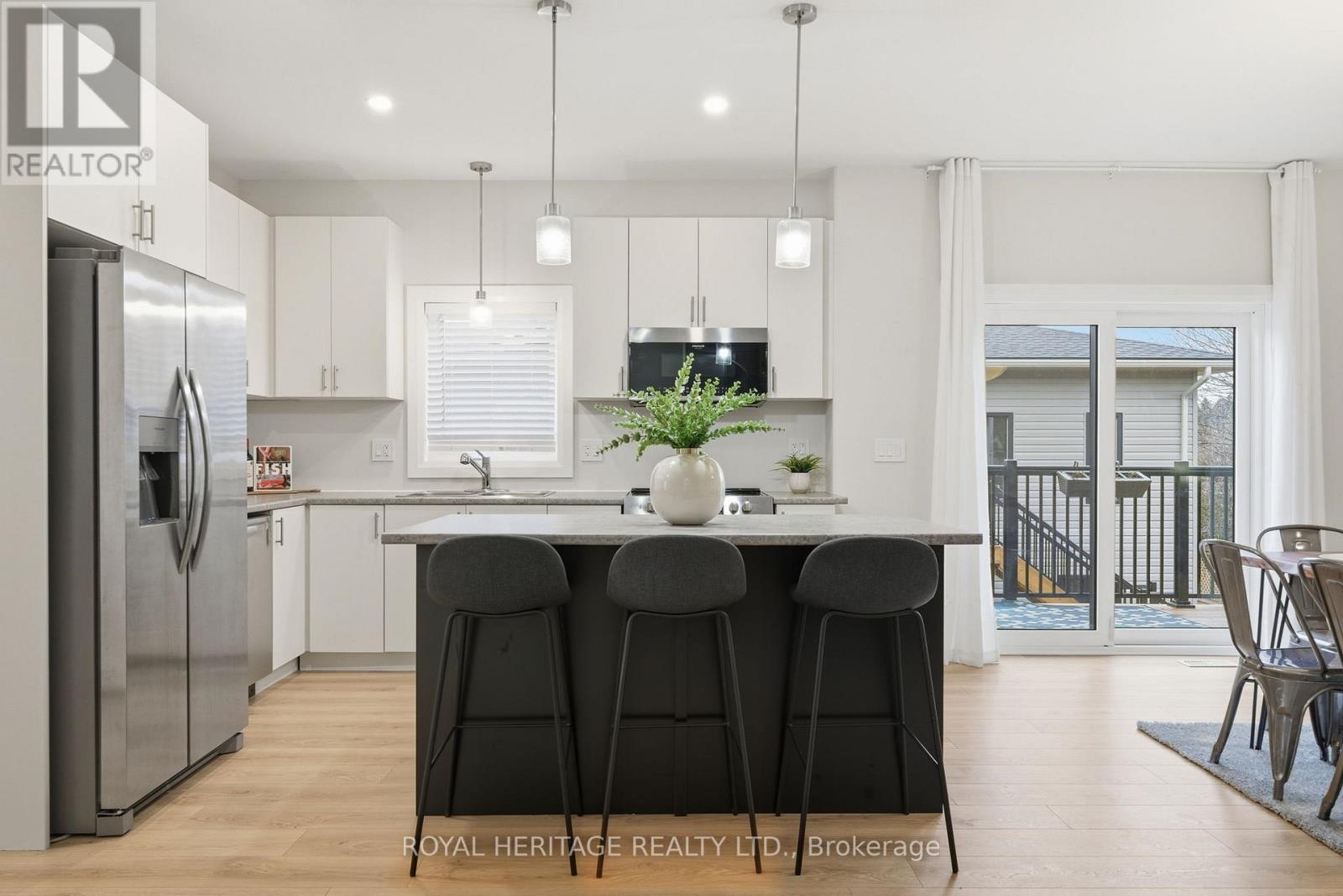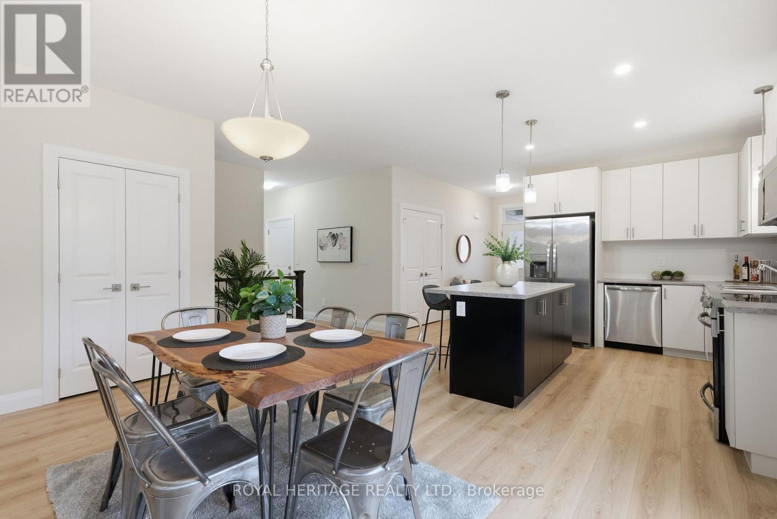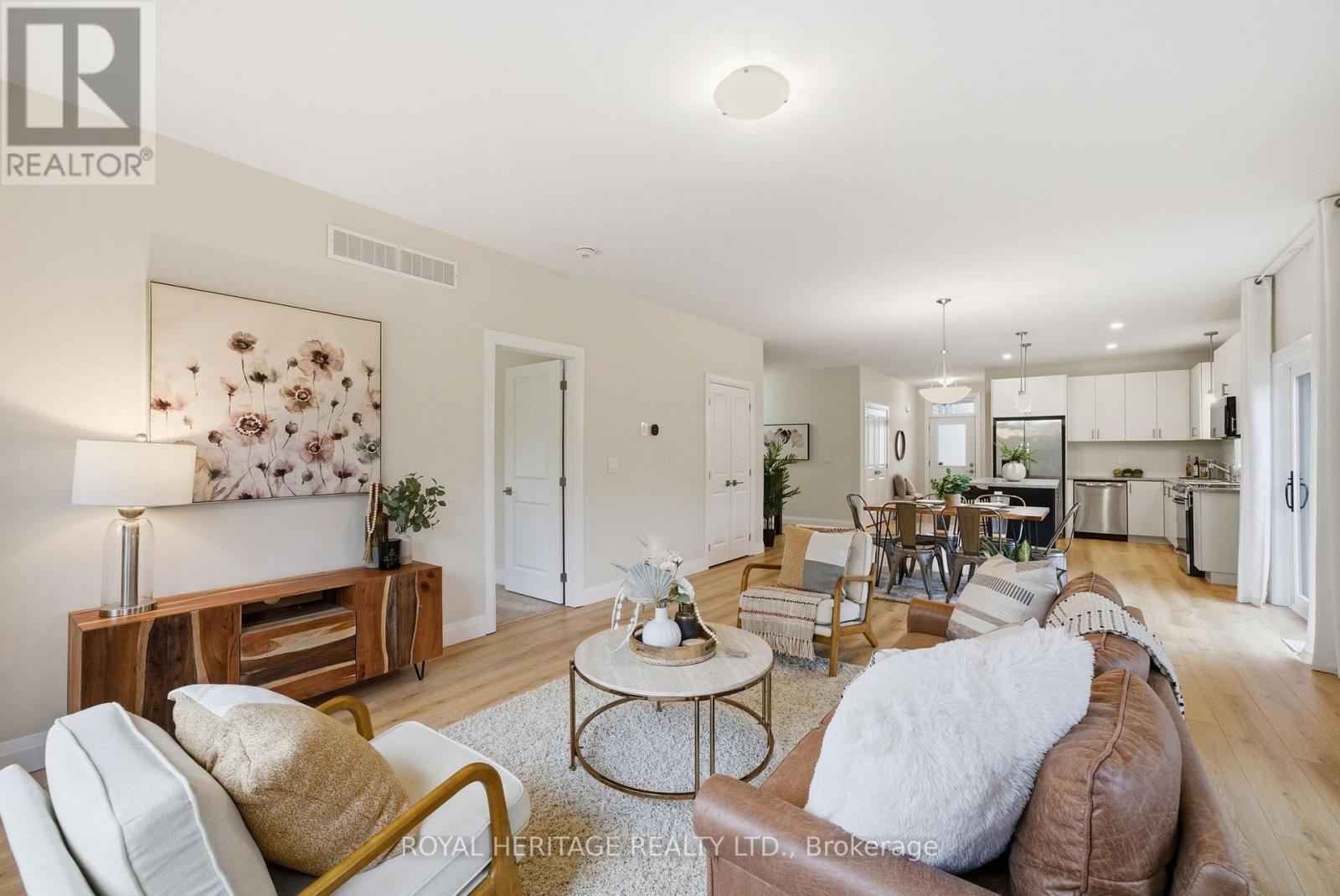 Beautifully upgraded end-unit freehold townhome in the sought-after Foxtrail Ridge subdivision. With the feel of a semi-detached home and a lot size comparable to some detached properties, this 2023-built home offers modern convenience, style, and flexibility in a charming small-town setting. The bright open-concept main floor is flooded with natural light and features 9-foot ceilings, an upgraded kitchen, garage access from the house, two bedrooms, including a spacious primary suite with walk-in closet and private ensuite, plus an additional 2-piece bathroom for guests. Step out from the kitchen and dining area onto the deck with built-in BBQ and enjoy the fully fenced yard. The basement offers a separate entrance to a 1-bedroom in-law suite complete with its own kitchenette, separate laundry, and private living space, making it ideal for extended family or multi-generational living. Each unit has its own laundry room for added convenience. Additional highlights include a 1.5-car garage and side-by-side parking for two vehicles in the driveway. Located in a fantastic area, you can walk to the quaint village downtown of Colborne, local schools, and Lake Ontario, while being just 3 minutes to Highway 401 for an easy commute. Covered under Tarion warranty, this is an exceptional opportunity to enjoy contemporary living in a desirable neighbourhood. Public Open House Sunday March 15th, 2 - 4 PM. (id:64974)