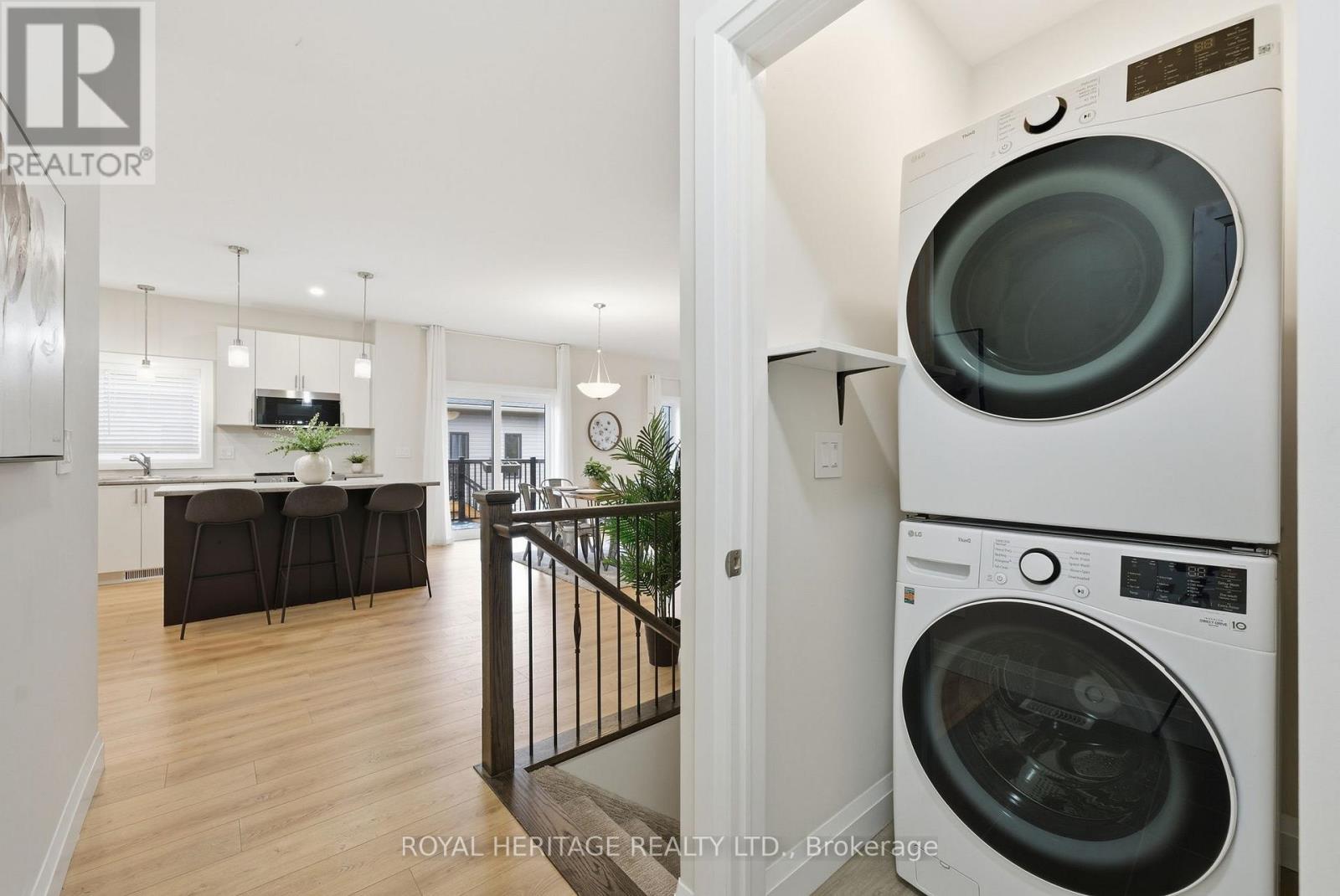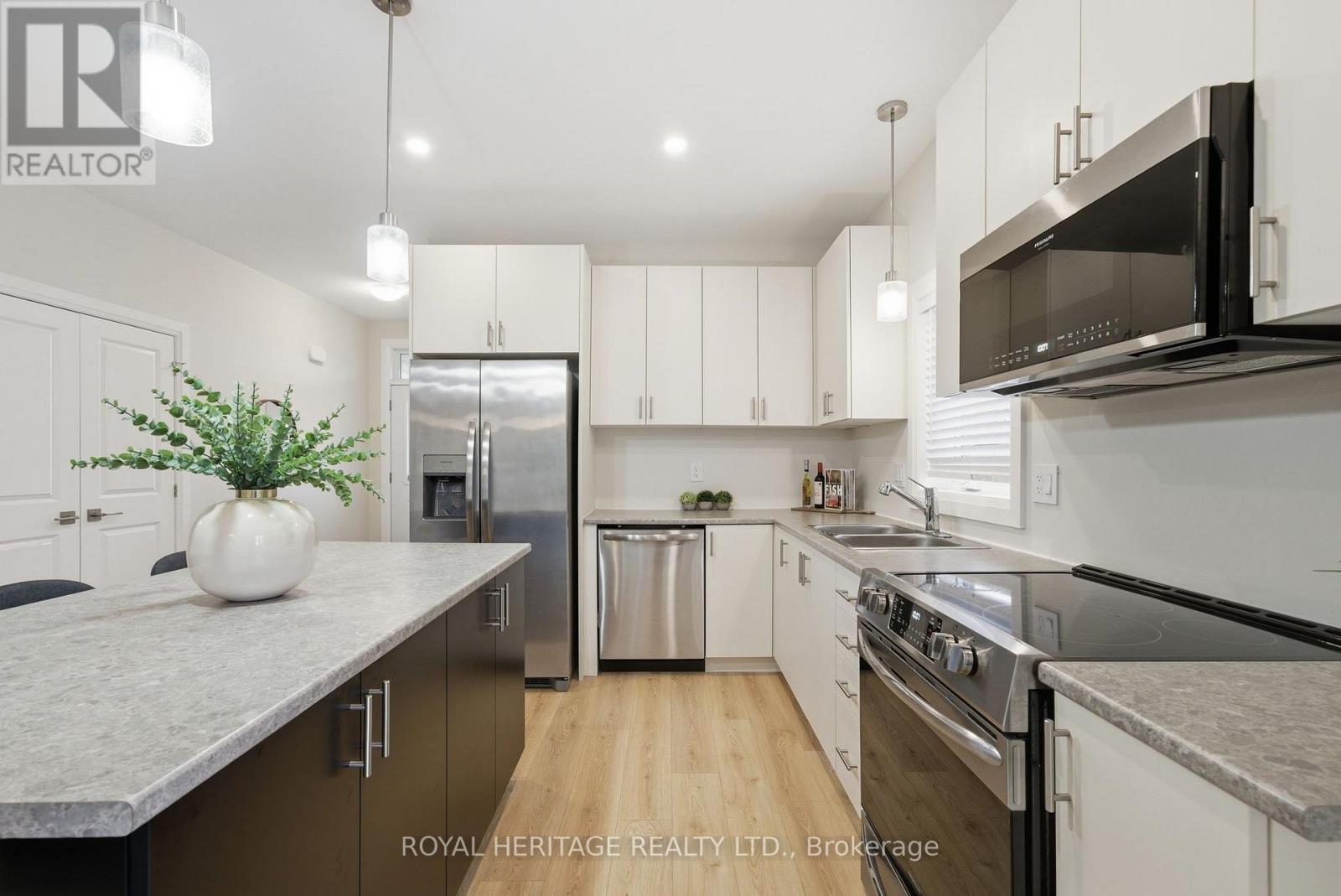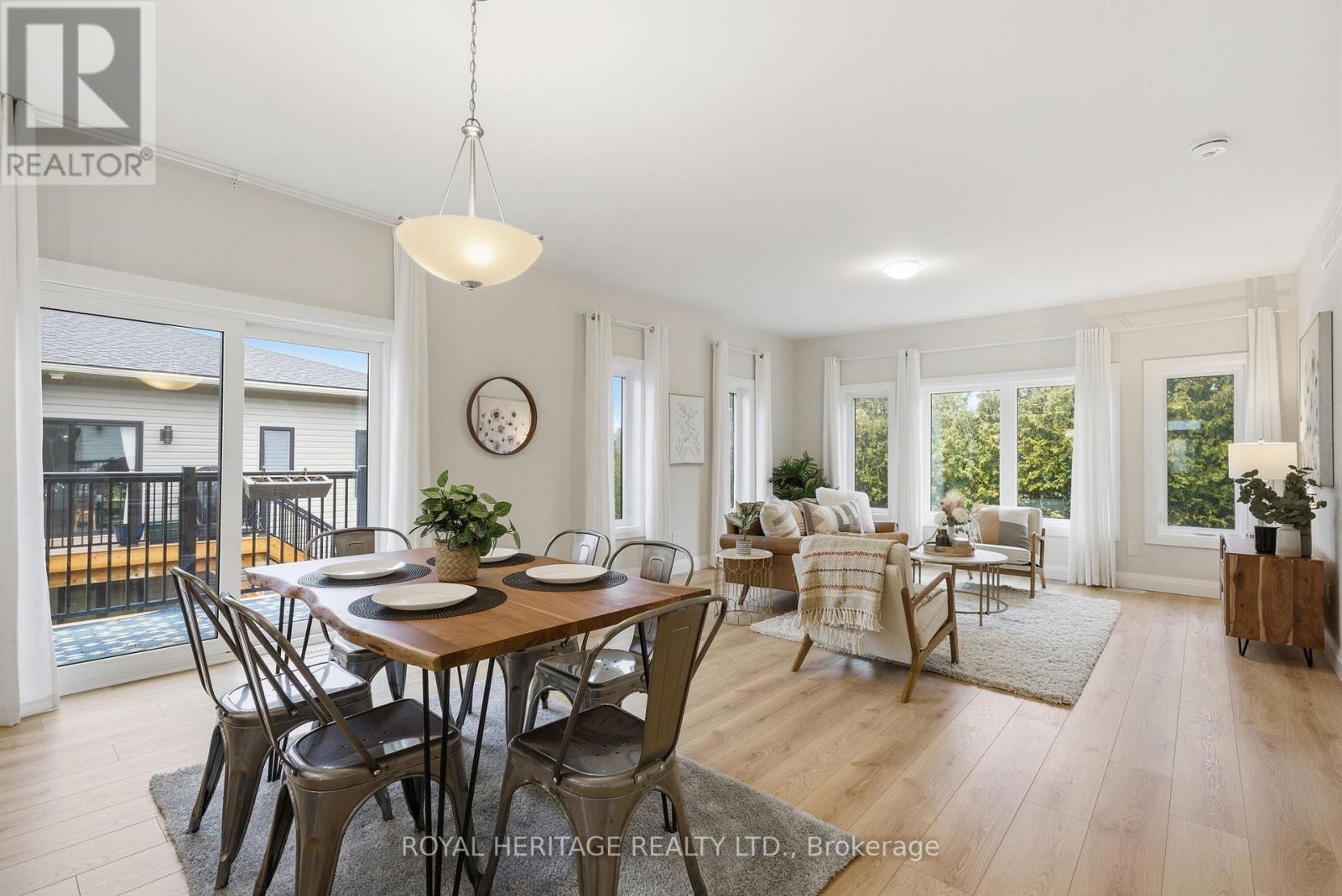 Beautifully upgraded end-unit freehold townhome in the sought-after Foxtrail Ridge subdivision. With the feel of a semi-detached home and a lot size comparable to some detached properties, this 2023-built home offers modern convenience, style, and flexibility in a charming small-town setting. The bright open-concept main floor is flooded with natural light and features 9-foot ceilings, an upgraded kitchen, garage access from the house, two bedrooms, including a spacious primary suite with walk-in closet and private ensuite, plus an additional 2-piece bathroom for guests. Step out from the kitchen and dining area onto the deck with built-in BBQ and enjoy the fully fenced yard. The basement offers a separate entrance to a 1-bedroom in-law suite complete with its own kitchenette, separate laundry, and private living space, making it ideal for extended family or multi-generational living. Each unit has its own laundry room for added convenience. Additional highlights include a 1.5-car garage and side-by-side parking for two vehicles in the driveway. Located in a fantastic area, you can walk to the quaint village downtown of Colborne, local schools, and Lake Ontario, while being just 3 minutes to Highway 401 for an easy commute. Covered under Tarion warranty, this is an exceptional opportunity to enjoy contemporary living in a desirable neighbourhood. Public Open House Sunday March 15th, 2 - 4 PM. (id:64974)