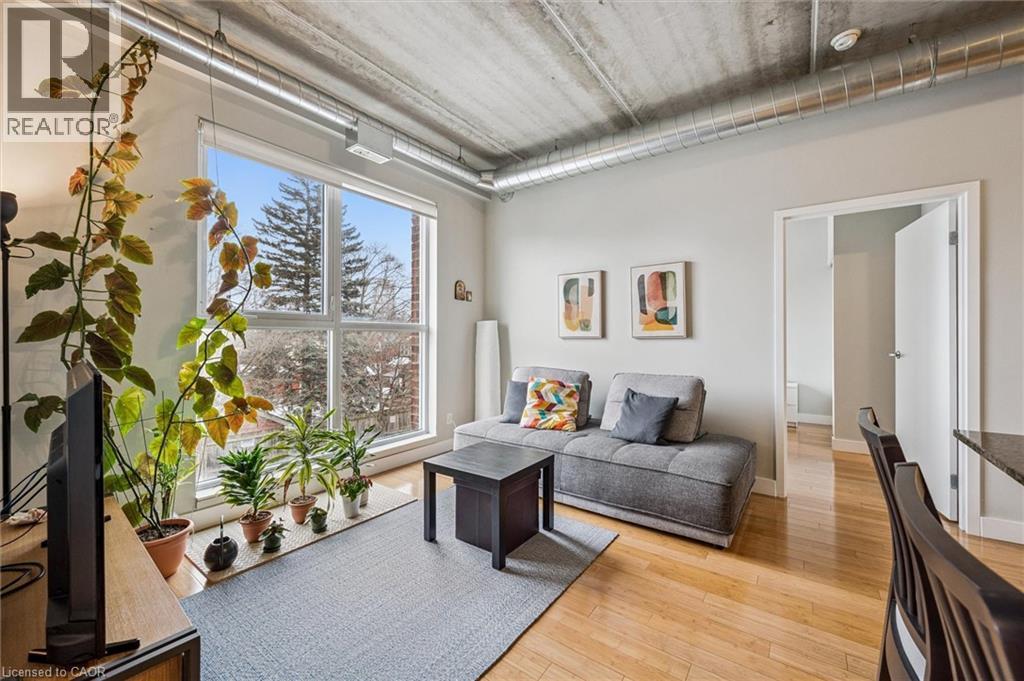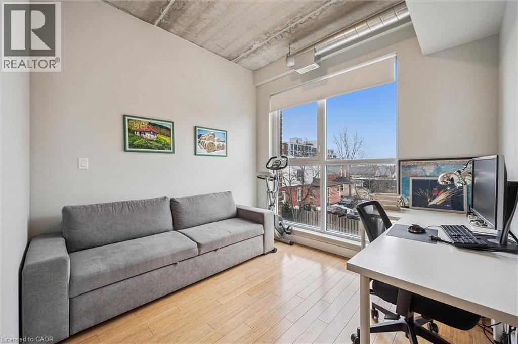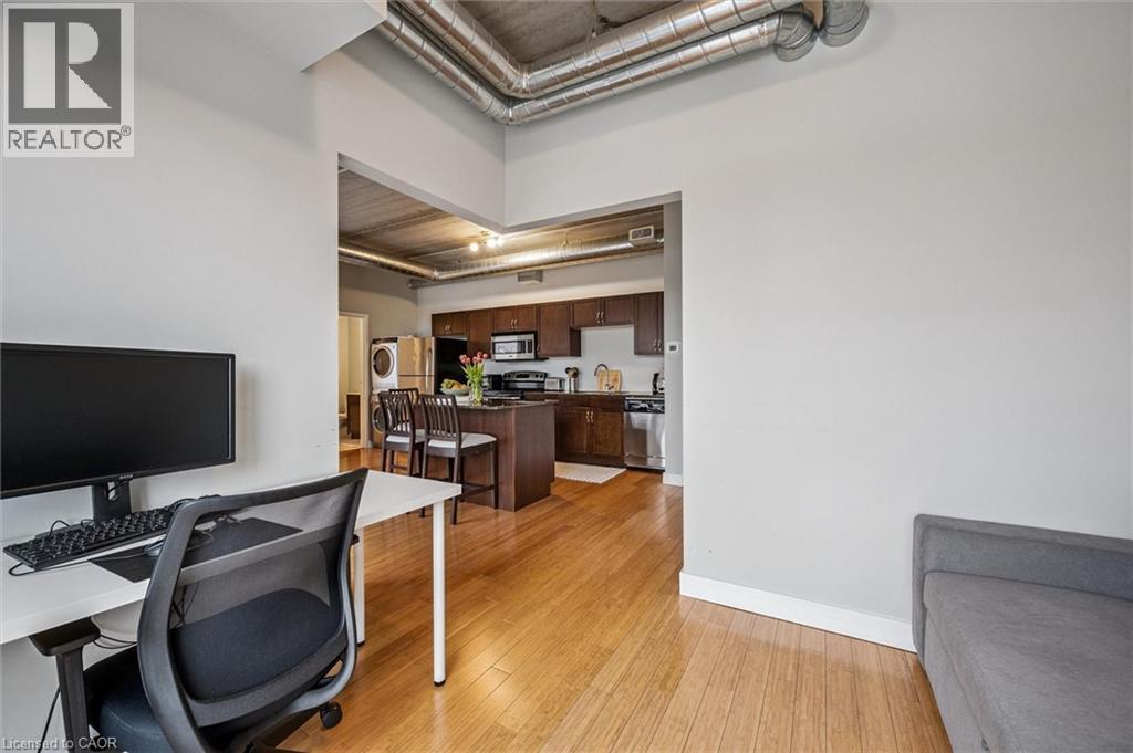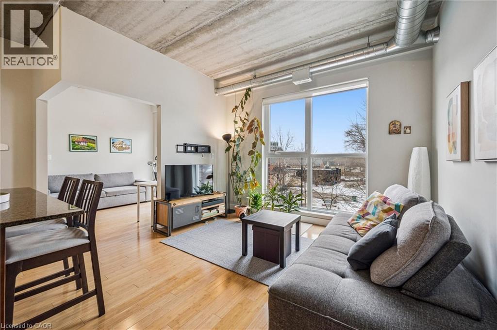 Available May 1st! Welcome to BPR Lofts in the heart of Uptown Waterloo. This bright and modern 1 bedroom + den condo offers 672 sq ft of well-designed living space with 10 ft ceilings and large windows that bring in plenty of natural light. The open concept kitchen and living area is ideal for entertaining, featuring granite countertops, a large island with breakfast bar, double sink with upgraded faucet, and stainless steel appliances including fridge, stove, cooktop, and dishwasher. Wood flooring runs throughout, and the versatile den can function as a home office or potential second bedroom. Enjoy the convenience of Uptown Waterloo living, just steps to restaurants, cafes, shopping, parks, and entertainment. The nearby ION LRT provides easy access throughout Waterloo and Kitchener, and both universities are within close proximity. Parking, heat and water included! Tenant just pays hydro and internet. (id:64974)