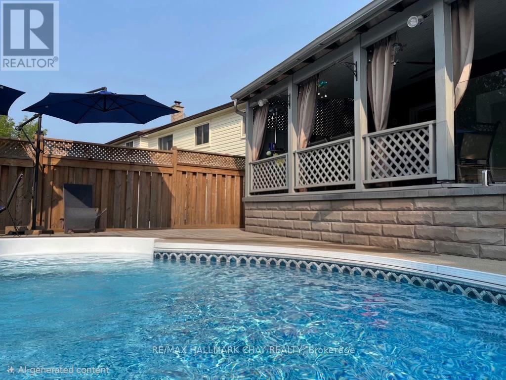 RESORT-STYLE LIVING in Barrie! This beautiful 3 bedroom, 2 full bathroom family home offers the perfect blend of comfort and outdoor luxury, featuring a private backyard oasis with a heated in-ground pool, uni-stone patio, gas bbq line, and a secluded covered deck-ideal for entertaining or relaxing all summer long. The home welcomes you with an enclosed front entry, interlock walkway, and a 4-car driveway (no sidewalk). Inside, the spacious living room is inviting with a stylish feature wall with built-ins, and a walkout to the backyard. The updated eat-in kitchen shines with quartz countertops, pot lights, and stainless steel appliances including a gas range. A formal dining room sets the stage for hosting holiday meals. Main floor laundry adds comfort and efficiency to daily living. Upstairs, you'll find three generously sized bedrooms and a well-appointed main bath, while the lower level offers a versatile family/rec room or potential office, gym, or guest space, along with an additional full bathroom. KEY UPDATES include the kitchen, shingles, pool heater, garage door, driveway, interlock walkways, retaining wall, glass panels, garden sheds, and some fencing and gates. Set on a quiet, tree-lined, family-friendly street, this home is within walking distance to the Allandale Recreation Centre, close to the GO Station, and just minutes from parks, shopping, commuter routes, and the vibrant waterfront-making it the perfect place to call home. Your staycation lifestyle starts here! (id:64974)
