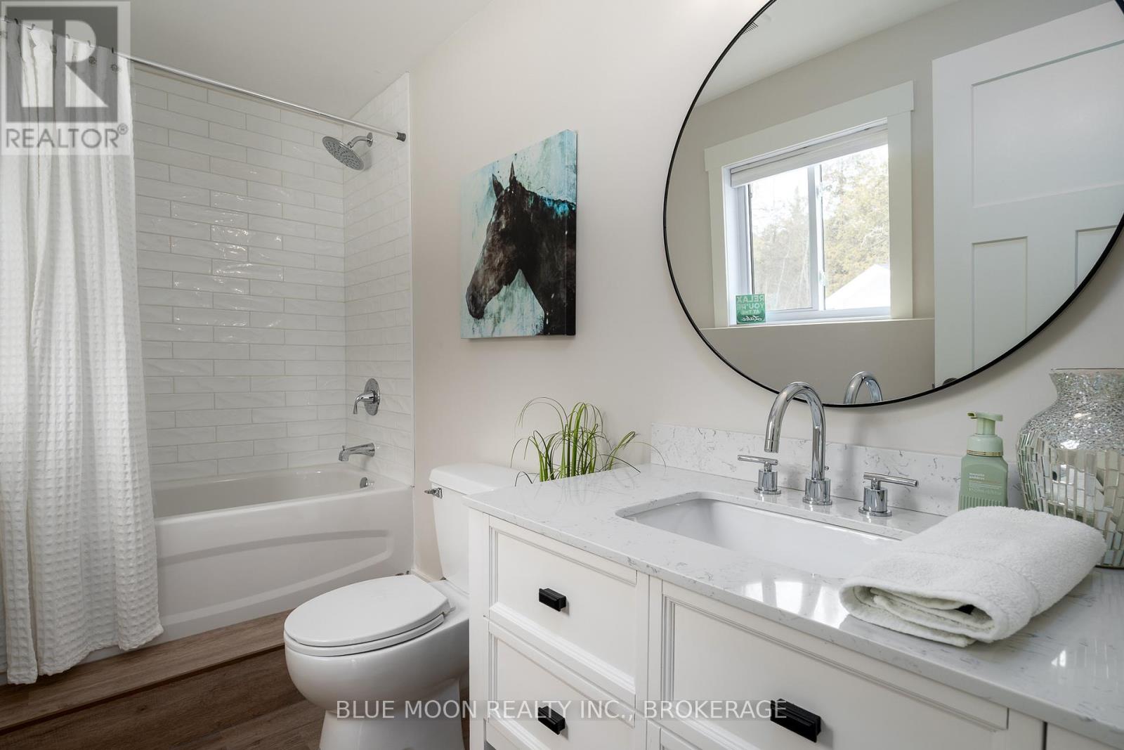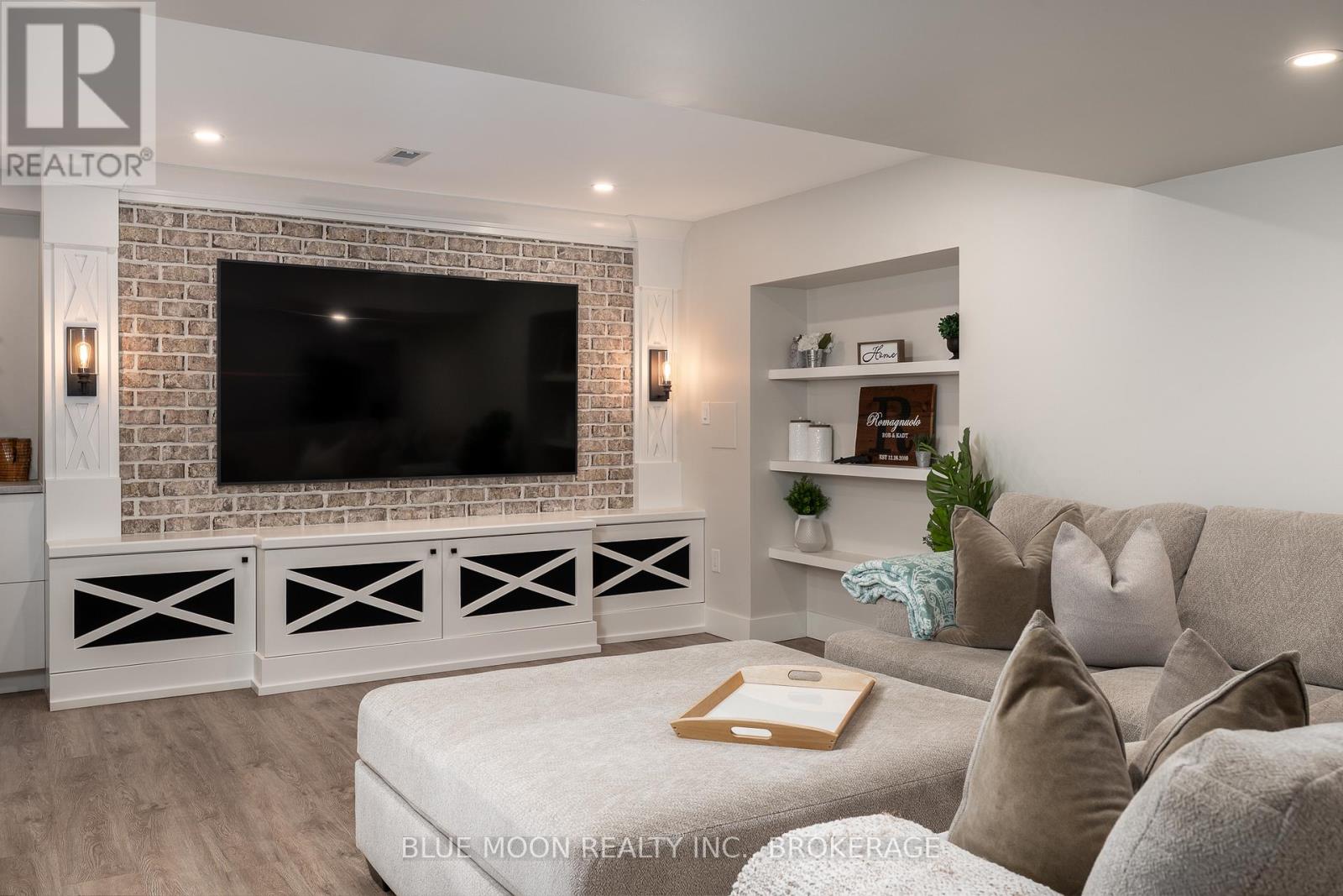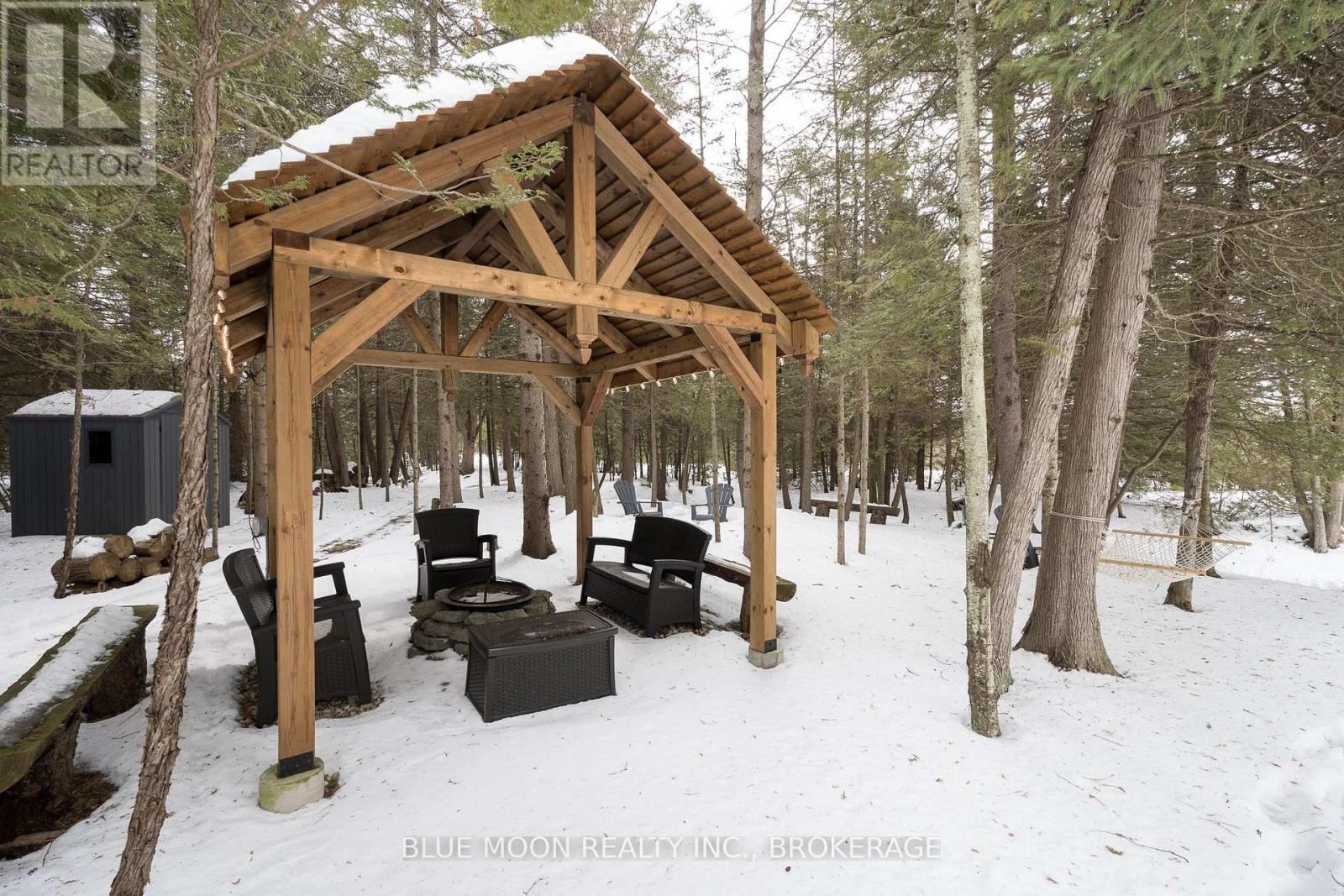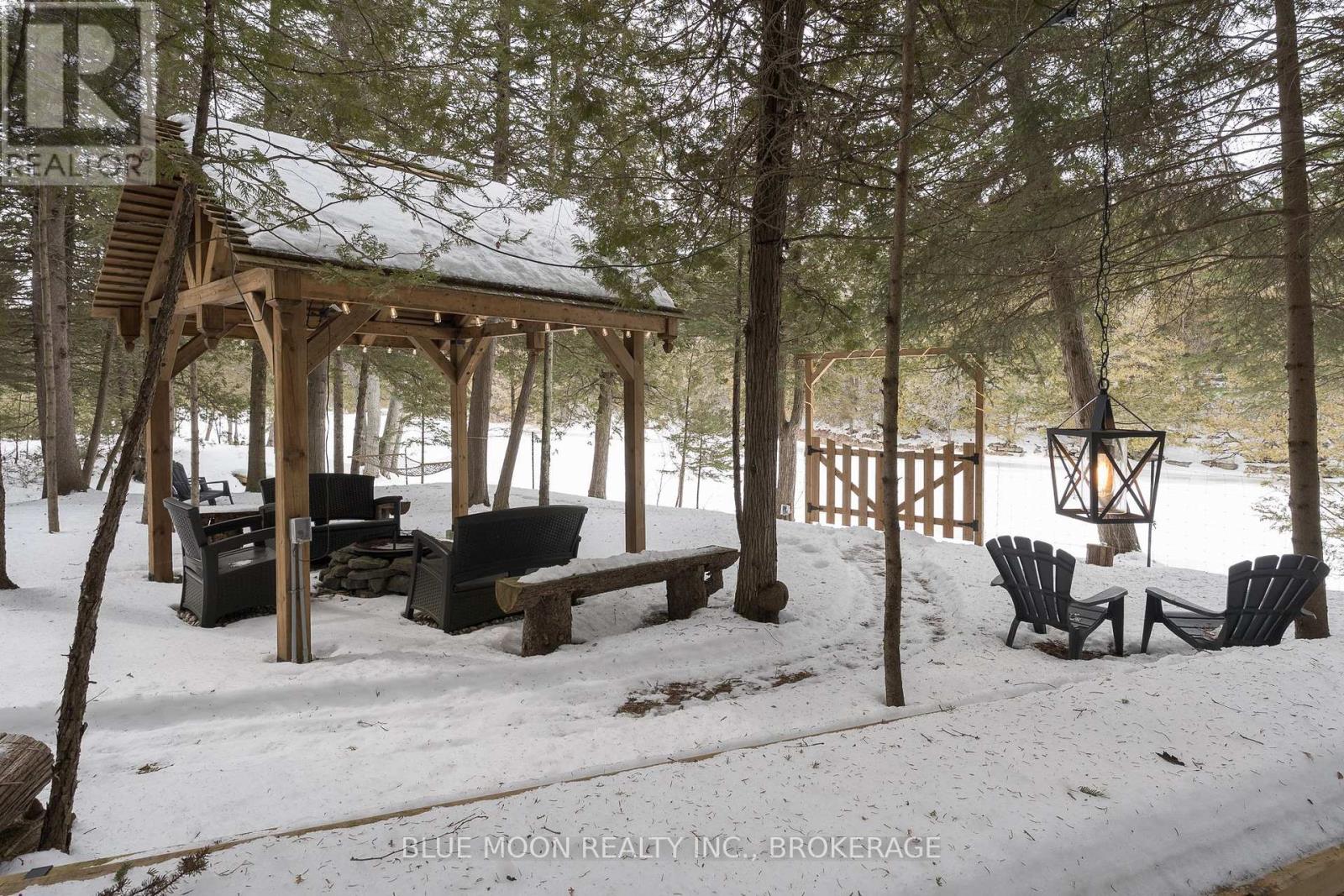 Tucked at the end of a quiet waterfront cul-de-sac in a sought-after estate subdivision, this custom-built bungalow by RJM Classic Homes offers a rare blend of luxury, privacy, and connection to nature. Set on over 2.5 fully fenced acres, the property feels like your own private retreat while still being part of a community. Follow 700 feet of LED-lit forest walking trails through the trees to the water's edge, where evenings come alive with beautifully illuminated shoreline landscaping and easy walkdown entry - perfect for morning paddles, sunset wine, or simply soaking in the view. The outdoor experience is designed for gathering and relaxation, featuring a custom 10' x 10' post-and-beam gazebo with power, a tranquil 13' decorative pond, and thoughtfully designed fencing with 6' wood privacy panels around the home and 4' field fencing along the perimeter. A 12' x 12' custom shed with 120V power and an automatic garage door opener adds both convenience and function. Inside, the home offers 3+1 bedrooms and 3 bathrooms with timeless design details, including two custom TV feature walls finished with real brick veneer, creating warm and inviting spaces to unwind. The finished walkout basement provides incredible flexibility and is well-suited for an in-law or secondary suite. Completing the home is a spacious three-car attached garage, making this property ideal for families, hobbyists, or those who simply want room to live fully. A rare opportunity to own a private waterfront lifestyle property where craftsmanship, nature, and comfort meet. (id:64974)