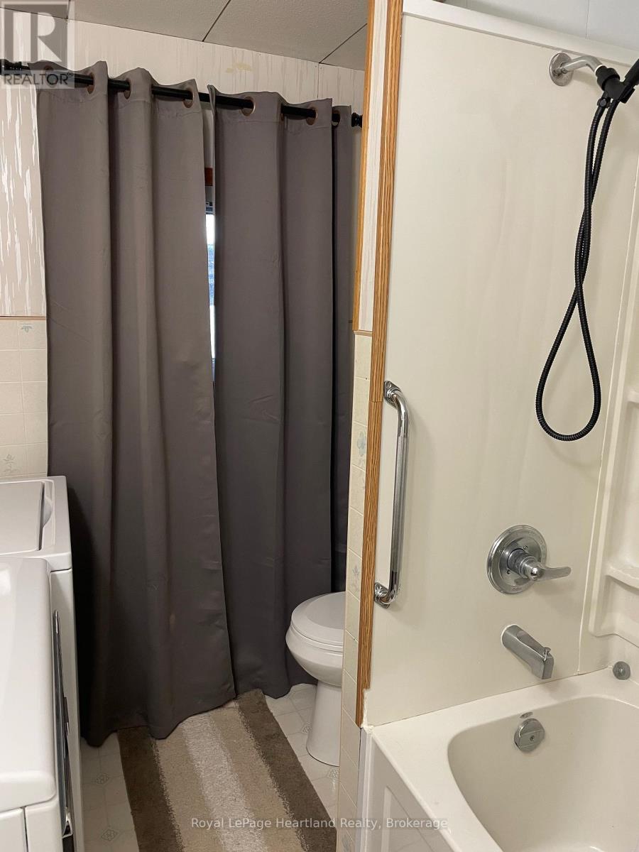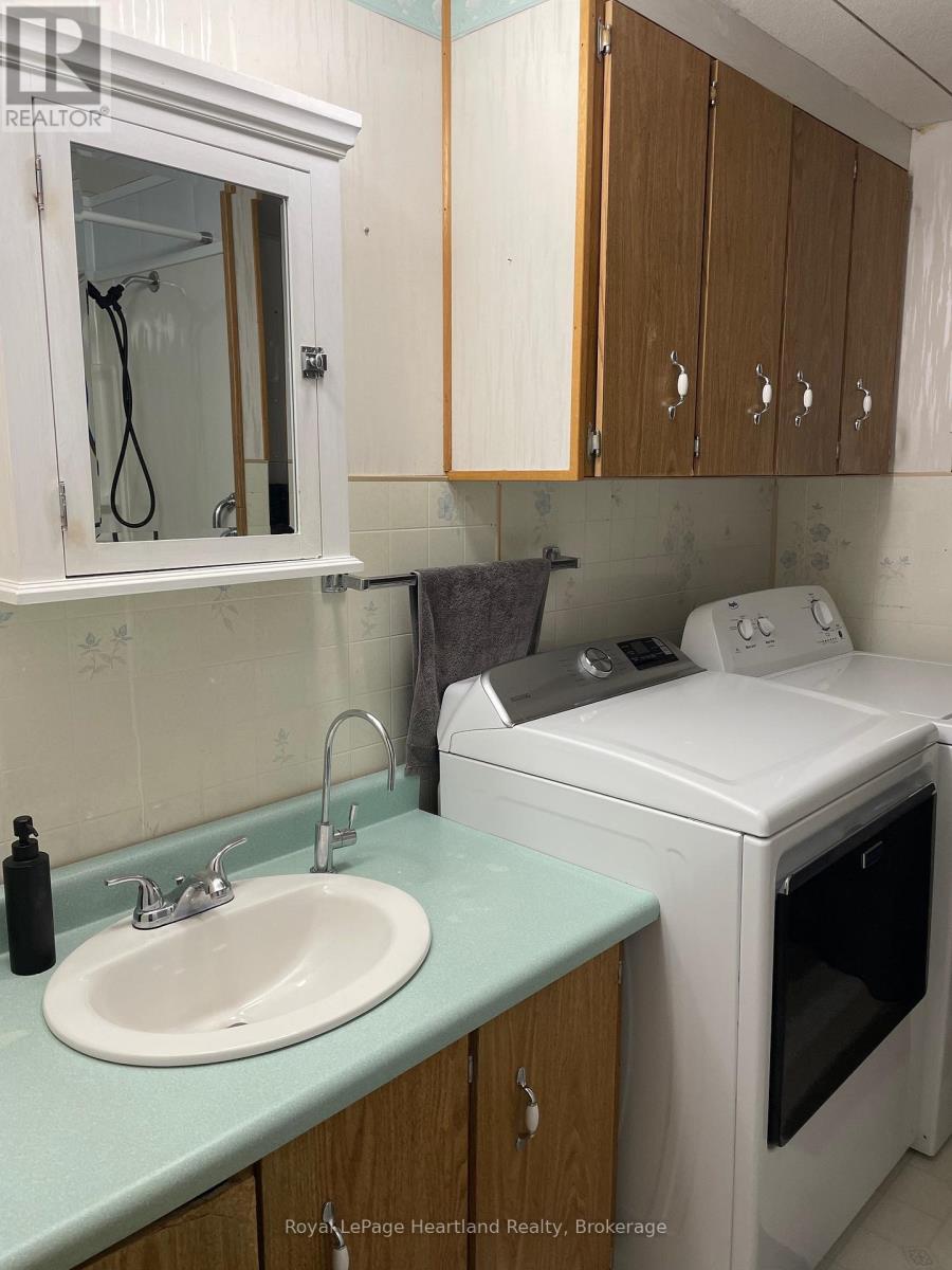 Well maintained, affordable home for families or individuals looking to downsize is now being offered for sale at 36 Sutton Dr. in the land leased park known as Huron Haven Village, located just north of the Town of Goderich. The home consists of 3 bedrooms, 1bathroom, a kitchen with upgrades consisting of a new countertop, backsplash, new 7 in 1 stove, new fridge, updated cabinets and eat in dining area. The living room is located at the front of the home and a secondary cozy sitting room with propane fireplace is conveniently located at the back of the home. Exit to the backyard from the sitting room where you will find a private deck with no neighbours behind. Features of this home include new exterior doors, replacement windows throughout with tint on some, central AC, new electric owned hot water heater, new washer 2021 and dryer 2024. Outside you will find 2 new storage sheds, the roof on the home was replaced approx. 10 years ago, it is vinyl sided and the back of the lot is lined with mature trees for privacy. The community offers an outdoor inground swimming pool and clubhouse. Call your REALTOR today to book a showing. (id:64974)