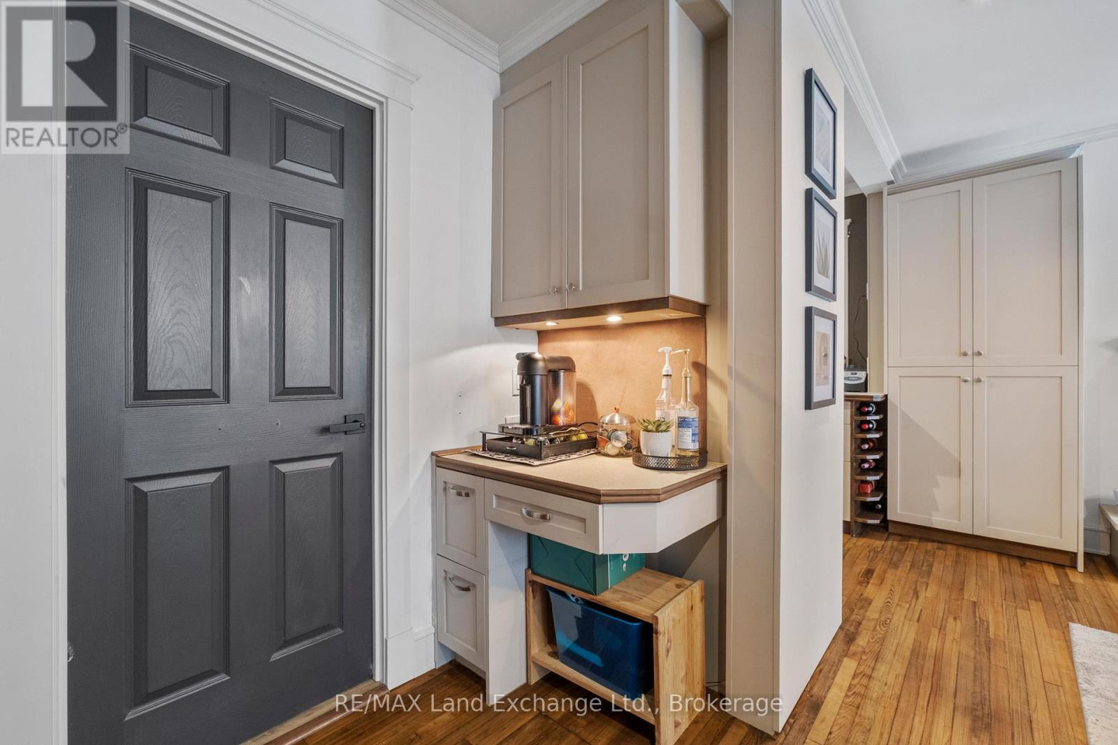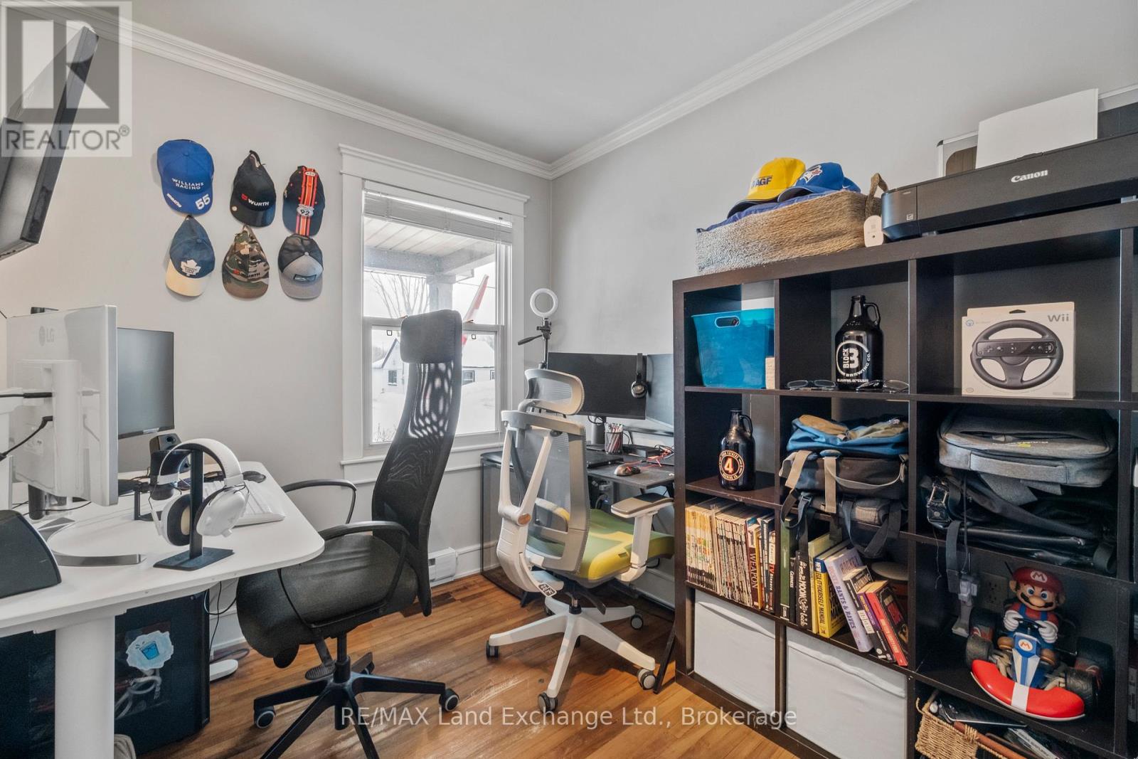 Space to live, work and create inside and out. This is the one you've been waiting for! Experience country living in Palmerston, just 14 km from Mount Forest, in a charming, mature neighbourhood within walking distance to local amenities. This home is much larger than it appears, offering a bright primary bedroom with ensuite and garden doors leading to a stunning backyard, plus two additional bedrooms at the front of the home and a full bathroom. The dream galley kitchen features incredible cupboard and counter space and is ideal for those who love to cook and host, flowing into a cozy family room with a gas fireplace, while the spacious dining room makes entertaining easy. Enjoy great curb appeal from the lovely front yard, a backyard perfect for gatherings and late-night summer campfires, and an inviting front porch ideal for storm watching. Enjoy the comfort and convenience of one-floor living, and take advantage of the auxiliary 22' x 16' workshop-a DIYer's dream with ample storage and endless potential. Set in a super-friendly neighbourhood that's both kid- and senior-friendly, the home is less than a 30-second walk to Lawrence Park, a minute's drive to the hospital, and an eight-minute walk to the vibrant, growing downtown core, with nearby pathways for walking and bird watching. Inside, the modernized interior shines with a beautifully renovated front bathroom (2024), a roomy laundry room with excellent storage, a show-stopping oversized ensuite mirror, and the warm comfort of gas fireplaces-especially magical during the holidays. (id:64974)