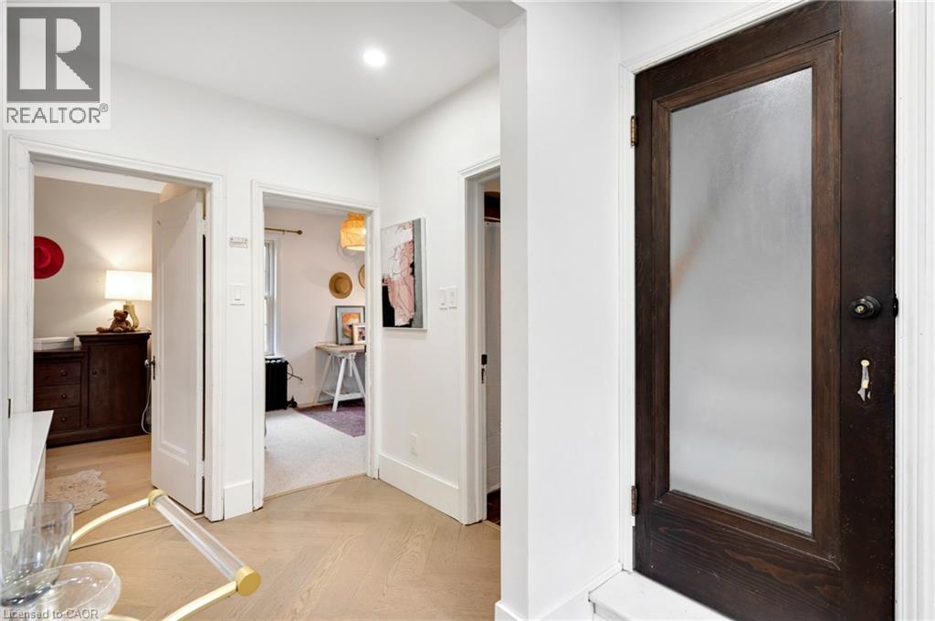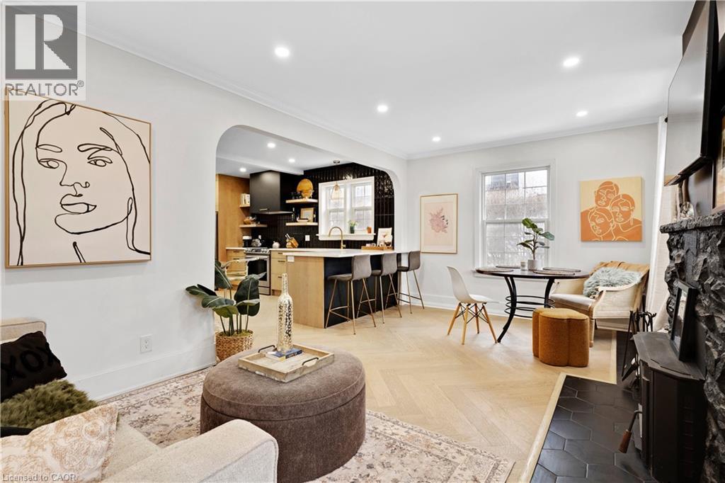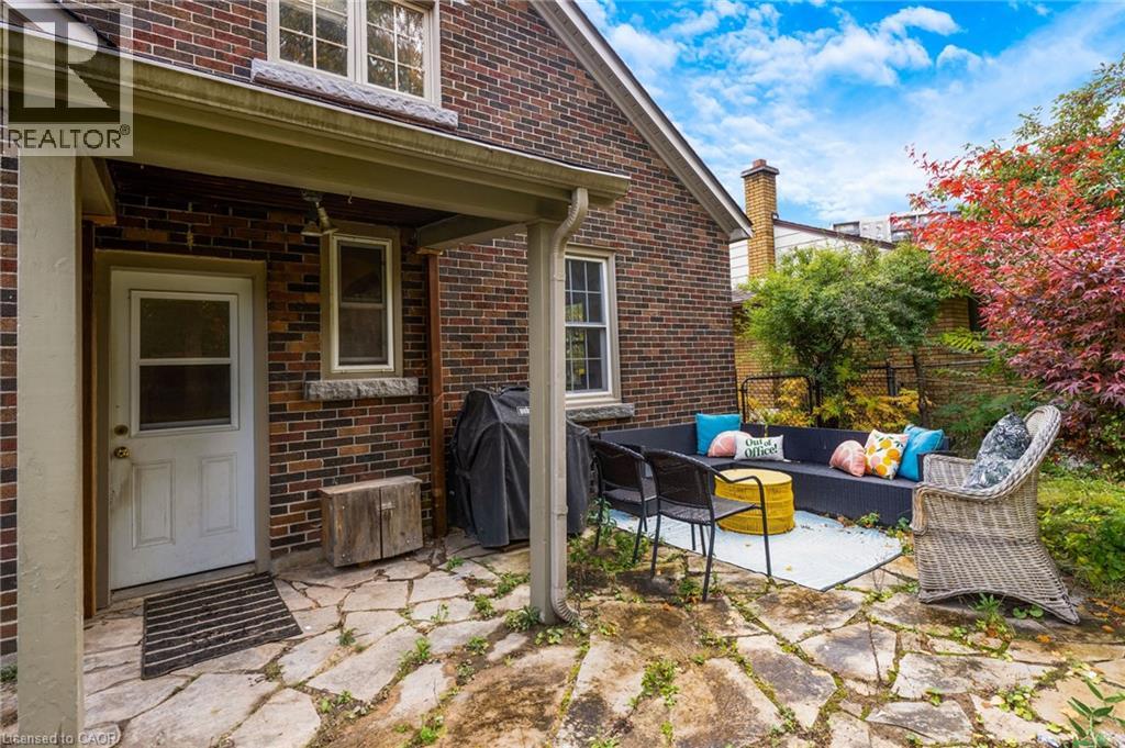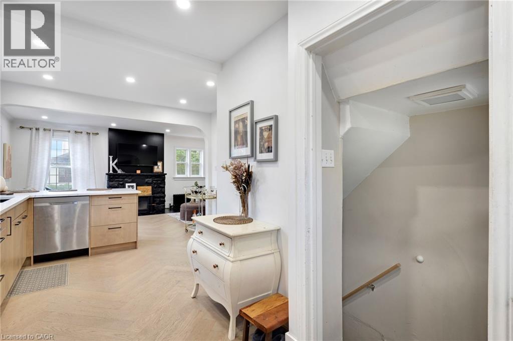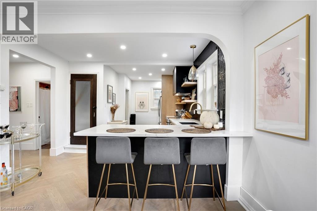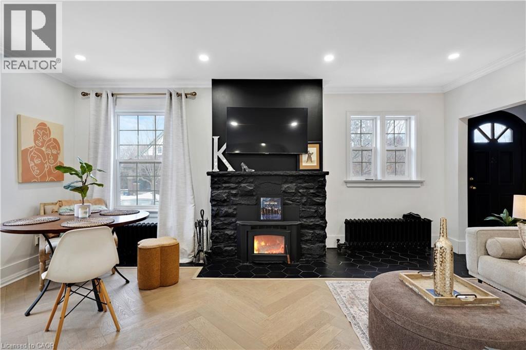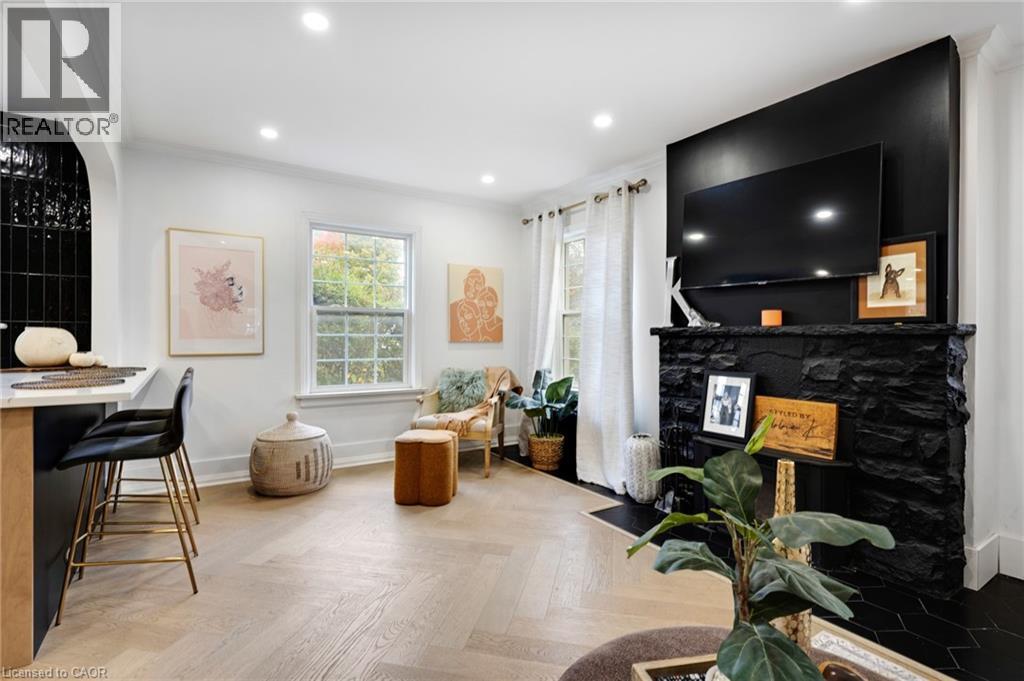 Welcome to 360 Luella, an enchanting 3 bedroom East Ward home set on a mature, tree lined street close to the heart of Downtown Kitchener. A flagstone porch leading to the all brick exterior, gorgeous cherry blossom tree and 4 car driveway with detached garage add to the whimsical curb appeal. The original character has been maintained inside and out, with mechanical upgrades and aesthetic updates to give a compelling mix of charm and elegance. Step inside to the open concept main floor, which has been structurally reinforced, where you will love the many large windows letting in natural light and the contrast of modern black octagon tile, black stone wood burning fireplace and the classic herringbone hardwood floors. The chic kitchen blends style and class with gorgeous light wood cabinetry, black backsplash and hardware, stainless steel appliances and exquisite Calcutta marble countertop and breakfast bar. The main floor also features 2 spacious bedrooms, and 4 pce bath. Upstairs is your expansive primary suite with a sitting/dressing area, pine floors and huge walk in closet. This space would be ideal to build an ensuite to give you your own private bathroom. Back downstairs, to the back of the kitchen is a separate entrance taking you to the large, full sized basement with an easily-to-be finished rec room with gas stove fireplace, laundry and plenty of storage. Take the backdoor to your private fully fenced yard and enjoy the outdoors and serene greenery on the quaint patio. Situated just minutes to the expressway, short walk to the Ion, Downtown, Farmers Market, Centre in the Square, Library, parks, schools as well as bistros pubs and restaurants, perfect for those who love the Urban lifestyle with the perks of owning freehold and having private outdoor space! (id:64974)