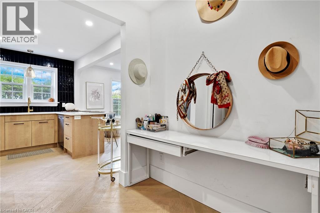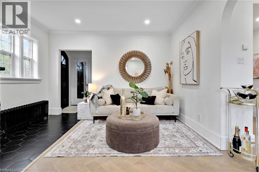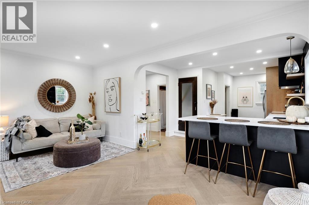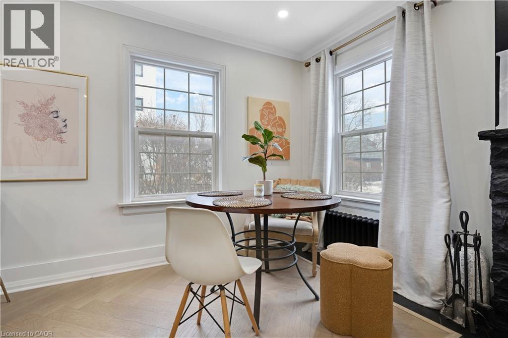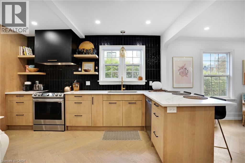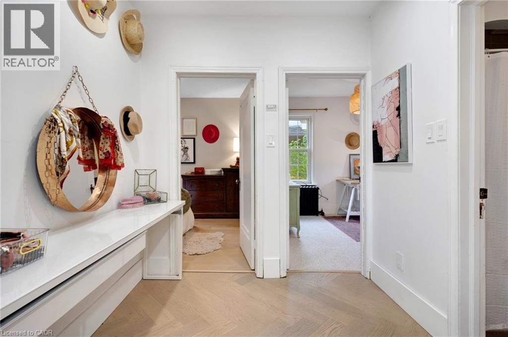 Welcome to 360 Luella, an enchanting 3 bedroom East Ward home set on a mature, tree lined street close to the heart of Downtown Kitchener. A flagstone porch leading to the all brick exterior, gorgeous cherry blossom tree and 4 car driveway with detached garage add to the whimsical curb appeal. The original character has been maintained inside and out, with mechanical upgrades and aesthetic updates to give a compelling mix of charm and elegance. Step inside to the open concept main floor, which has been structurally reinforced, where you will love the many large windows letting in natural light and the contrast of modern black octagon tile, black stone wood burning fireplace and the classic herringbone hardwood floors. The chic kitchen blends style and class with gorgeous light wood cabinetry, black backsplash and hardware, stainless steel appliances and exquisite Calcutta marble countertop and breakfast bar. The main floor also features 2 spacious bedrooms, and 4 pce bath. Upstairs is your expansive primary suite with a sitting/dressing area, pine floors and huge walk in closet. This space would be ideal to build an ensuite to give you your own private bathroom. Back downstairs, to the back of the kitchen is a separate entrance taking you to the large, full sized basement with an easily-to-be finished rec room with gas stove fireplace, laundry and plenty of storage. Take the backdoor to your private fully fenced yard and enjoy the outdoors and serene greenery on the quaint patio. Situated just minutes to the expressway, short walk to the Ion, Downtown, Farmers Market, Centre in the Square, Library, parks, schools as well as bistros pubs and restaurants, perfect for those who love the Urban lifestyle with the perks of owning freehold and having private outdoor space! (id:64974)