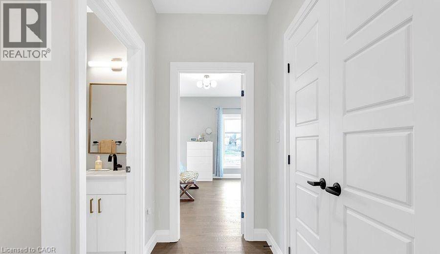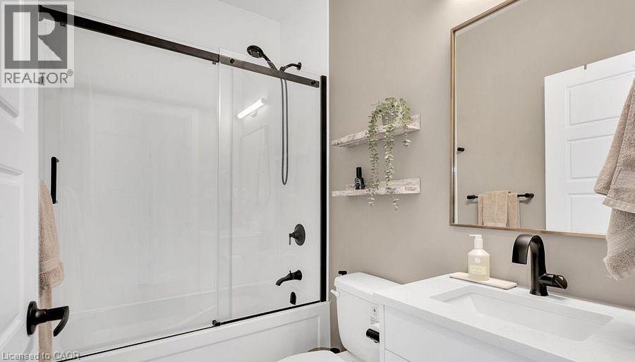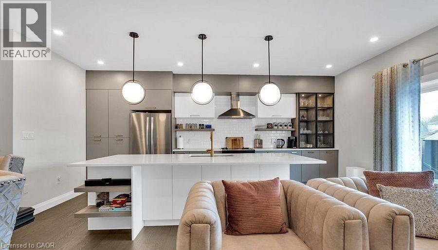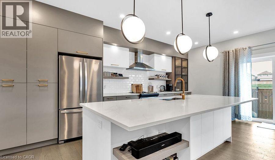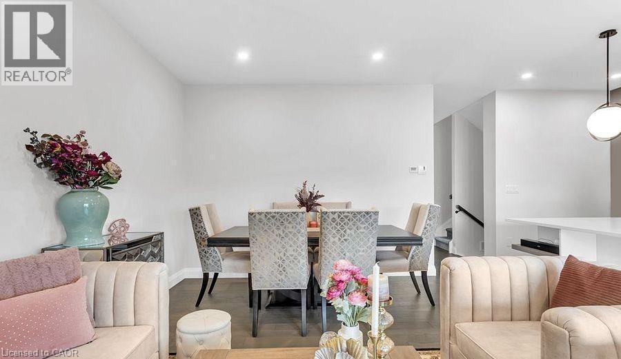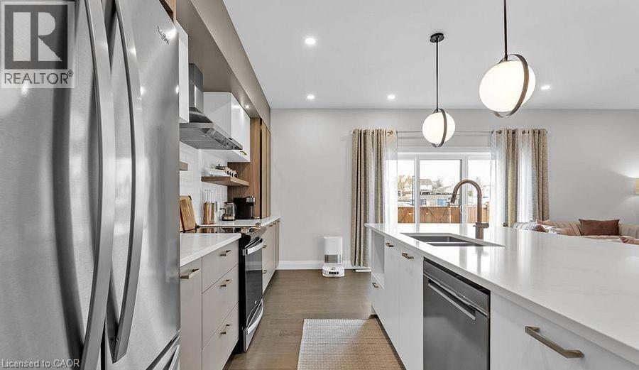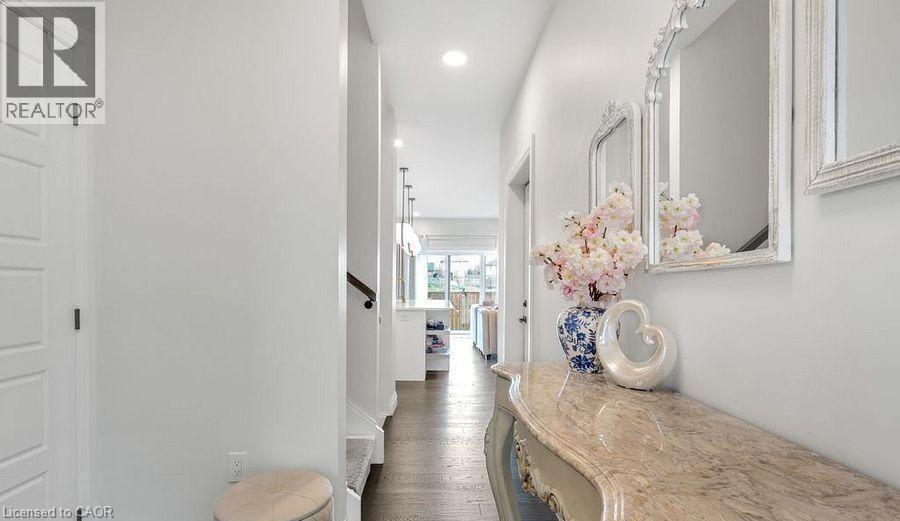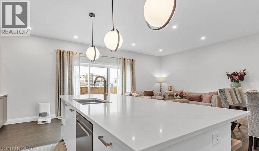 This stunning, move-in-ready townhouse boasts over $40,000 in premium finishes and thoughtful upgrades. Featuring 9-ft ceilings and engineered hardwood floors on both the main and second levels, along with pot lights across all three levels, this home radiates modern luxury. The custom designer kitchen is a showstopper that features an oversized island with storage on both sides, gold handles and faucet, a stylish backsplash, dovetail soft-close drawers, quartz countertops, pull-out cabinet drawers in the pantry, and trash bin cabinet to name a few. Custom closets are installed in all bedrooms along with built in shelves in the laundry closet offering plenty of storage. The home is energy-efficient with Net Zero Ready features, keeping utility costs low. Additional notable upgrades include a custom staircase with a runner, upgraded triple-pane a North Star windows, glass shower doors with handheld shower heads in both upper bathrooms, quartz countertops in all 3 bathrooms with undermount sinks, and the balance of a 7-year Tarion warranty. The garage walls are finished with easy-to-clean PVC panels. The finished basement offers a spacious family room, while the fully fenced rear yard, shed, and concrete driveway provide privacy and convenience. Perfectly situated, this home backs onto a planned park space and a Montessori daycare opening early next spring. Families will appreciate being only steps away from Southridge Public School, with additional schools, parks, restaurants, gas station, and everyday amenities all just moments away. Don't miss this one-of-a-kind, upgraded townhouse truly a cut above the rest! (id:64974)