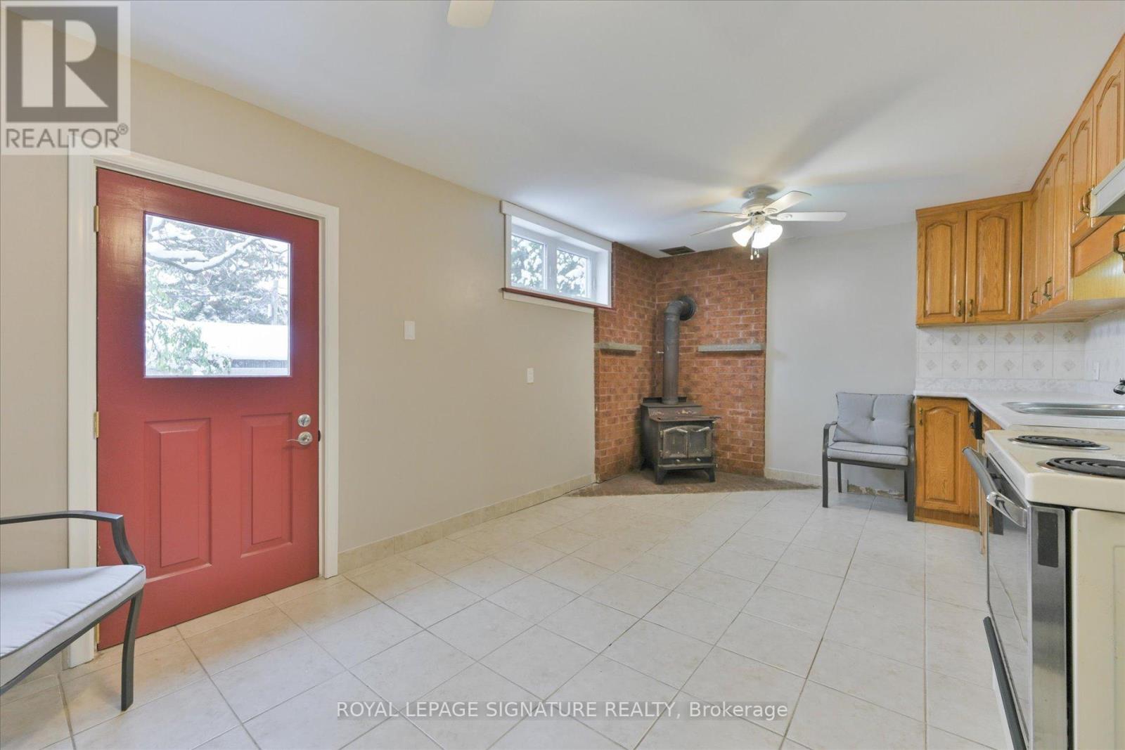 Beautiful two-storey detached home ideally located near the new Eglinton Cross-Town LRT, with quick access to Highways 400 and 401. Features a detached one-car garage with a private laneway.This home offers multiple premium upgrades and includes three bedrooms and two bathrooms. The primary bedroom overlooks stunning spring blossoms, while the nursery features a cozy built-in window seat and bookcase. The second-floor bathroom boasts heated floors, built-in storage, and elegant marble finishes.The open-concept kitchen and dining area feature a heated marble floor and induction cooktop. The high-ceiling basement includes a wood-burning fireplace, walkout to the backyard, and a separate entrance-ideal for a potential studio apartment.Surrounded by lush greenery and mature trees, the property offers a terraced side garden perfect for plant lovers and a landscaped backyard centered around an apricot tree. Perched on a hilltop, the home is filled with natural light and offers stunning sunset views.Additional highlights include a spacious cantina, solid brick construction, high-mount digital TV antenna, new plumbing and wiring, a tankless hot water heater, and a new A/C unit.Blending vintage charm with modern comfort, this home offers character, warmth, and convenience in one of Toronto's most desirable locations. (id:64974)