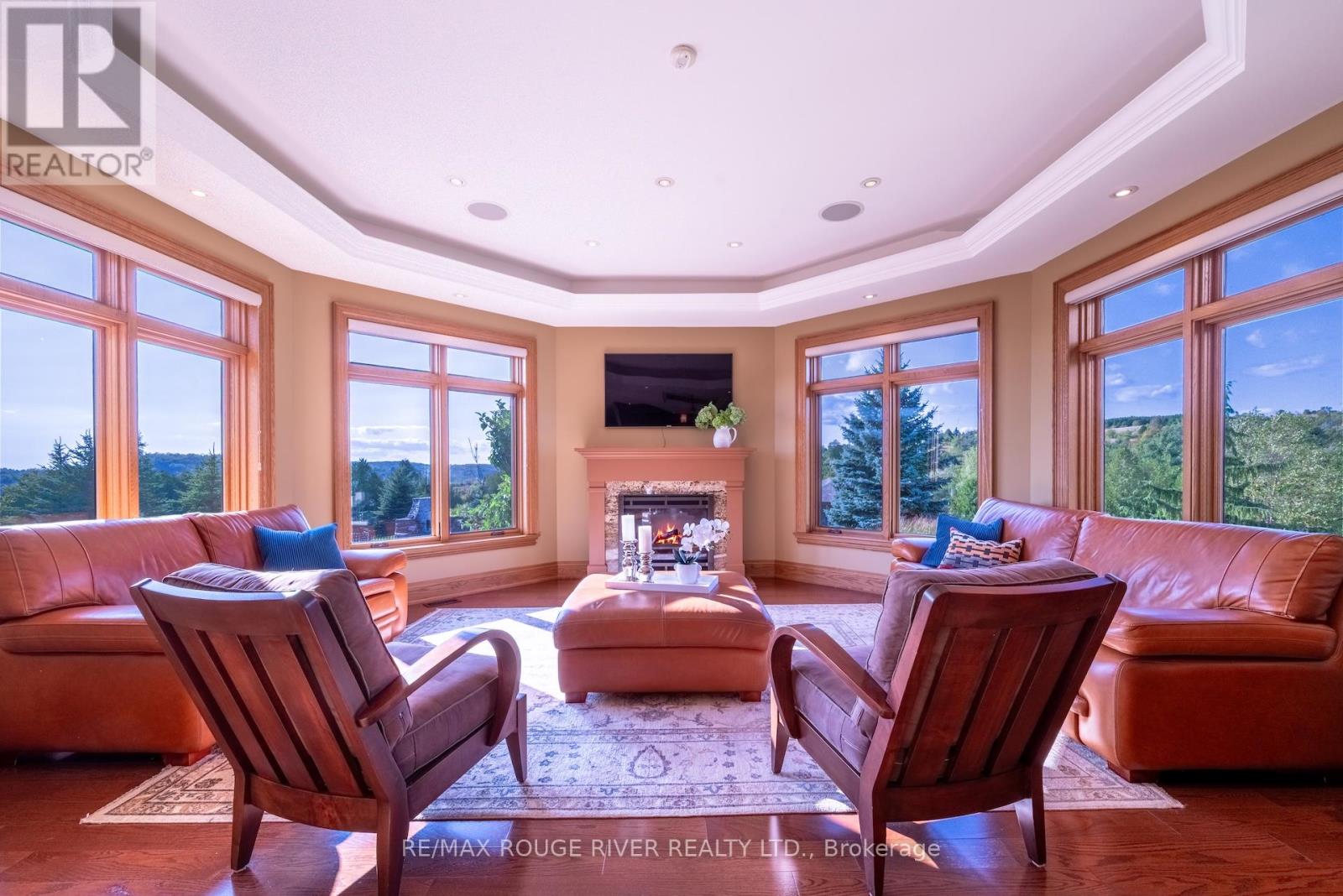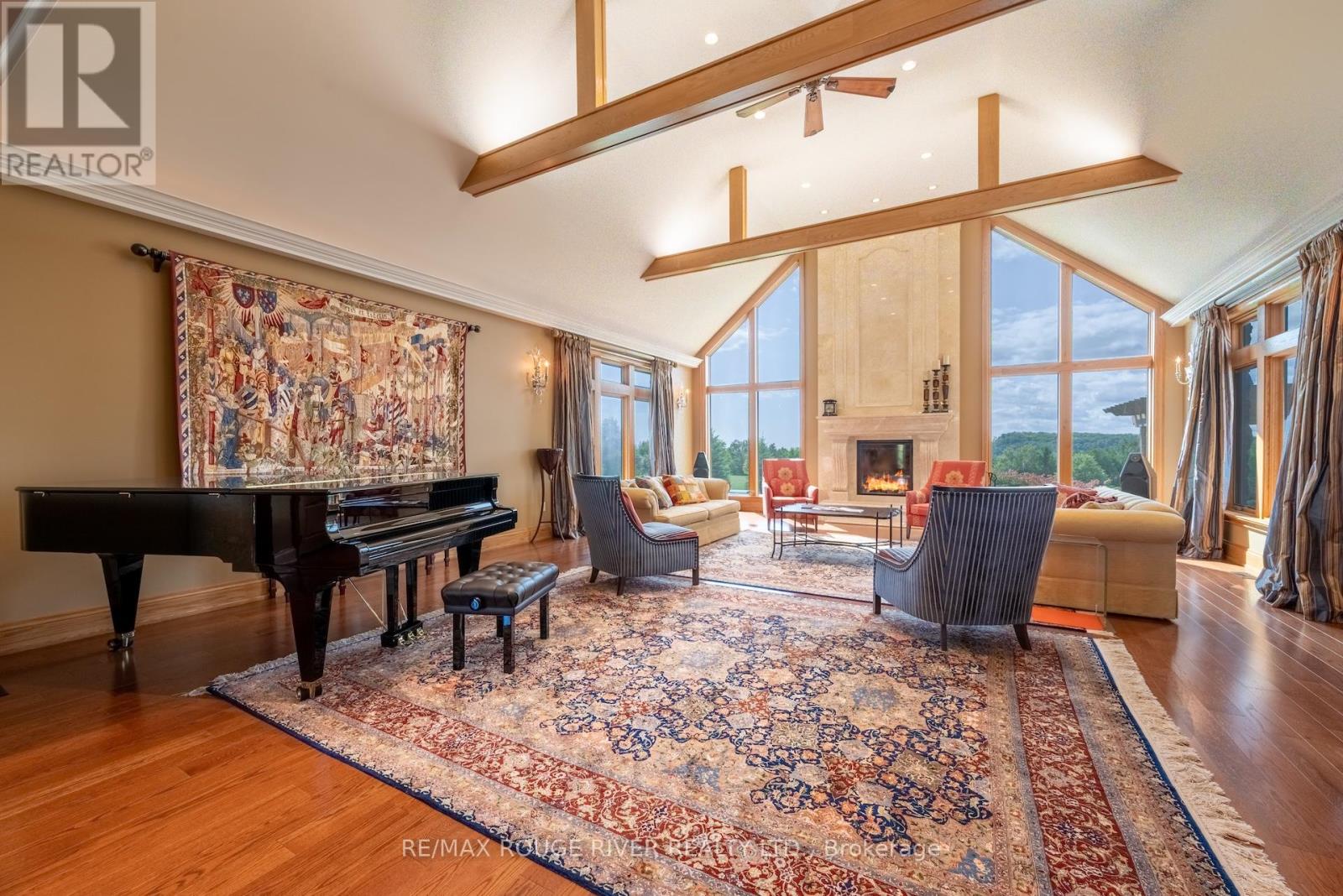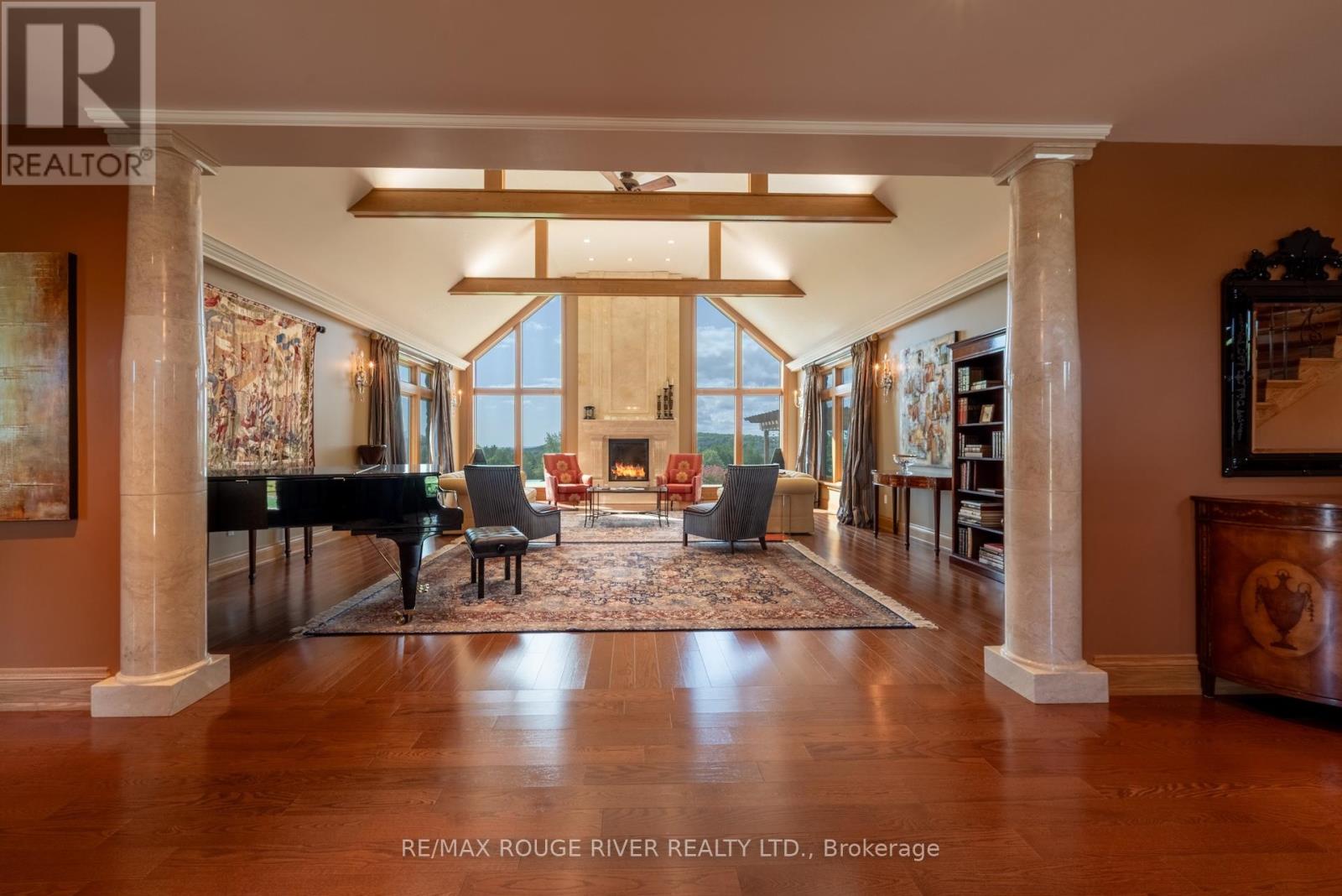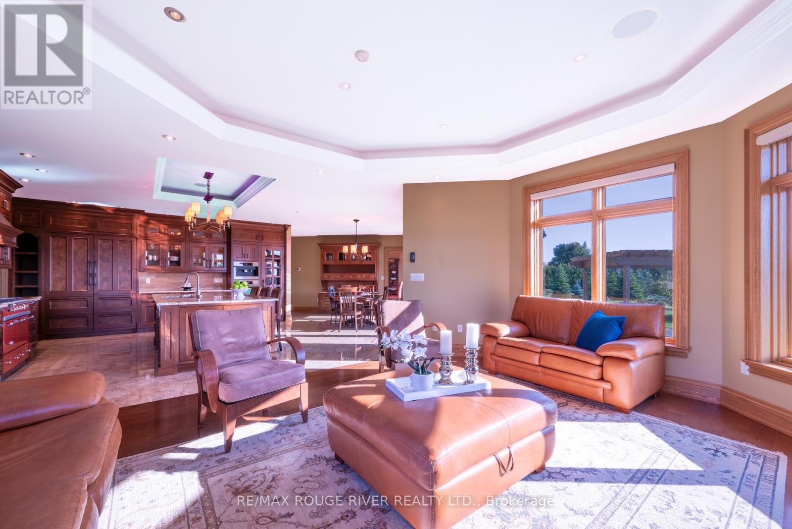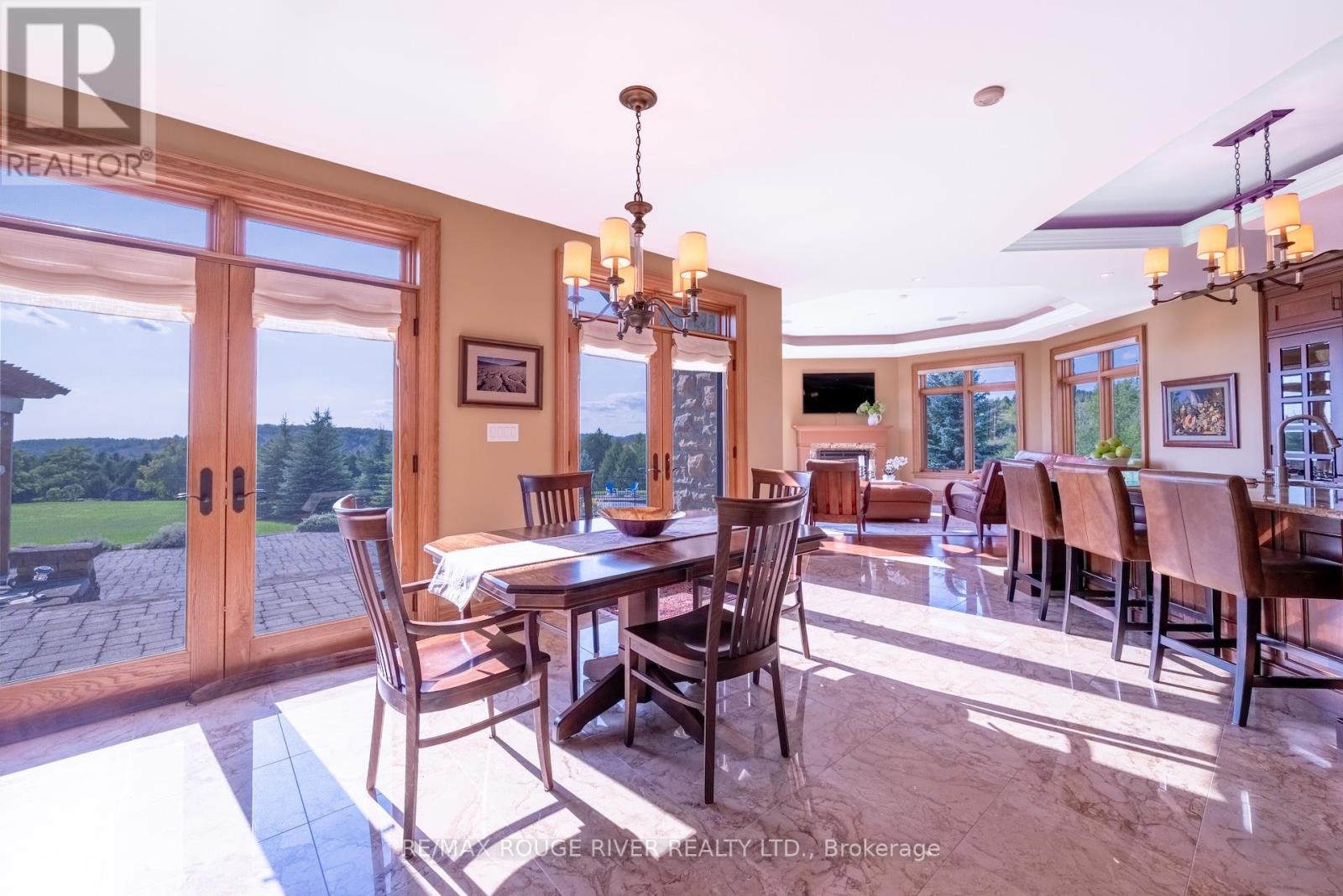 An Exceptional Country Estate in Northumberland County. Set on 24 acres of rolling countryside with uninterrupted 360-degree views, this distinguished estate offers a rare balance of architectural refinement and natural beauty, just minutes north of Cobourg and within comfortable reach of Toronto. Thoughtfully designed and built to exacting standards, the 11,000 sq. ft. residence (7,500 sq. ft. above grade) blends timeless proportions with modern comfort. The arrival unfolds across manicured grounds featuring orchards, curated stonework, and landscape installations by renowned artisan John Shaw-Rimmington, creating a setting that feels both composed and serene. Expansive stone terraces surround a resort-style pool, ideal for entertaining or quiet retreat. A private trail network winds through the property, leading to a hilltop vantage point with sweeping views toward Lake Ontario. Inside, the home is defined by volume and balance. A dramatic great room with 16-foot ceilings, marble columns, and a statement fireplace anchors the principal living spaces, complemented by more intimate rooms for everyday living. A Downsview-designed chef's kitchen, butler's pantry, and adj0oining family room offer a seamless blend of form and function. Seven bedrooms and six baths include a private two-bedroom suite with its own garage-ideal for guests or extended family. The primary suite features a dressing room, spa-inspired ensuite with heated floors. Geothermal heating and cooling, a heated three-car attached garage, a separate two-car garage/workshop, and curated designer finishes complete this quietly exceptional estate-well suited as a refined full-time residence or an elegant country retreat for local, GTA and international buyers seeking privacy, space, and distinction. (id:64974)