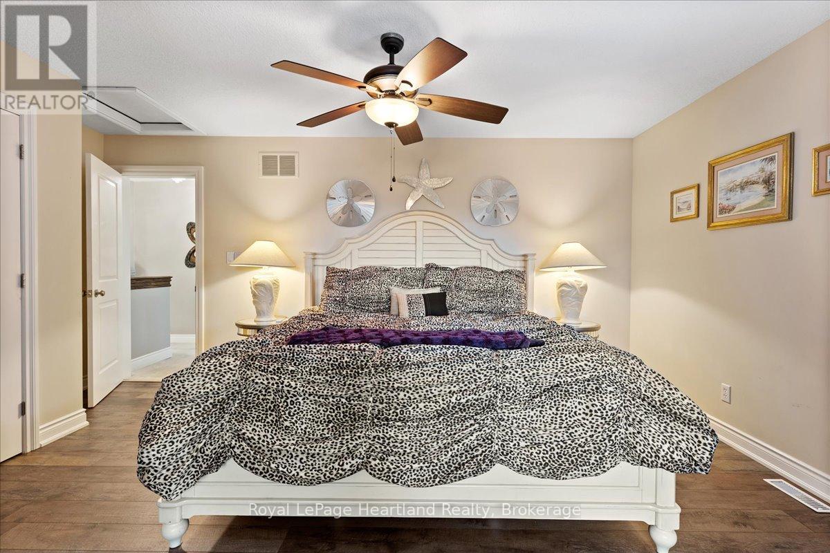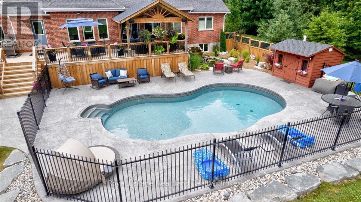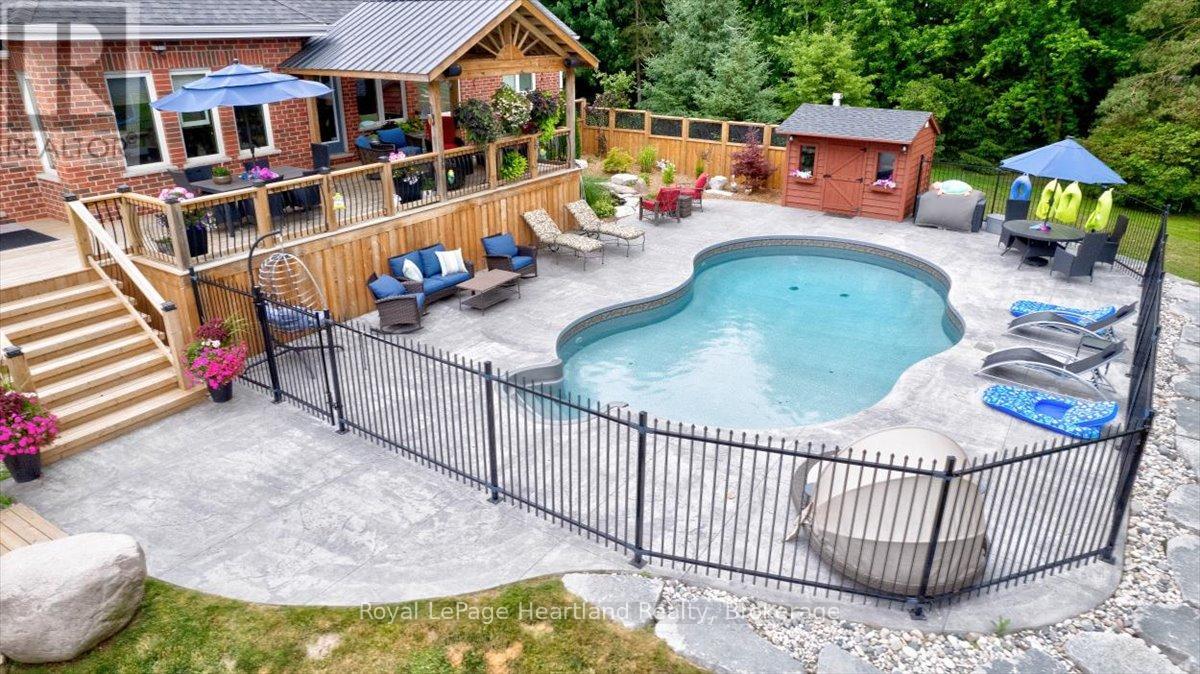 Welcome to this Prestigious address offering every luxurious desire you have ever dreamed of. Exquisite approximately 4-acre sprawling private country estate located mins from Grand Bend is an absolute showstopper. Professionally landscaped grounds and gardens surround this 2800 sq ft home. As the front door unfolds into the spacious foyer, all your guests will be in awe. The chef's kitchen features hardrock countertops, double built-in wall ovens, a breakfast bar, pantry & lots of room for Sunday family dinner gathered around the harvest table overlooking your backyard oasis. The striking stone gas fireplace is the focal point of the inviting living room. Main Floor primary suite has it all covered, w-i closet, ensuite boasting a w-i shower & soaker tub. Laundry will be enjoyable in this bright spacious main floor laundry room! Beautiful staircase leading to the Upper level featuring 2 bedrooms lg enough to accommodate sitting areas along with another full bath. Adding to the already extensive footprint is the lower level & it has it all. Lg family room, bedroom, bathroom, kitchen, den, & private walkup entrance into garage. Lower level offers a multitude of options for multi-family living, or potential for rental income, offering an excellent opportunity for investors or homeowners to offset carrying costs. You will never need another holiday again when you experience this backyard wonderland. Entire rear outdoor space has just been recently transformed with no expense spared. Awning-equipped Massive decks overlook the newly installed in-ground heated pool lined w/black iron fence & pool house. New hot tub under the pergola, by the tranquil pond. If you have pets, this pet paradise will provide so much space for them to roam & play or go on nature walks to the stream at the back of the property. This forever home will bring friends & family together and provide lasting memories for years to come. Rest assured you will find new meaning to the words Let's Stay Home. (id:64974)
